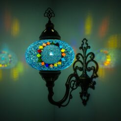 7 Variation Turkish Moroccan Mosaic Wall Sconce Lamp with Bronze Base | Tiffany Style with Mosaic Glass Shade | Mosaic Glass Bedside Lamp