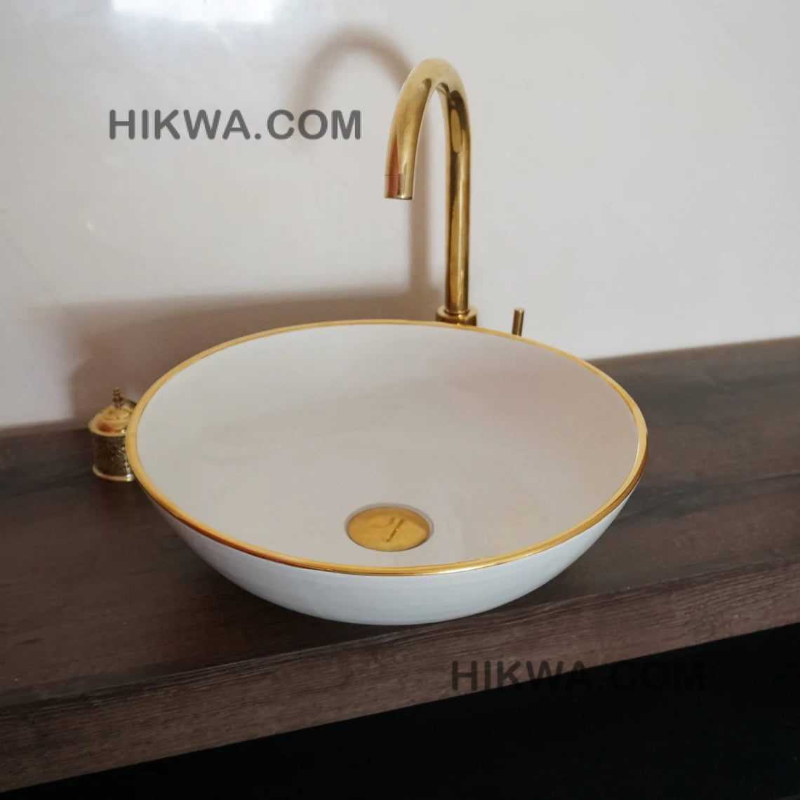 14 karat gold minimalist bathroom bowl ceramic washbasin – customizable