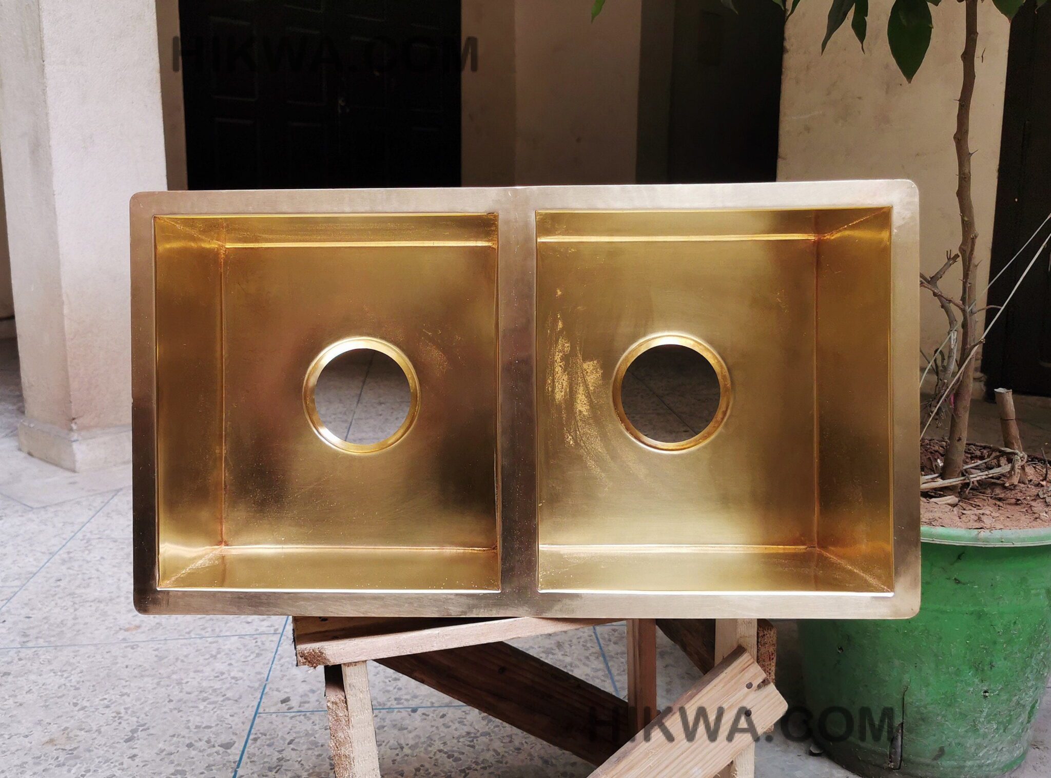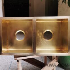 33″ Unlaquered Brass Finish Smooth 5050 Double Basin Brass Kitchen Sink – Brass Undermount Kitchen Sink 33″ x 19″ x 9″