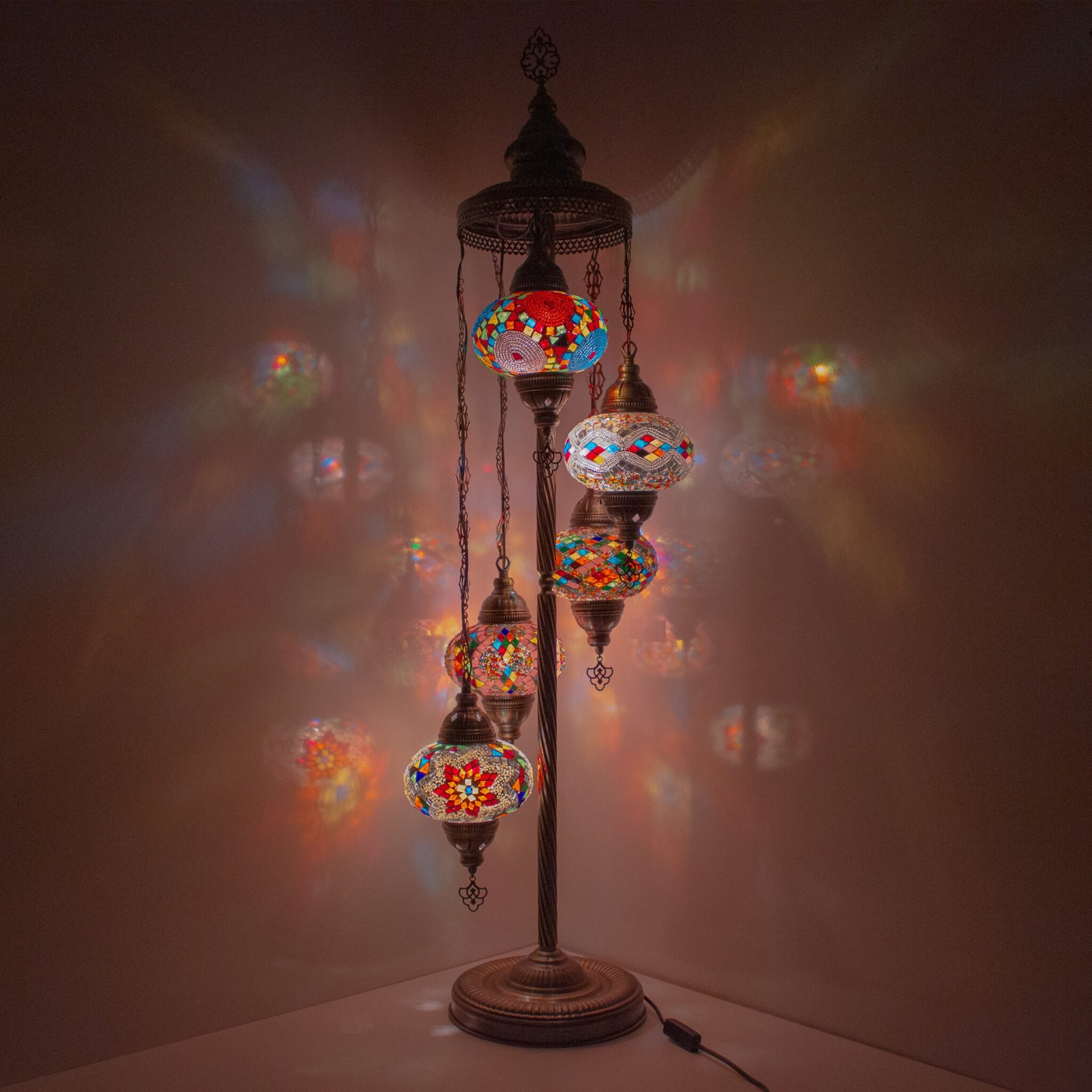 Turkish Moroccan Mosaic Floor Lamp | Turkish Lamp 5 Big Size 6.5″ Globes | Handmade Corner Night Lamp | Mosaic Standing Lamps with LED Bulb