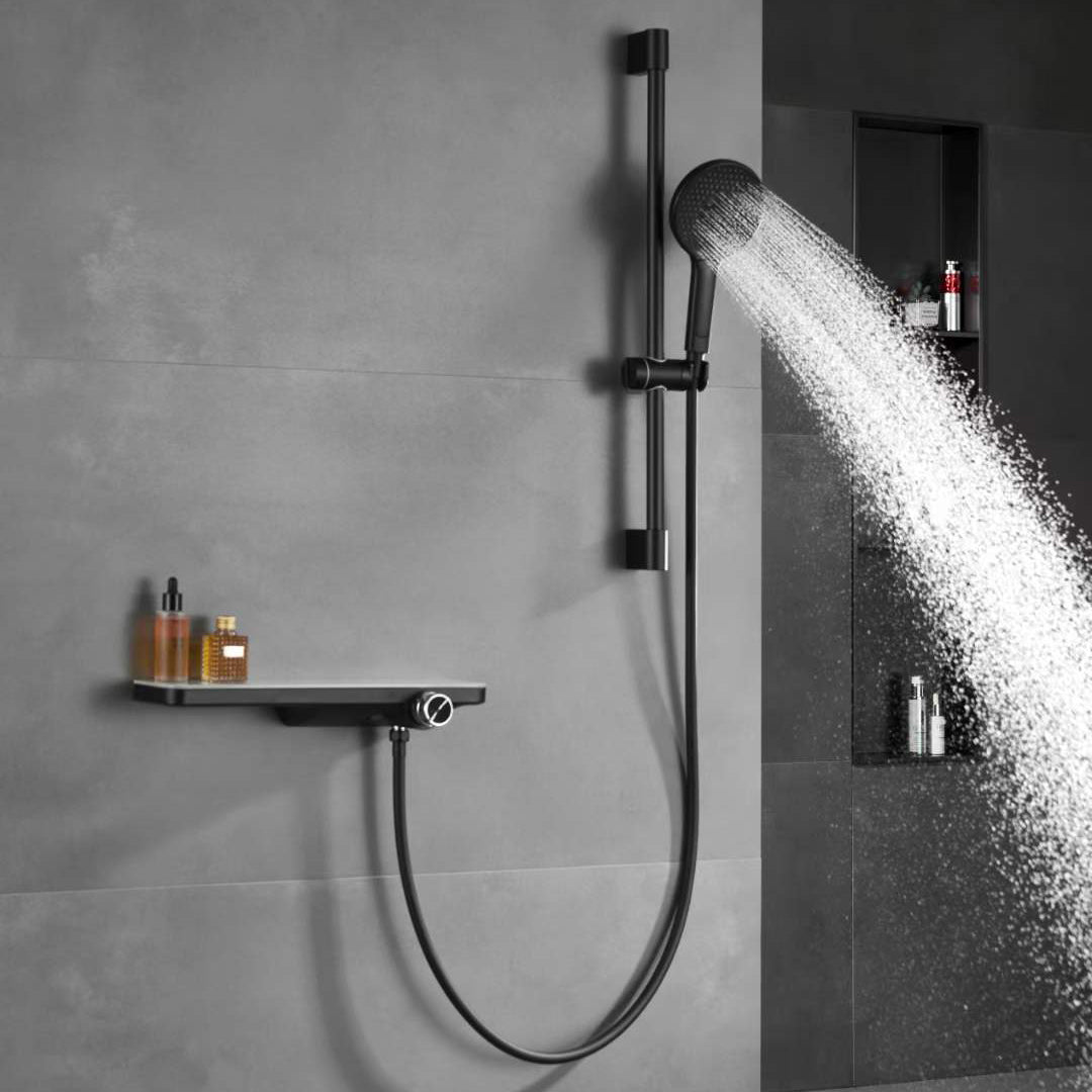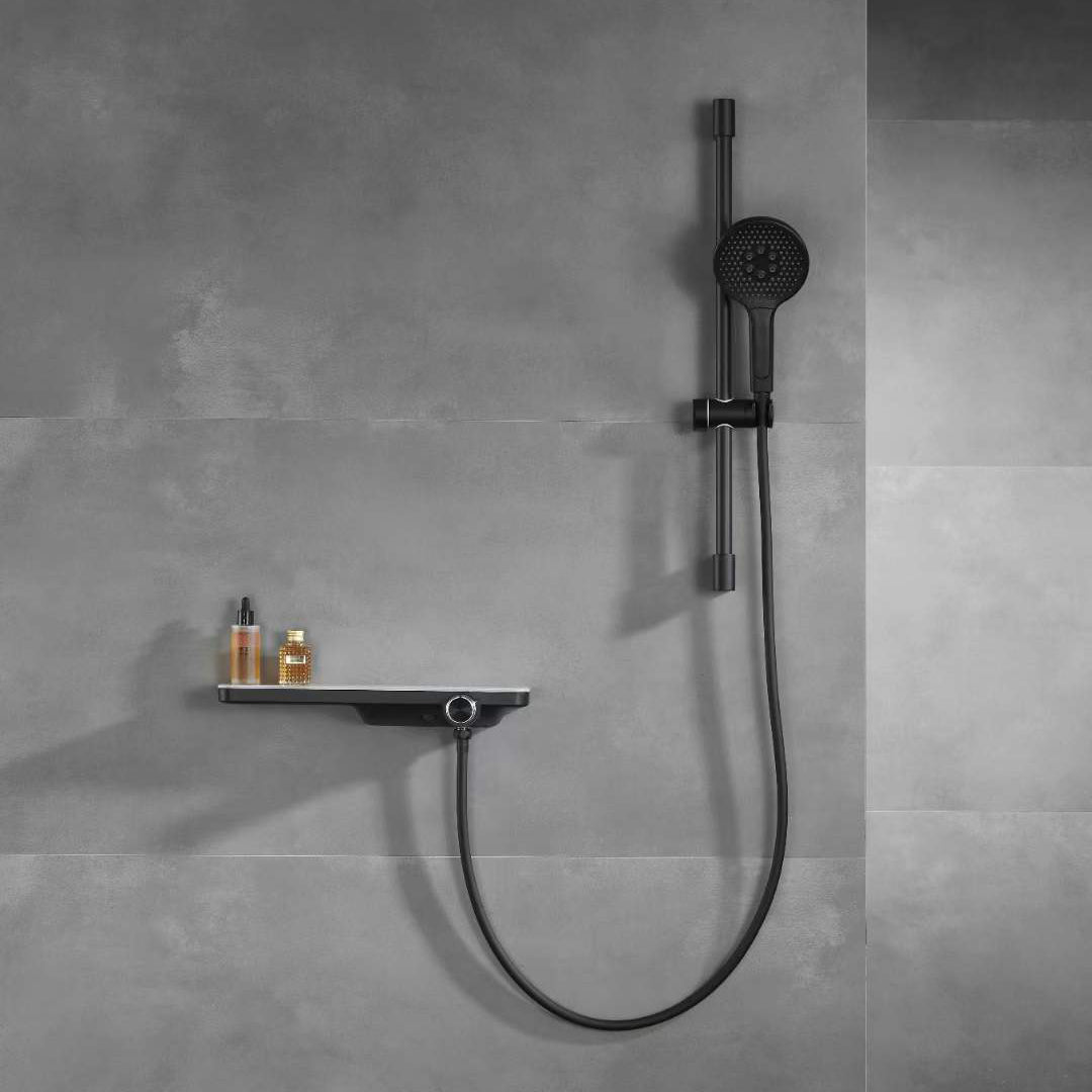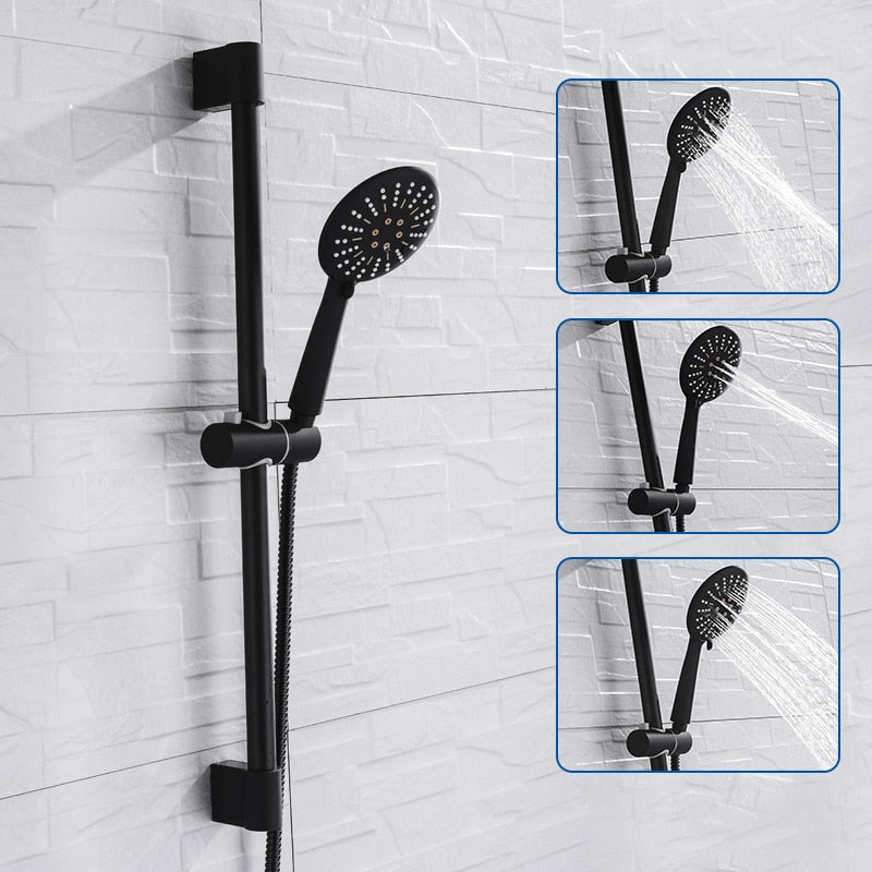 - Adjustable matte black ABS shower head bracket