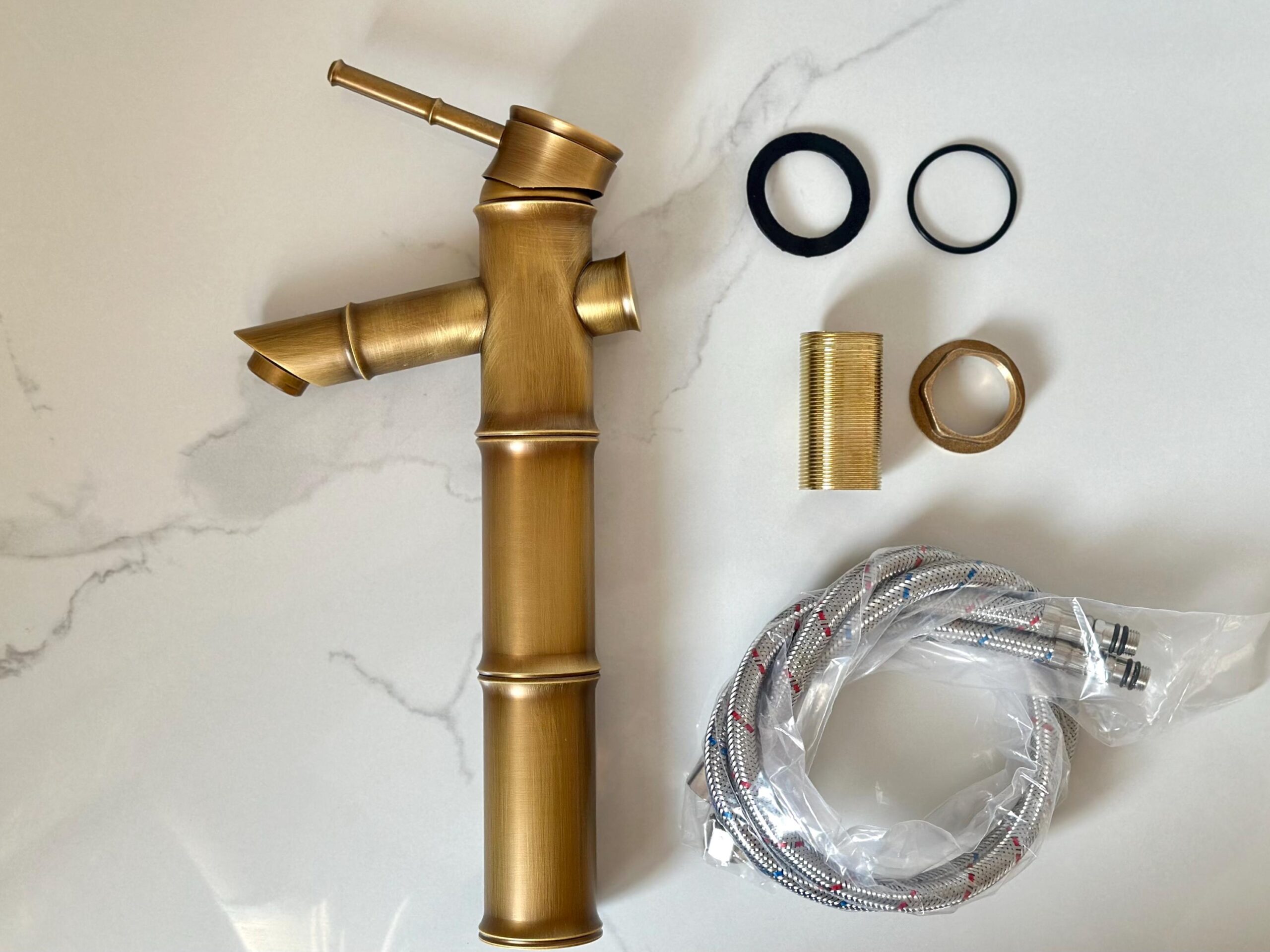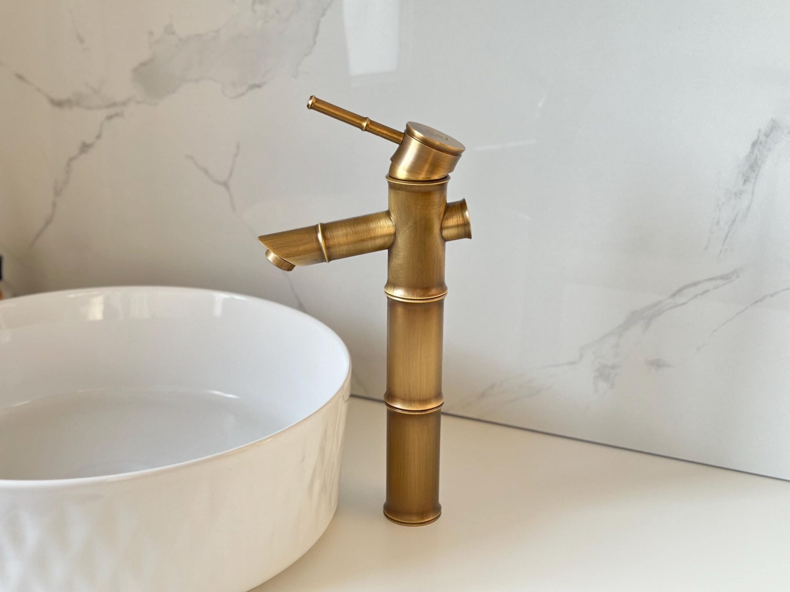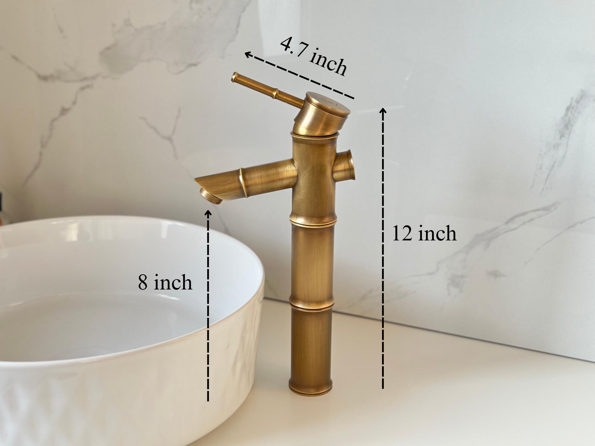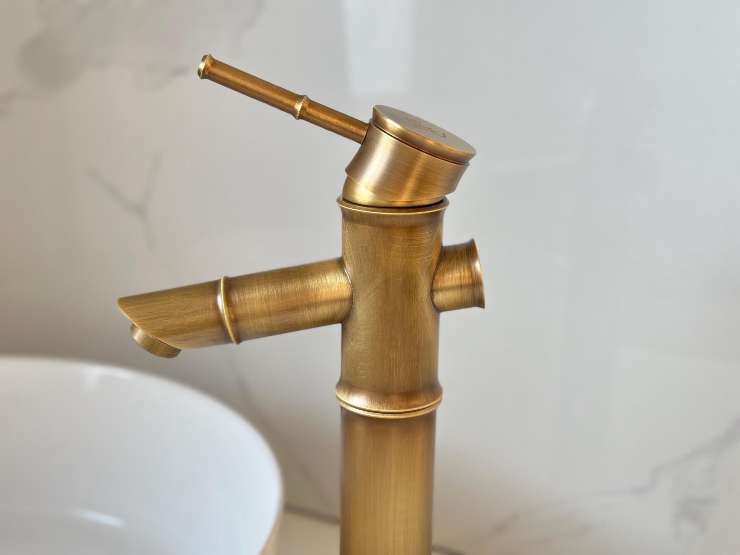 Antique Brass Bamboo Bathroom Faucet , Tall Basin Tap