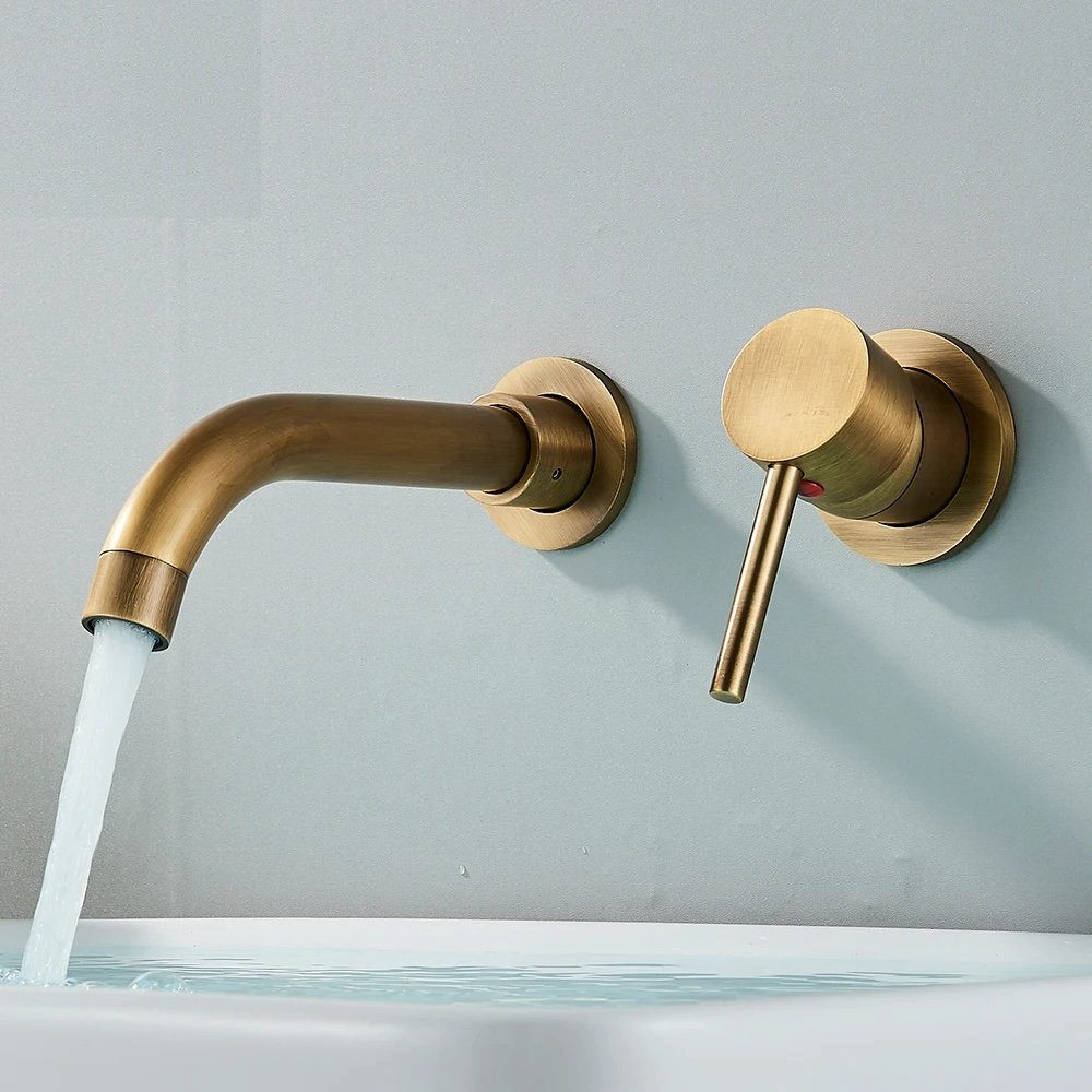 Antique Brass Basin Faucet Single Handle Wall Mounted Bathroom Vessel Sink Mixer Tap 2 Holes Washing Basin Crane Tap