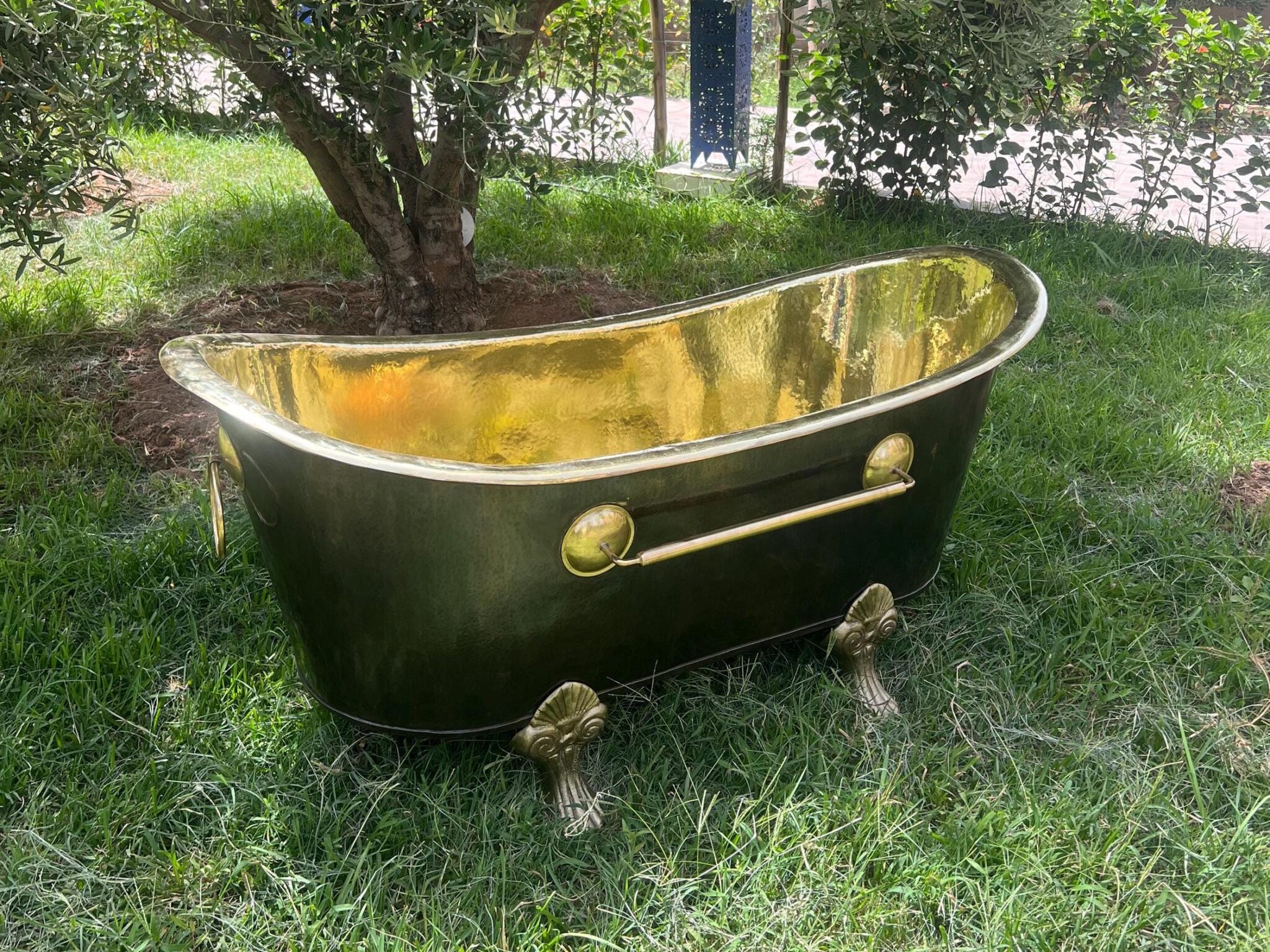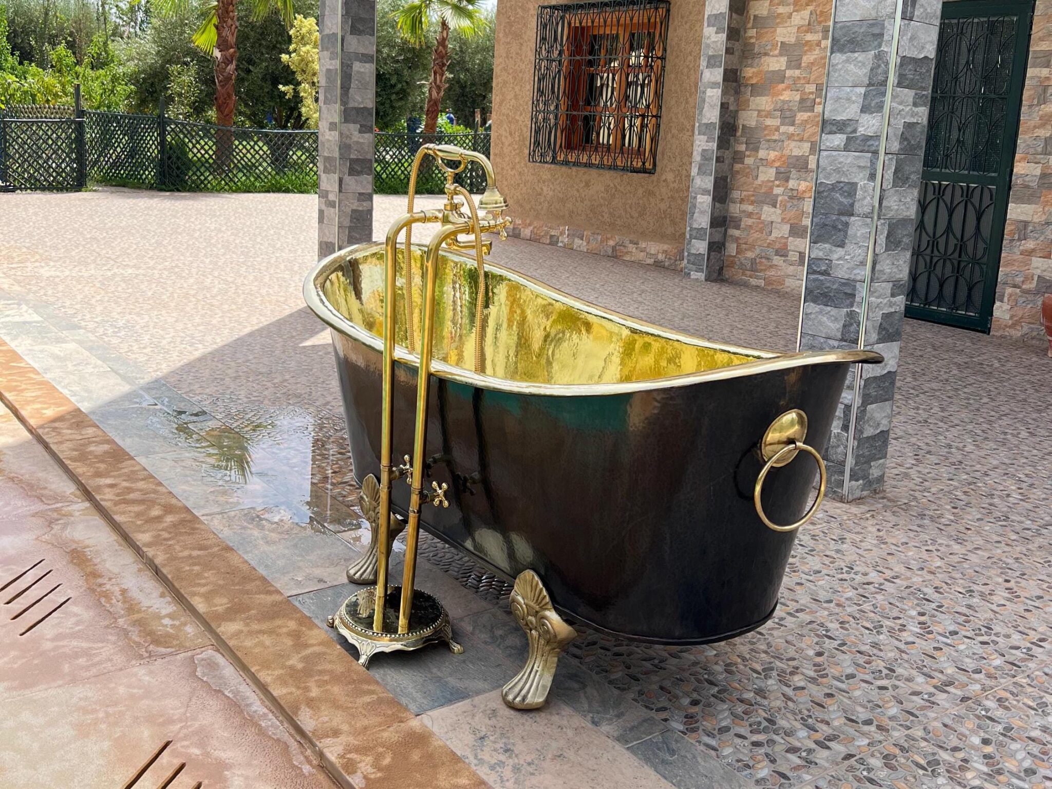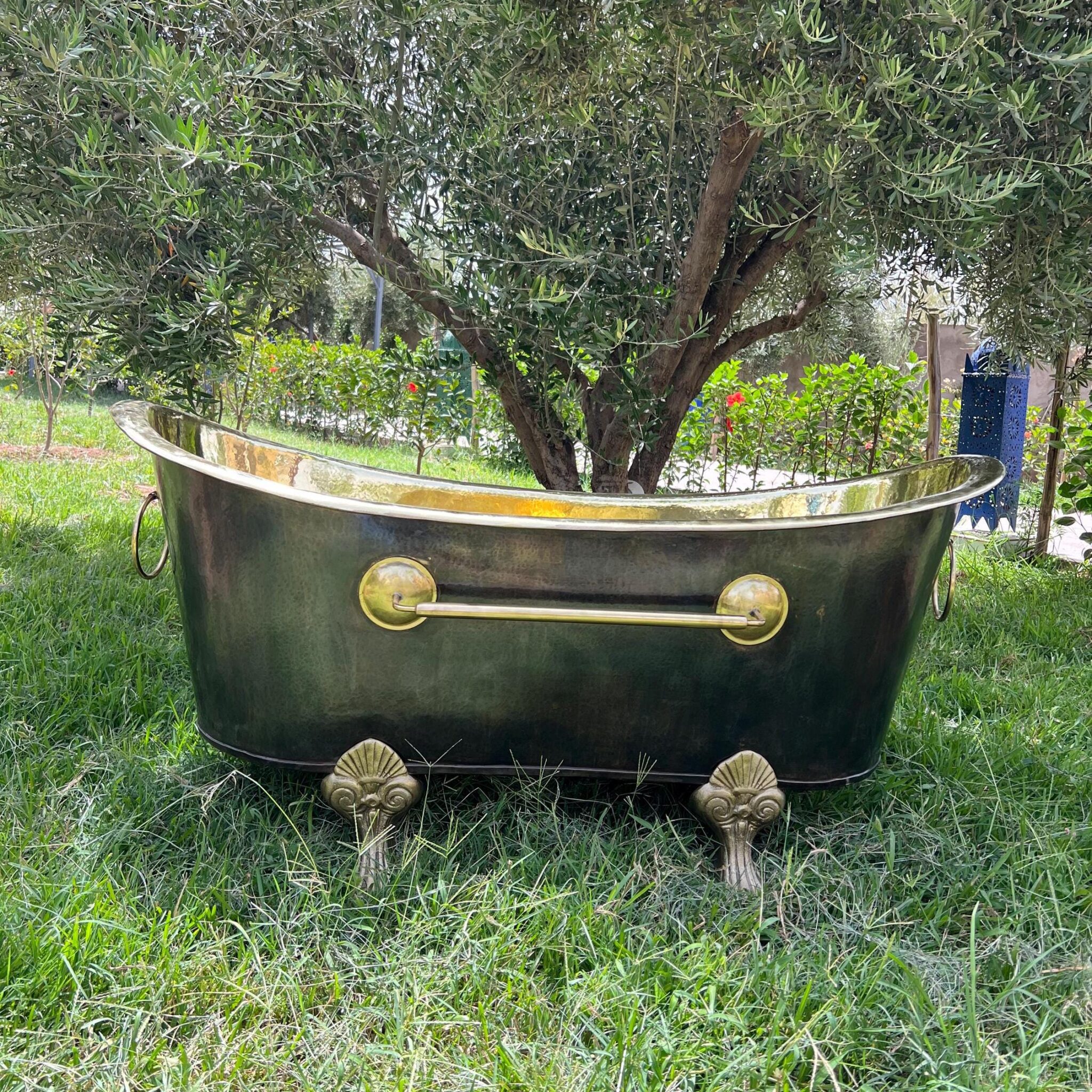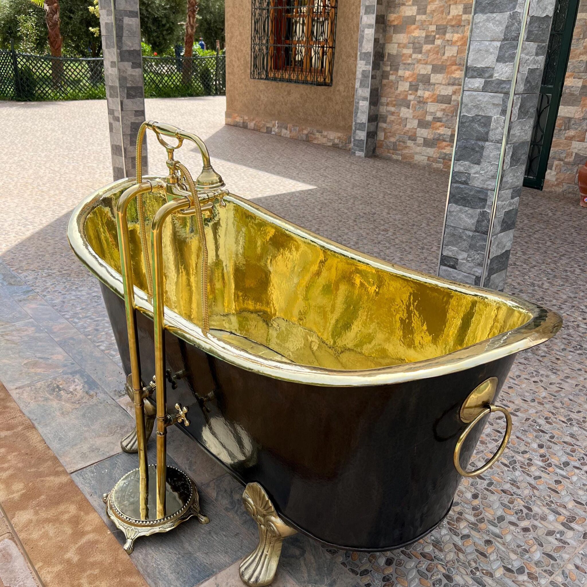Indulge in the timeless elegance of our Antique Brass Freestanding Bathtub. Handcrafted from solid brass and adorned with classic clawfeet, this vintage-inspired bathtub is the epitome of opulence and relaxation. The black finish Gives this bathtub a classic look.