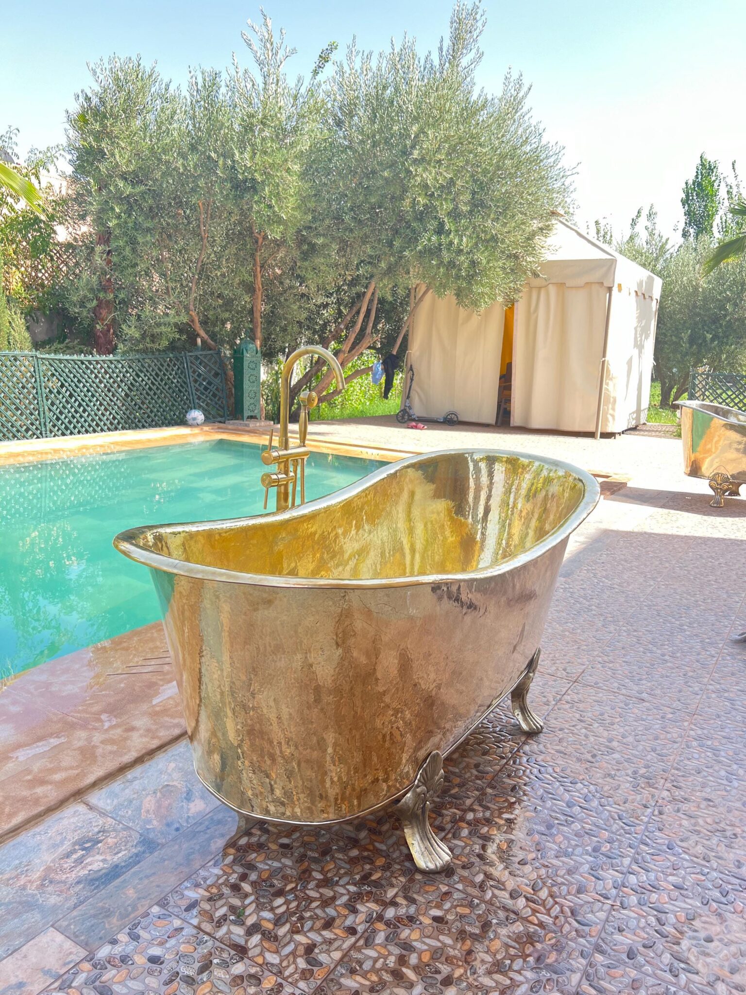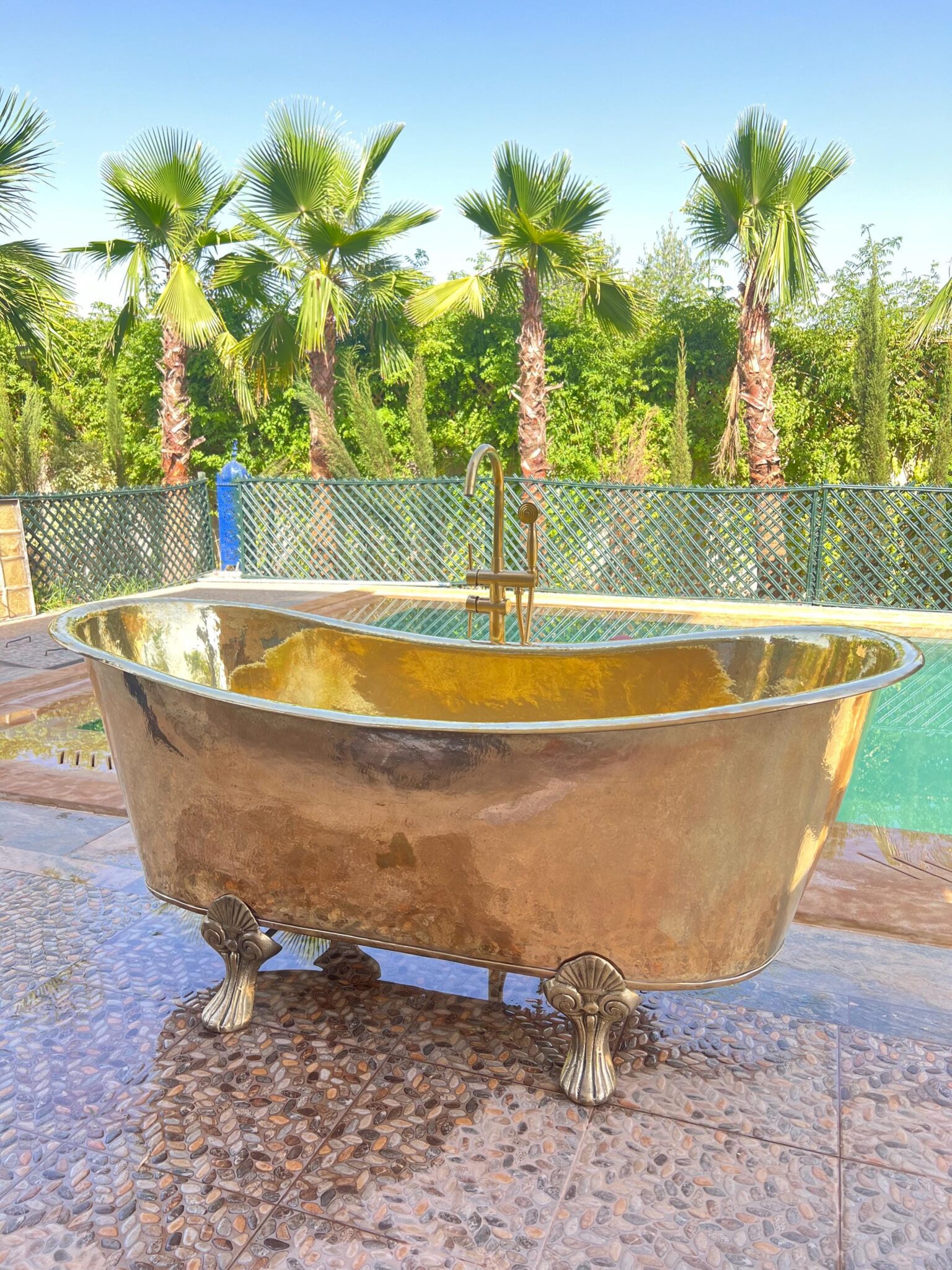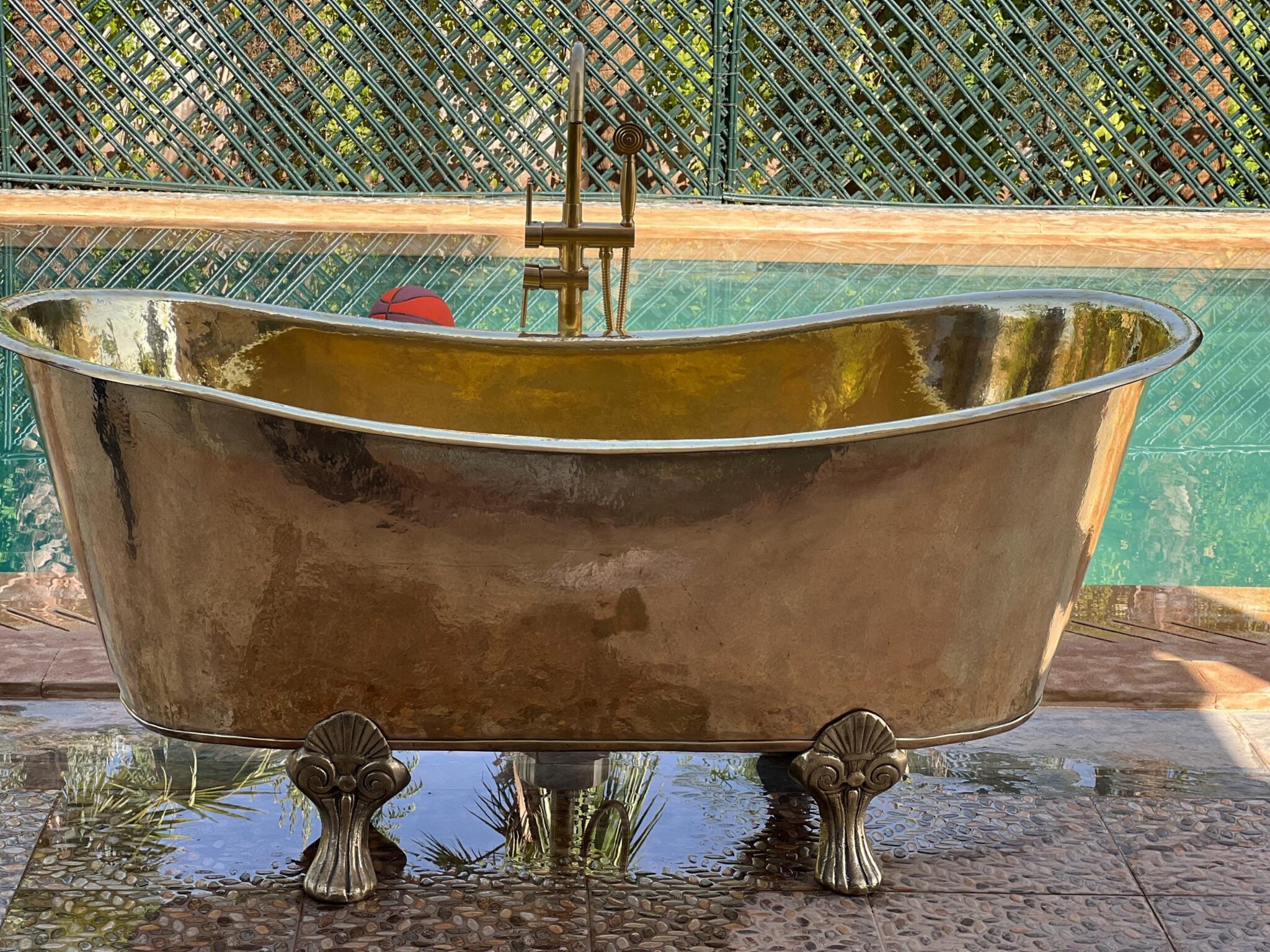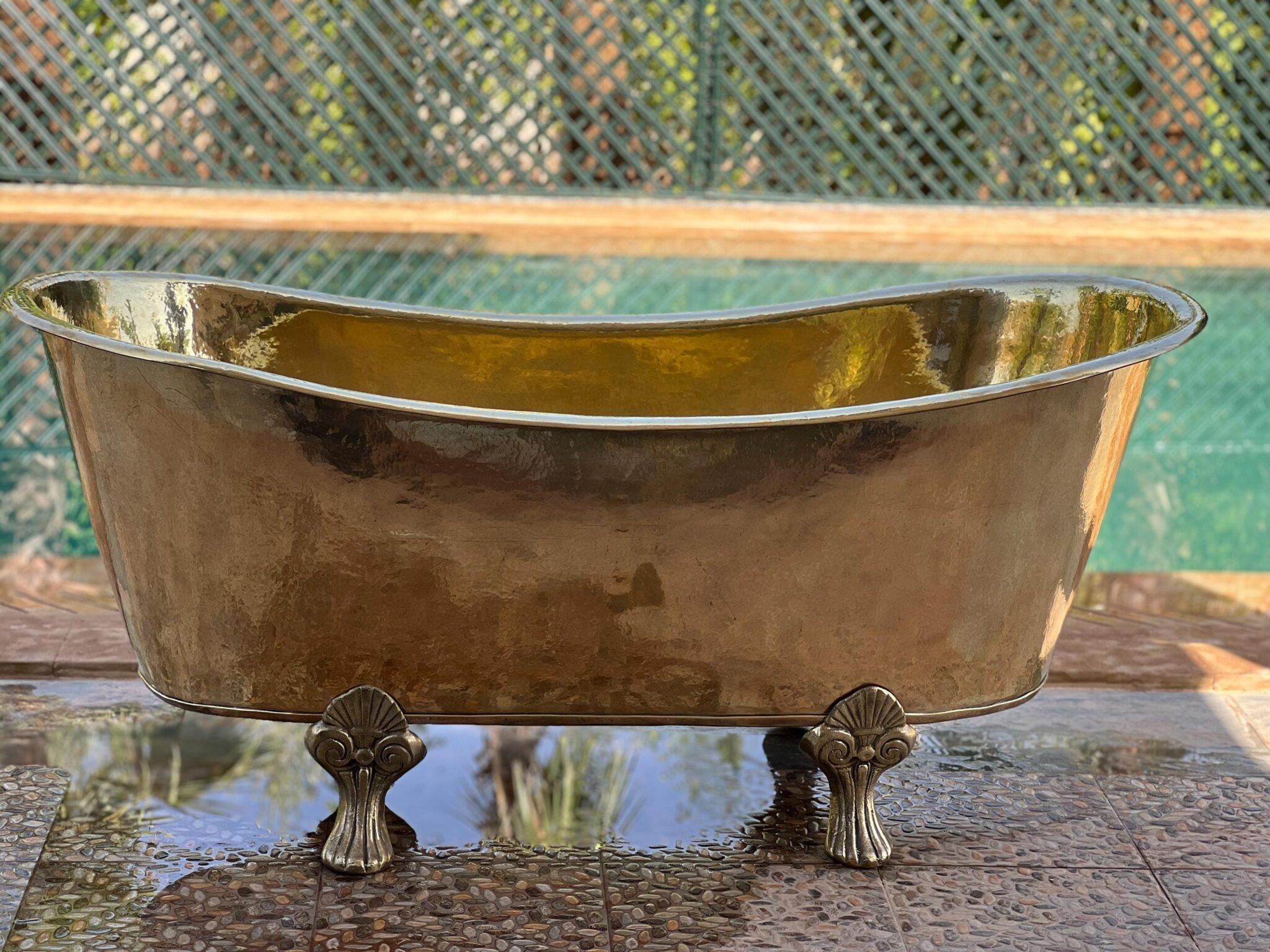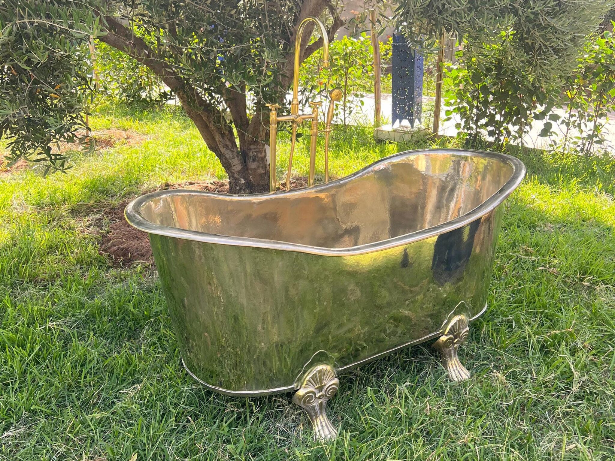 Indulge in the timeless elegance of our Antique Brass Freestanding Bathtub. Handcrafted from luxurious solid brass and adorned with classic clawfeet, this vintage-inspired bathtub is the epitome of opulence and relaxation. Transform your bathroom into a sanctuary with this stunning centerpiece.