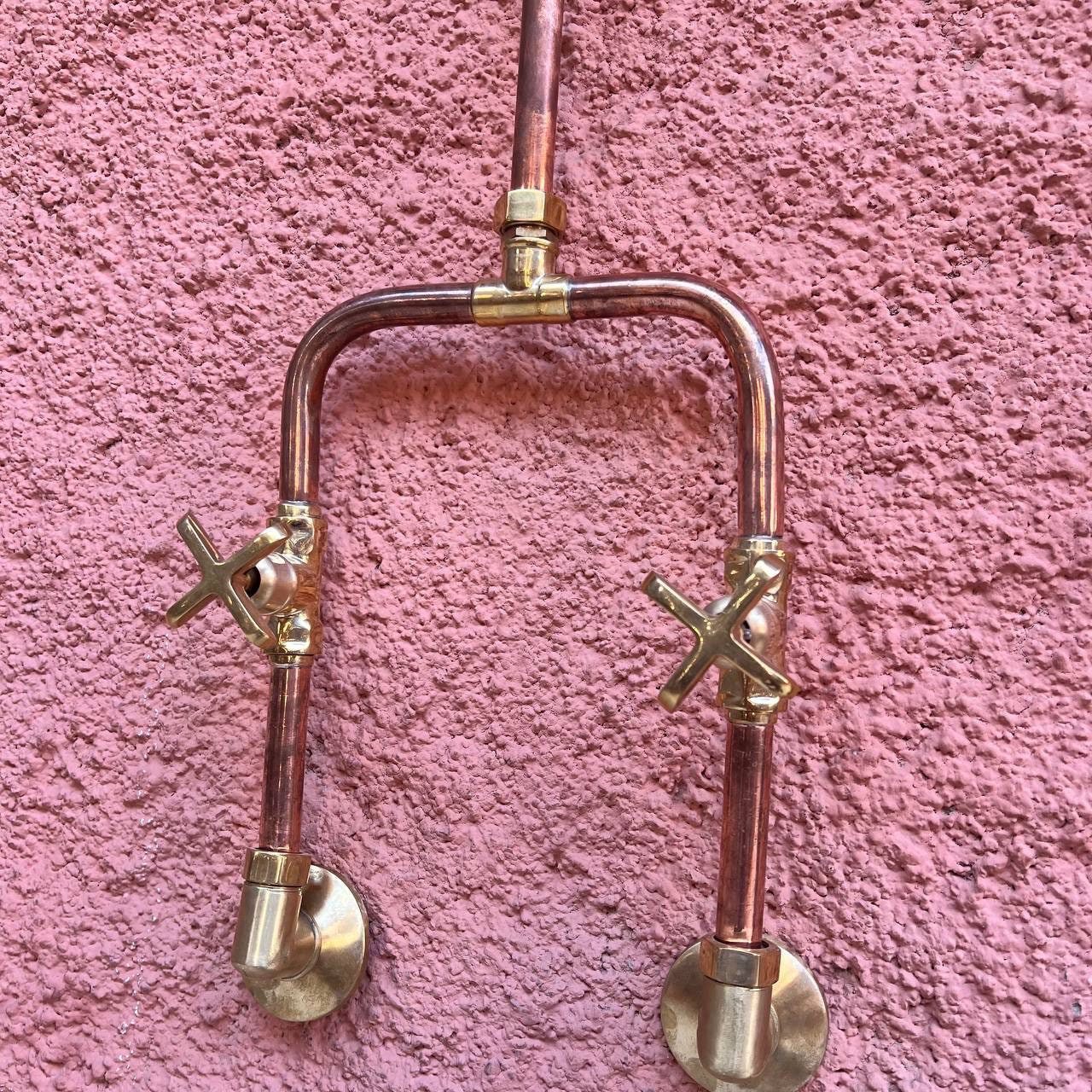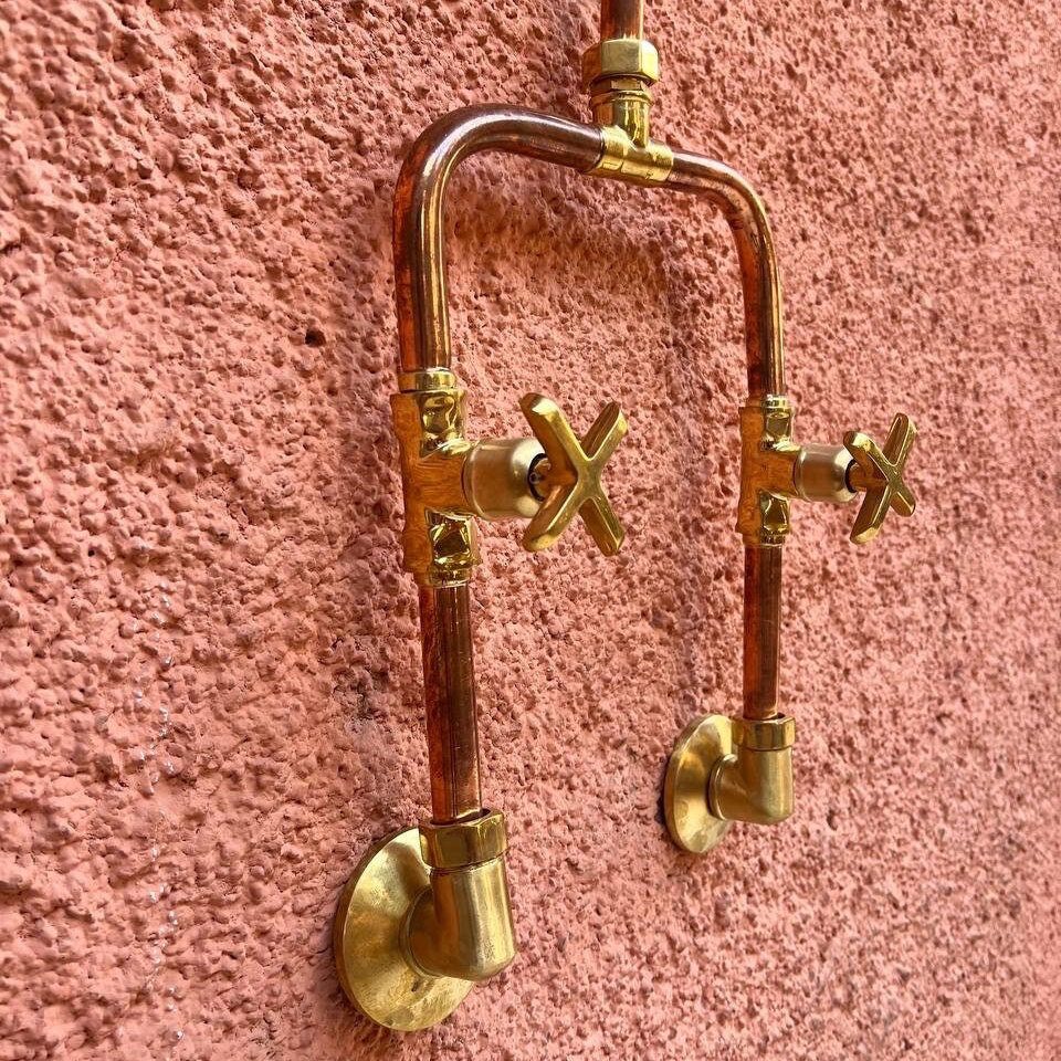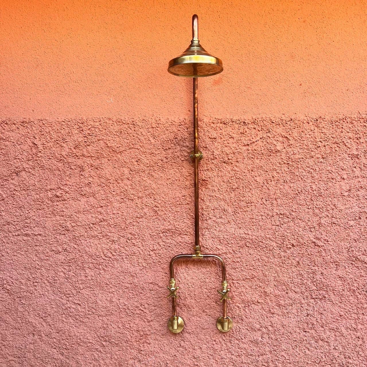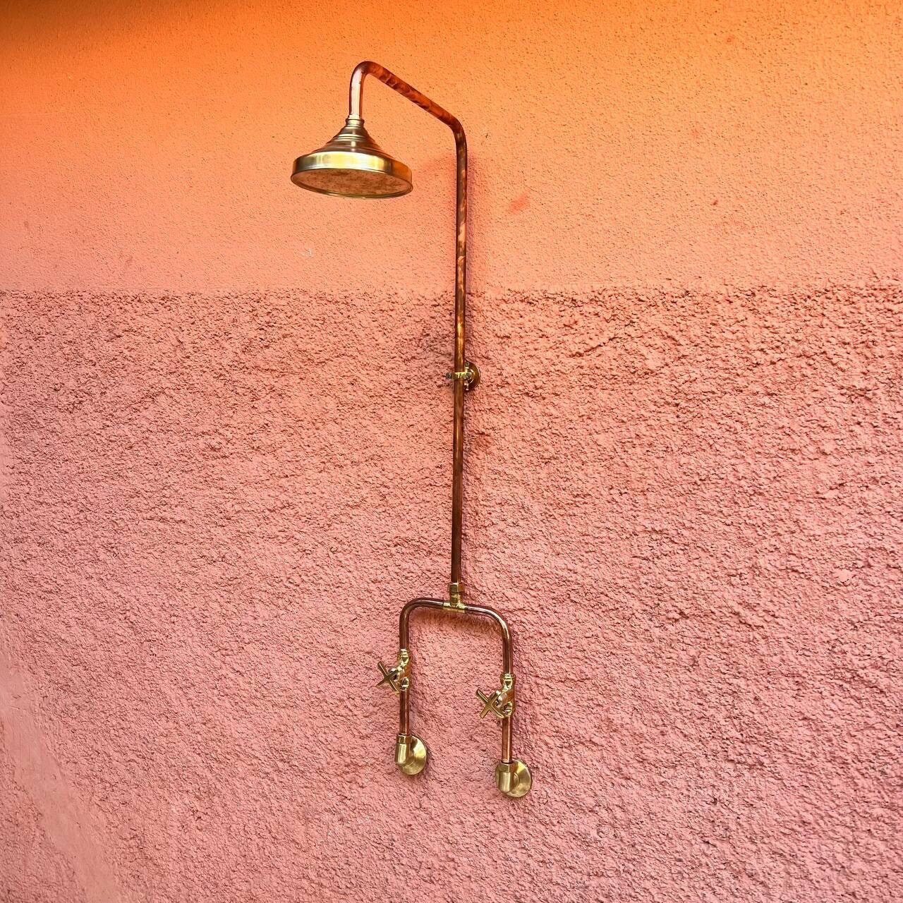 Antique Copper Shower System – Outdoor Copper Shower with Brass Shower Head – Indoors and Outdoors Showers