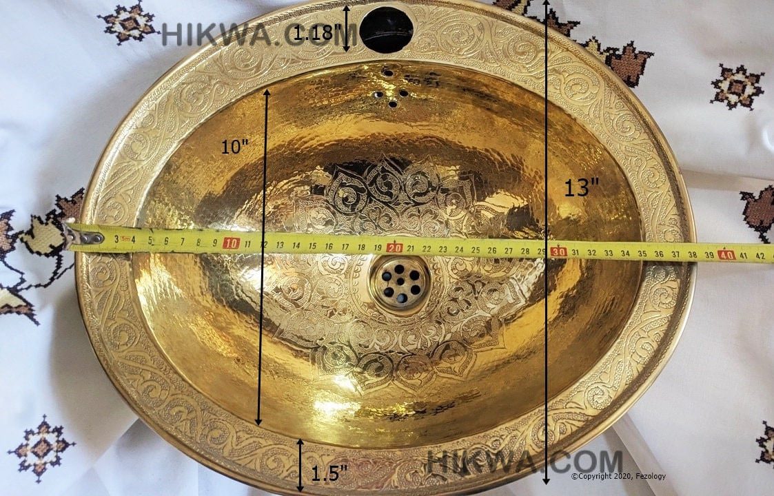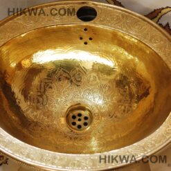 Antique Sink – Brass Sinnk – Hand Hammered Engraved Golden Sink – Oval Engraved Finish Engraved Sink – Farmhouse Vessel Sink – Bar Sink