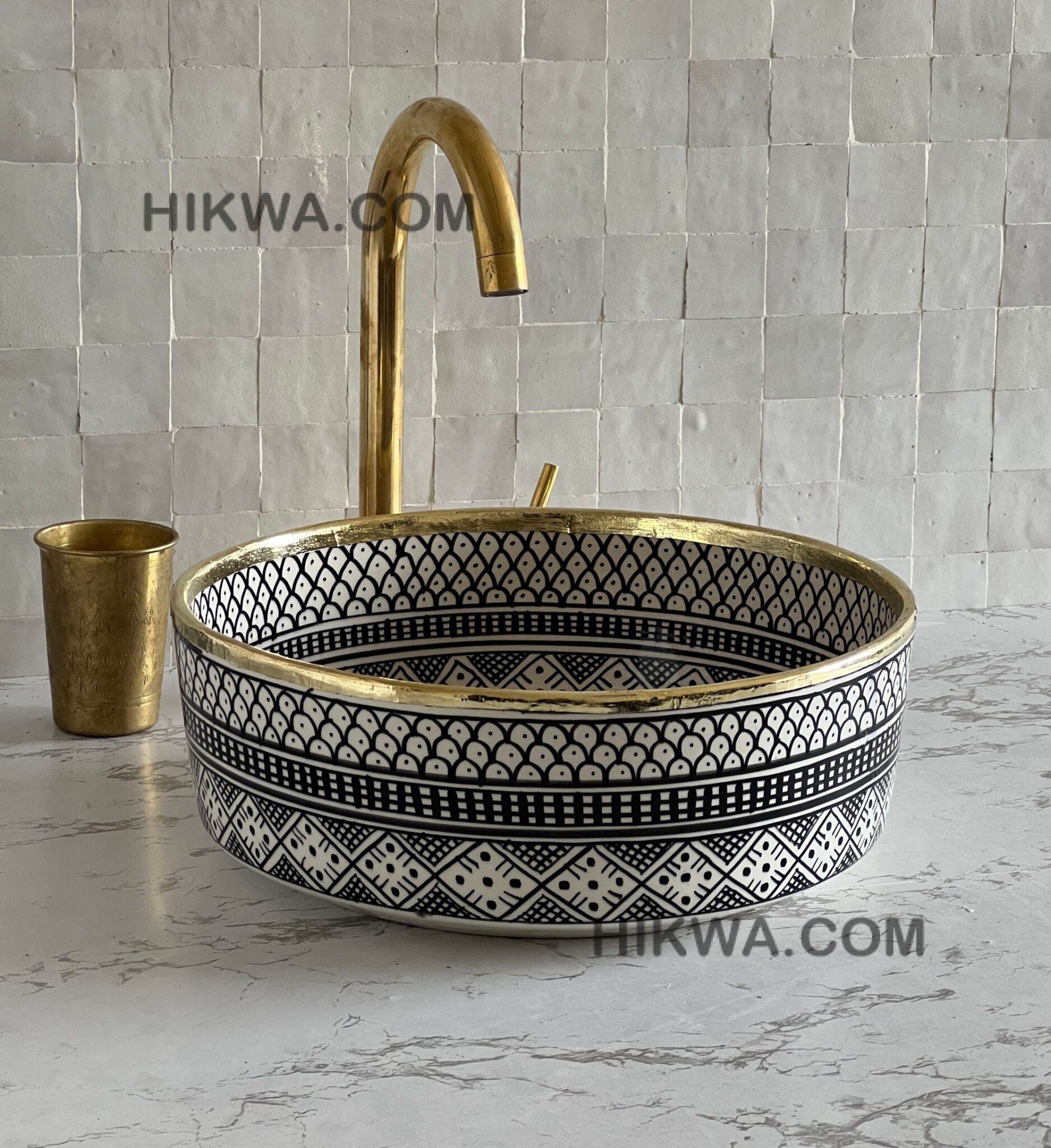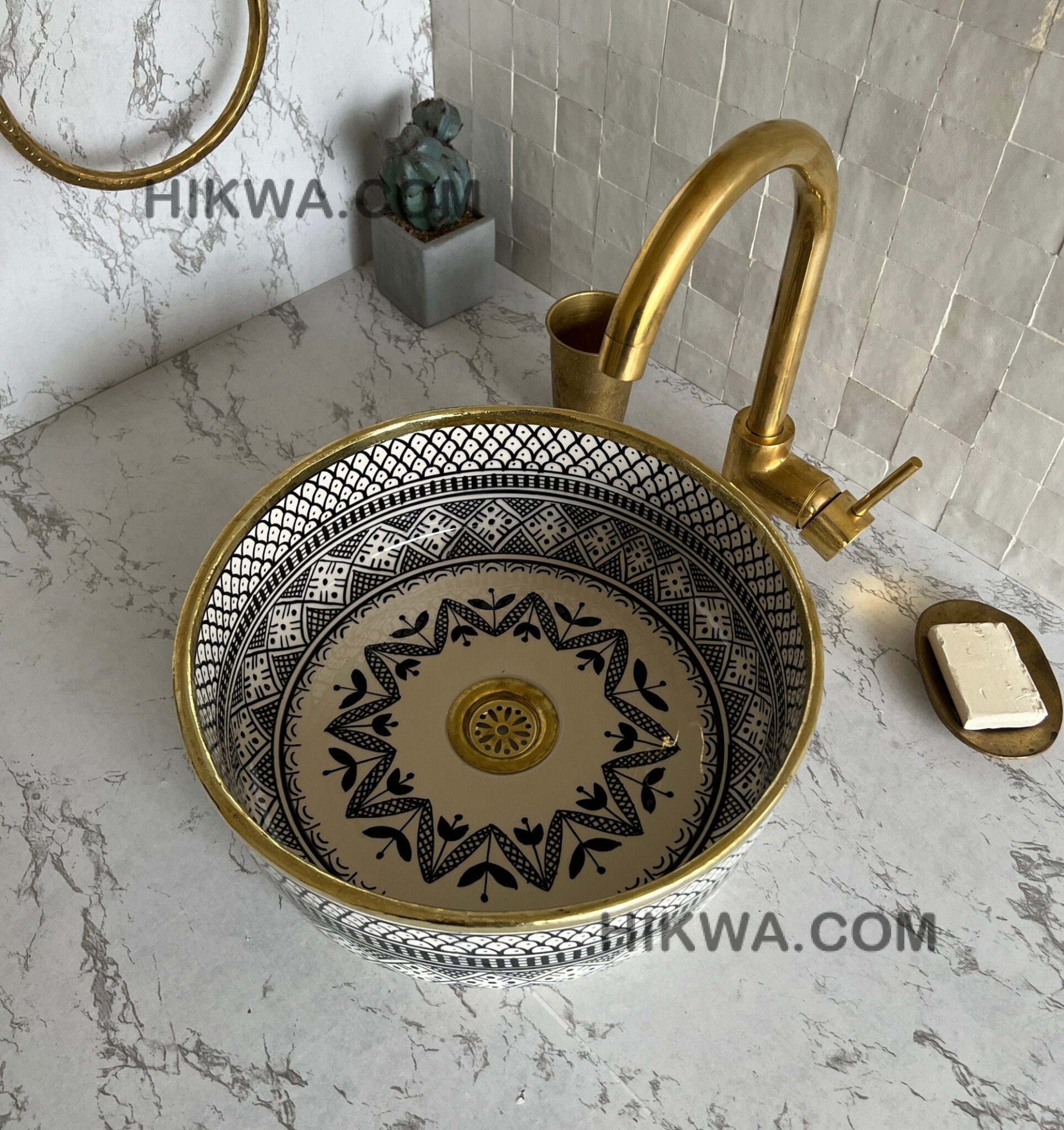 This antique bathroom sink was handcrafted by artisans using traditional Moroccan methods making each sink unique by itself, therefore minor imperfections are to be expected.