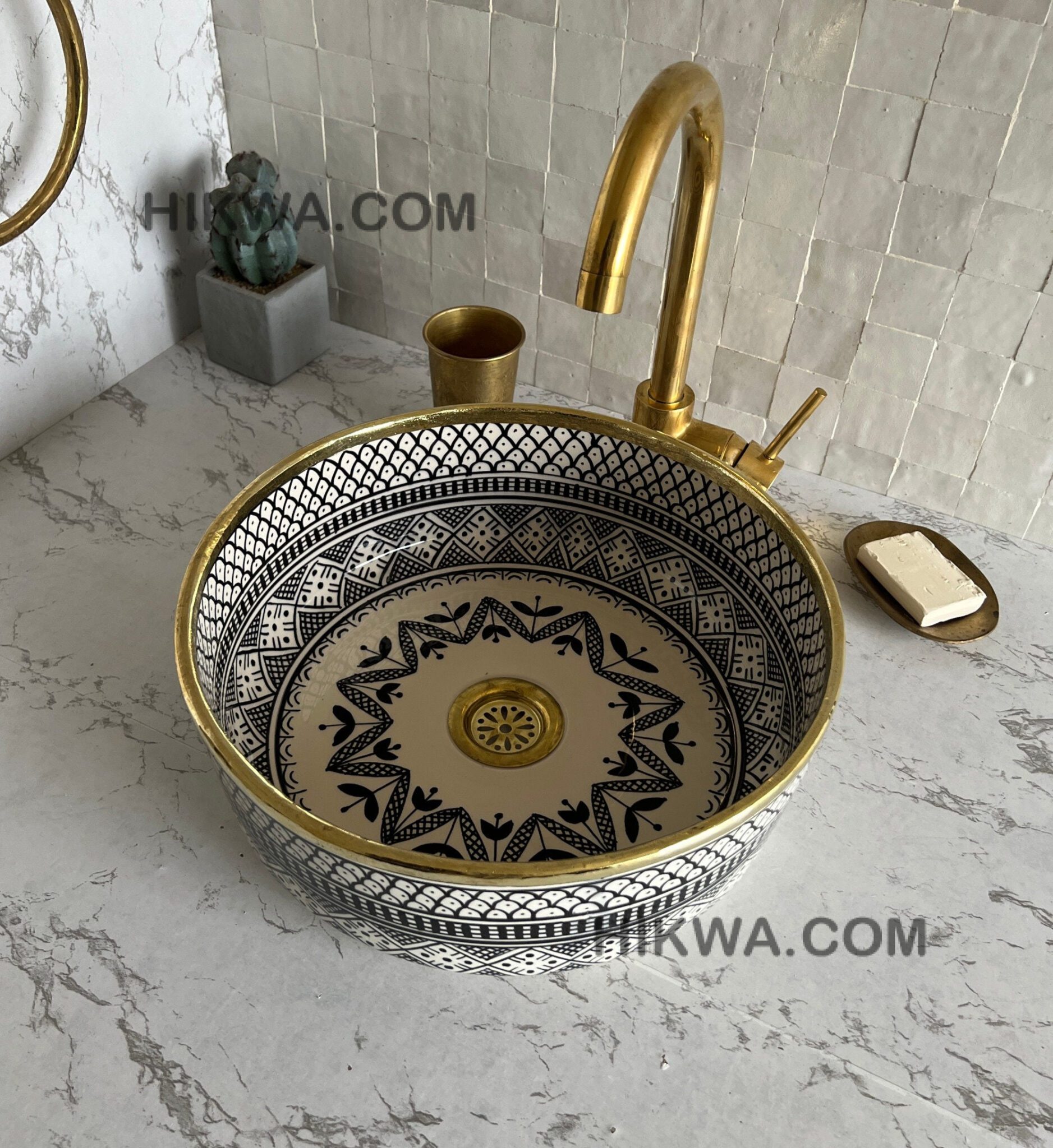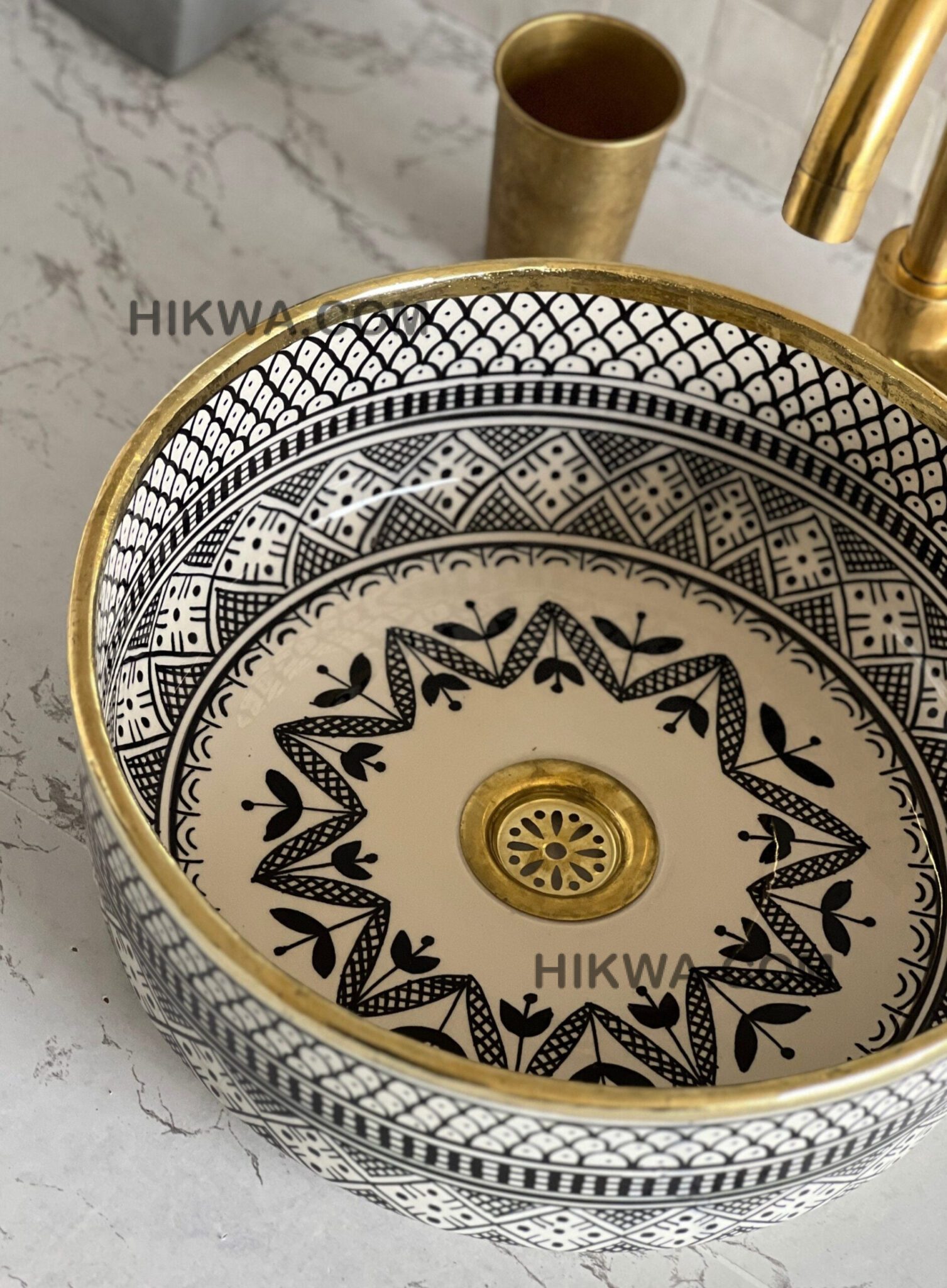 The production process of this wash basin goes through multiple fully organic steps. First, Through skilled artisan hands, ceramic is molded using a potter’s wheel, then left to dry for a few days before getting fired using a traditional kiln. Next, the sink gets glazed and then hand-painted by artisans. Finally, the wash basin gets one last fire to seal everything in then left to cool down for a couple of weeks.