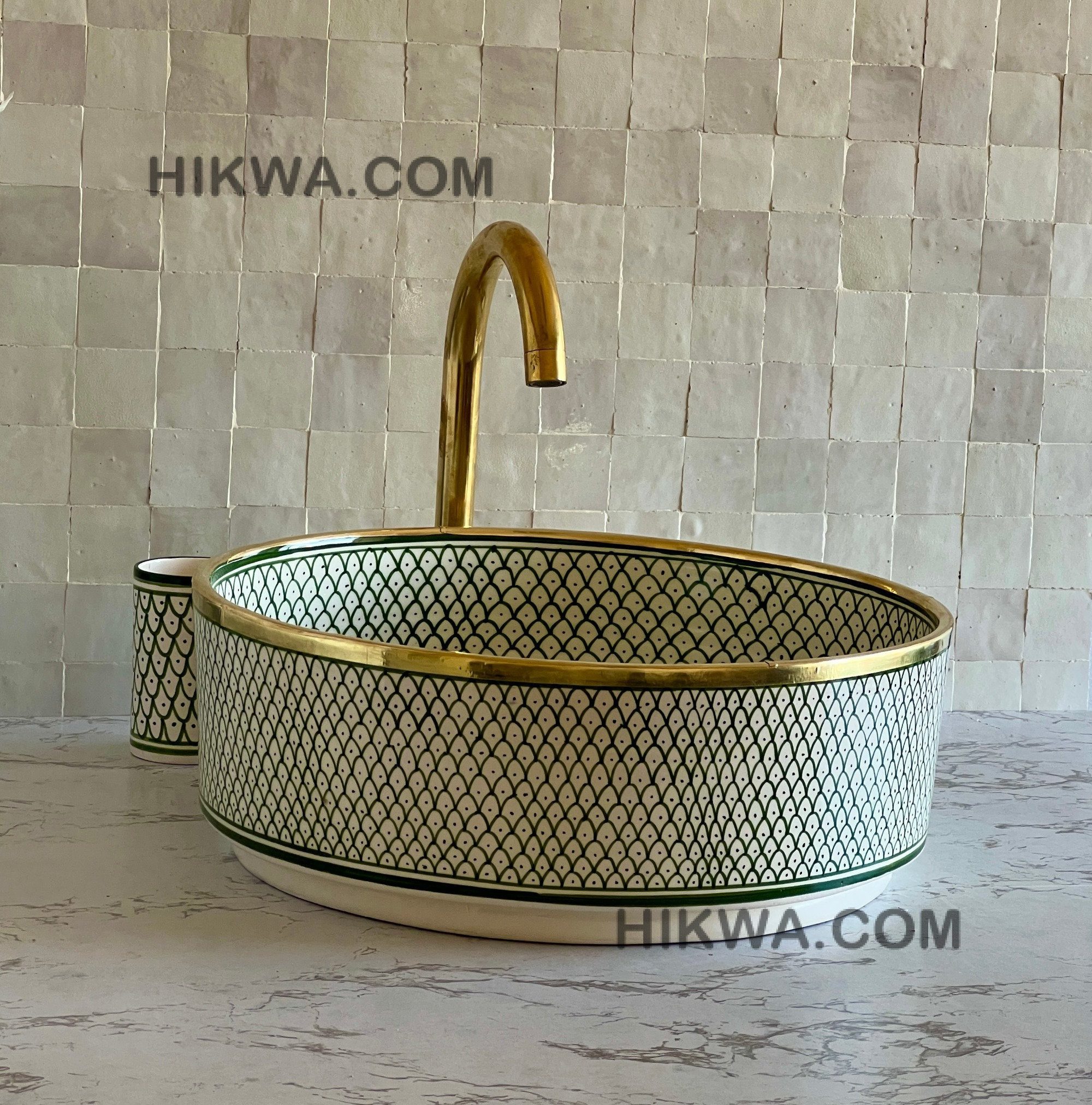 This antique bathroom sink was handcrafted by artisans using traditional Moroccan methods making each sink unique by itself, therefore minor imperfections are to be expected.
