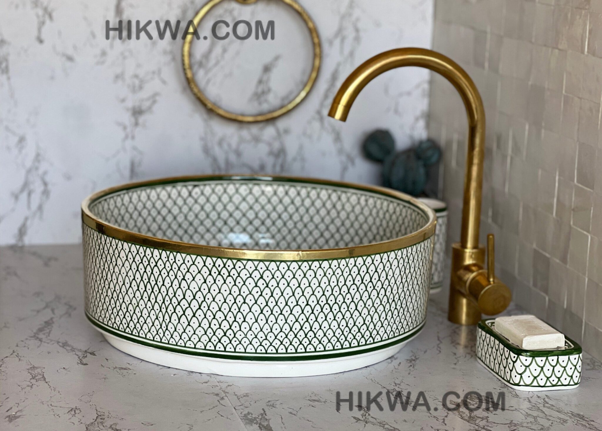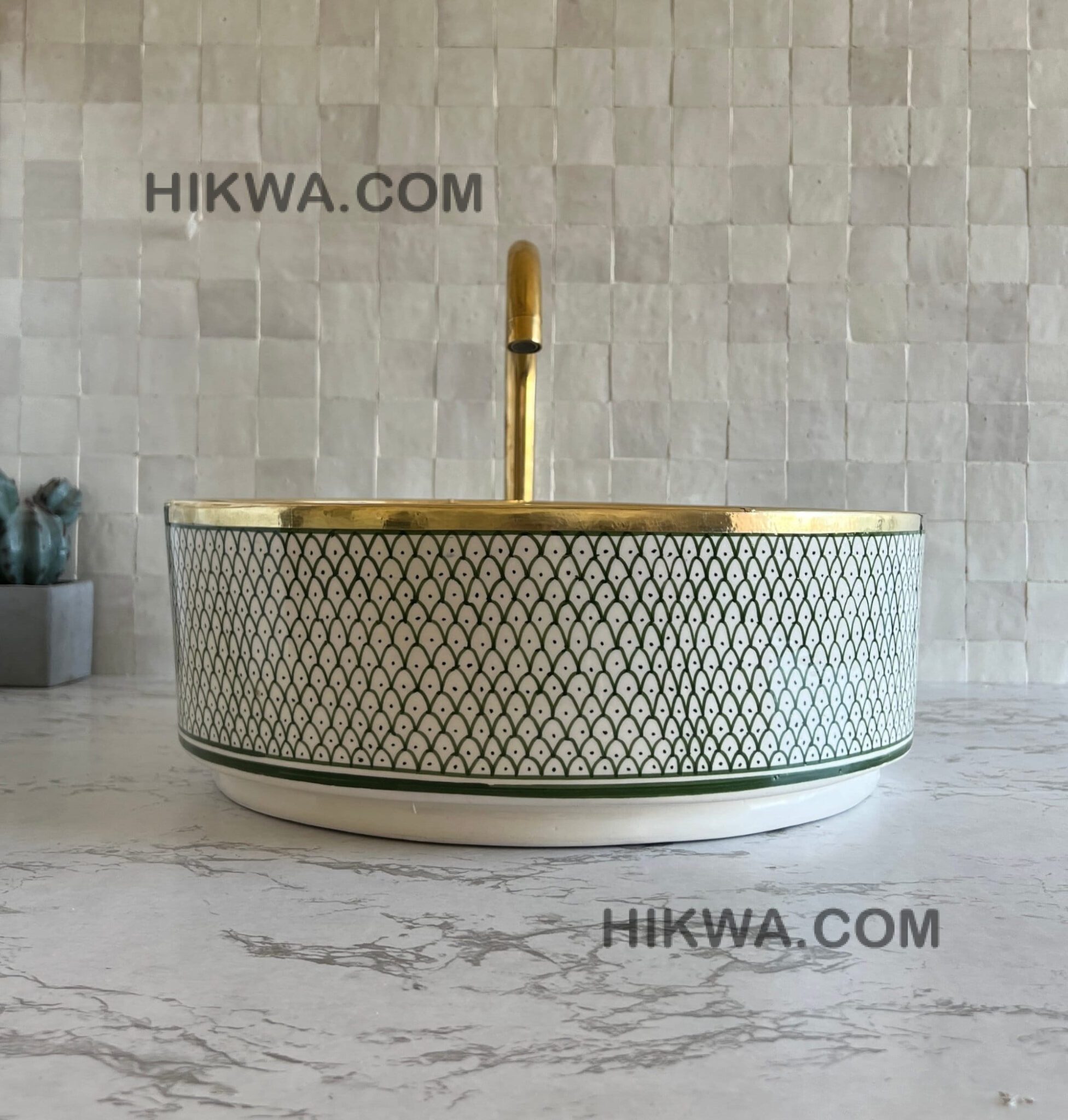 The production process of this wash basin goes through multiple fully organic steps. First, Through skilled artisan hands, ceramic is molded using a potter’s wheel, then left to dry for a few days before getting fired using a traditional kiln. Next, the sink gets glazed and then hand-painted by artisans. Finally, the wash basin gets one last fire to seal everything in then left to cool down for a couple of weeks.