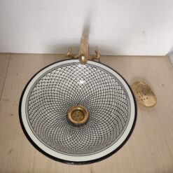 Transform your bathroom or kitchen into a sanctuary of style and authenticity with this one-of-a-kind piece. The carefully glazed surface enhances both the visual appeal and longevity of the sink, making it a practical and stunning addition to your home. Whether you’re renovating your space or simply looking to infuse a touch of global allure, our Moroccan handmade ceramic sink is the perfect choice.