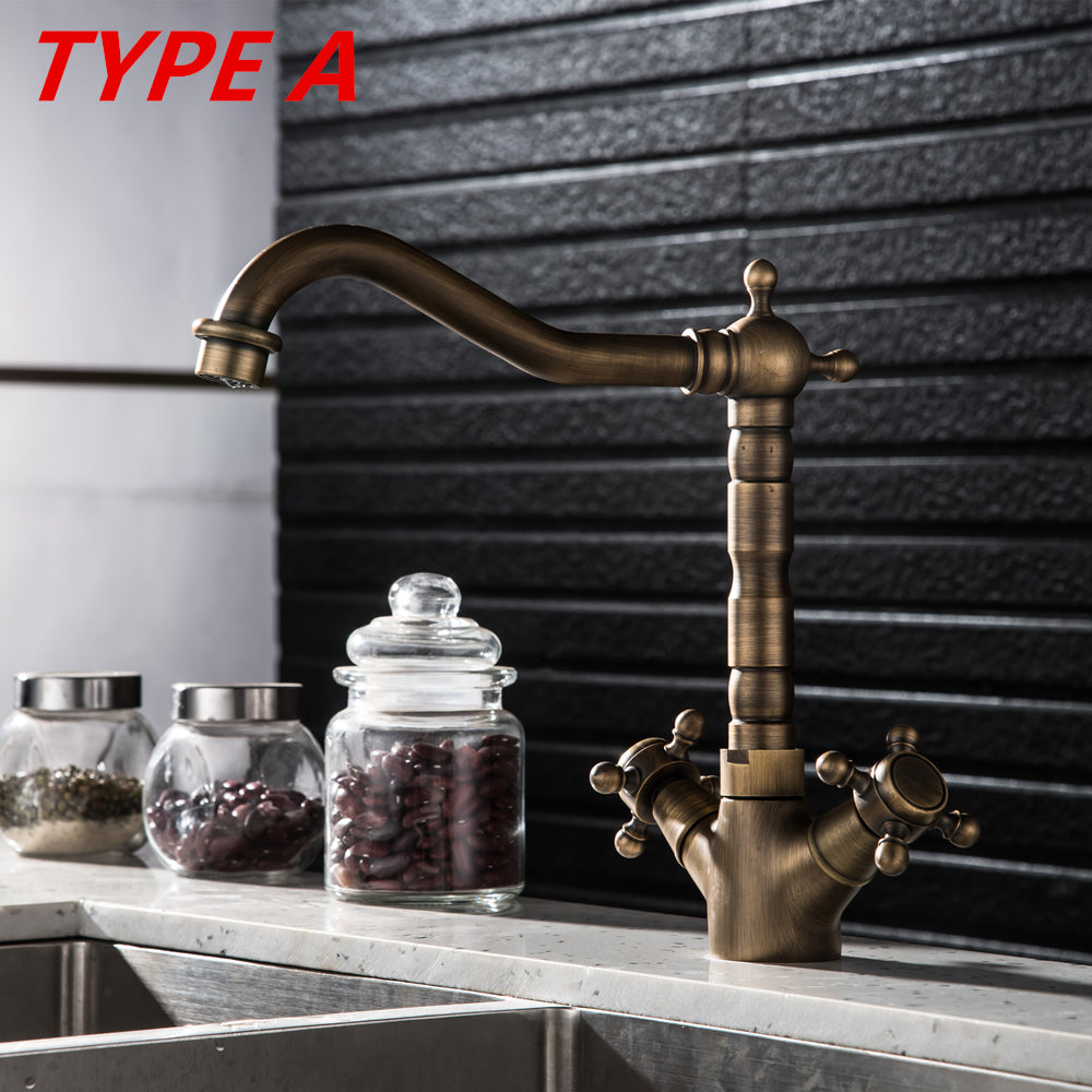 Bathroom Countertop Vessel Sink Faucet | Dual Handles Basin Mixer Taps | Retro Copper Basin Faucet
