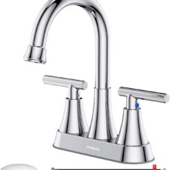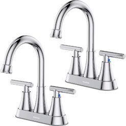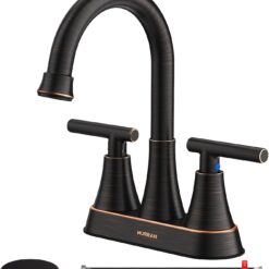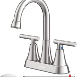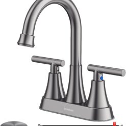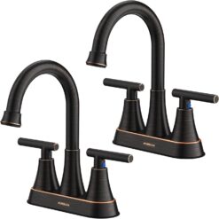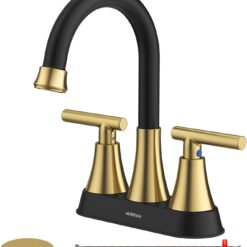 Bathroom Faucets for Sink 3 Hole, 4 inch Matte Black with Pop-up Drain and 2 Supply Hoses, Stainless Steel Lead-Free 2-Handle Centerset Faucet for Sink Vanity