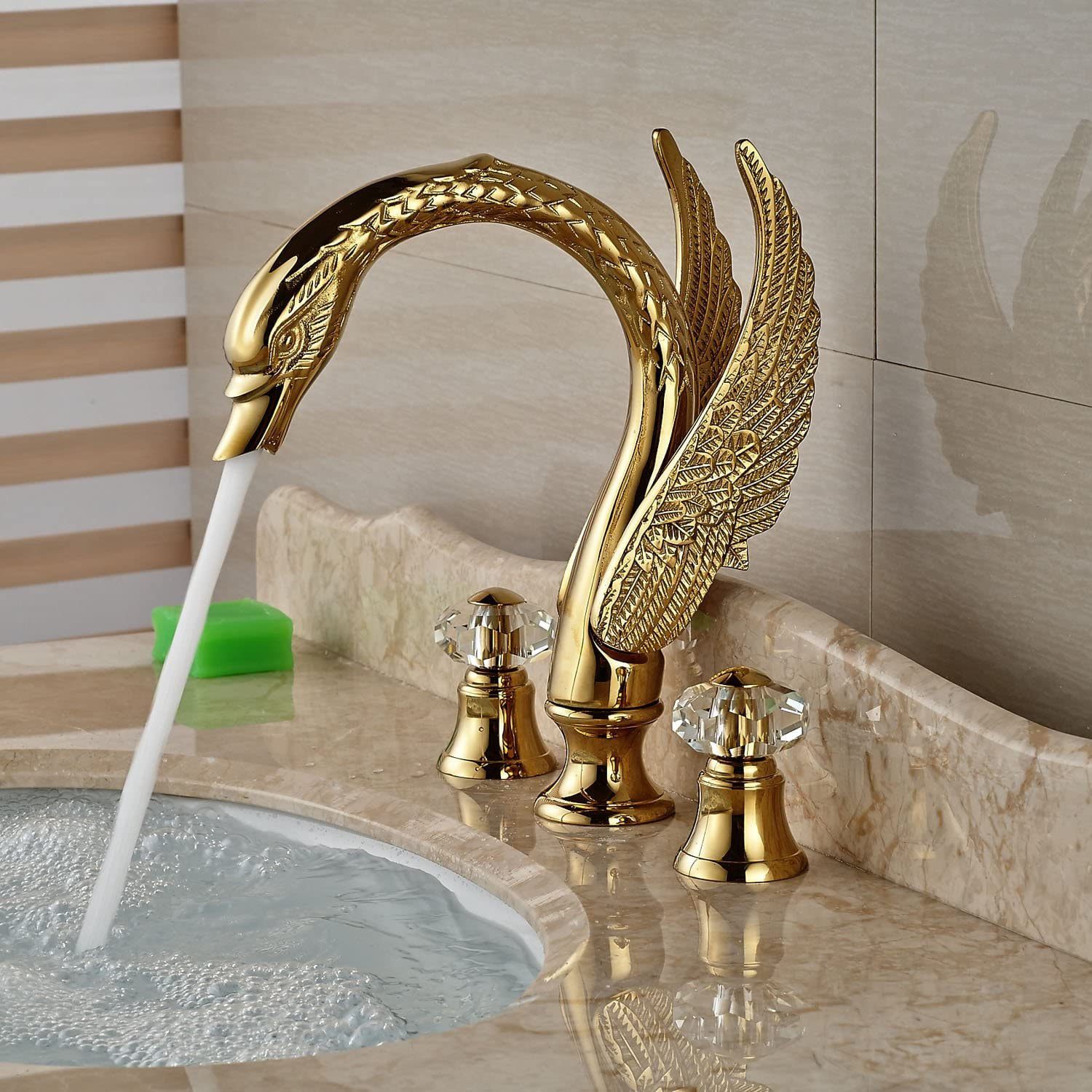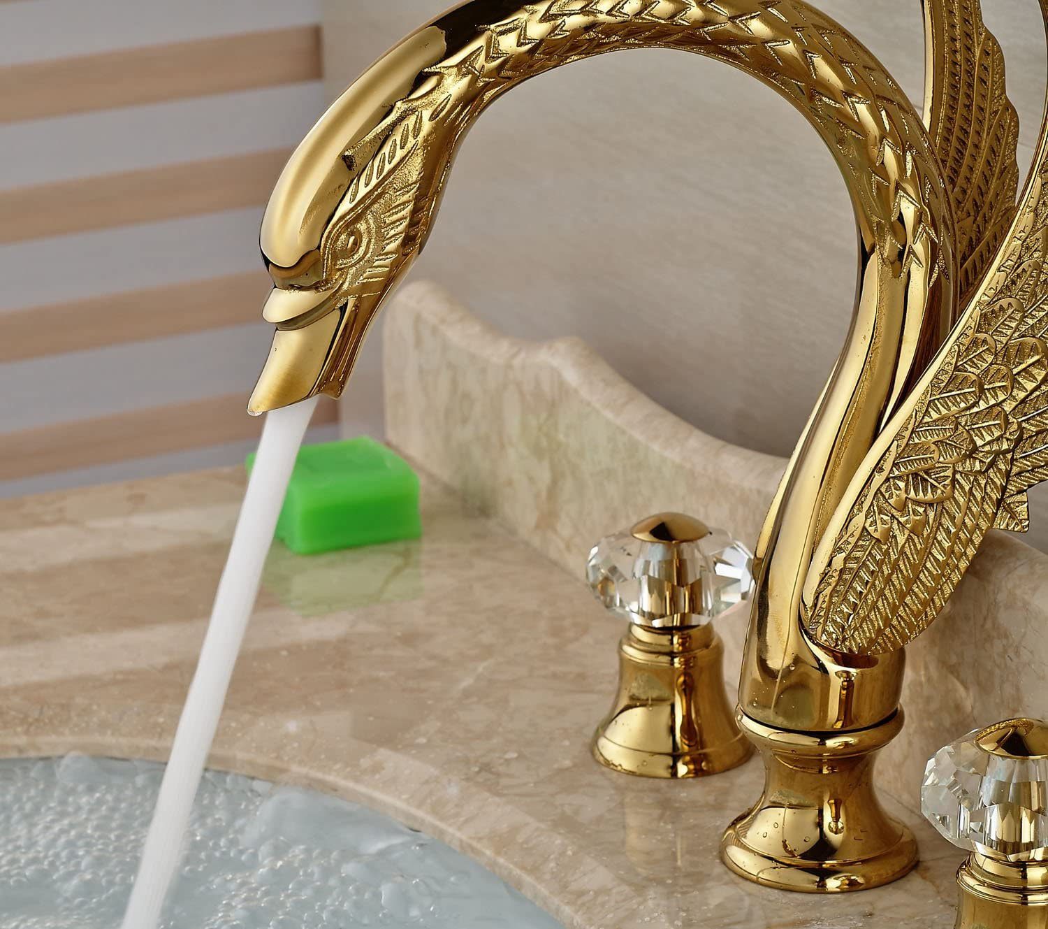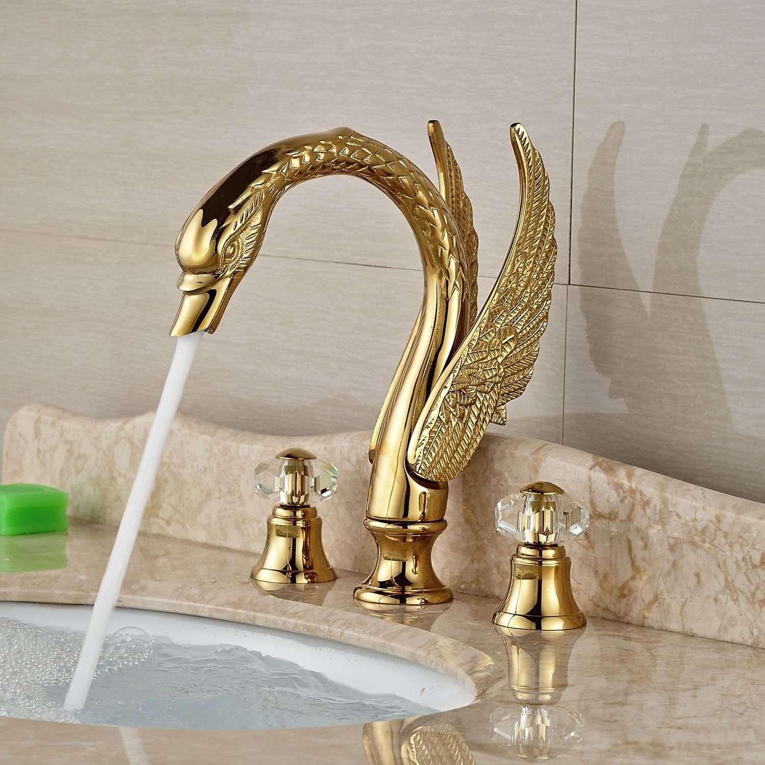 Bathroom Gold Faucet , Swan Tap , Brass Faucet , Crystal Handles Tap