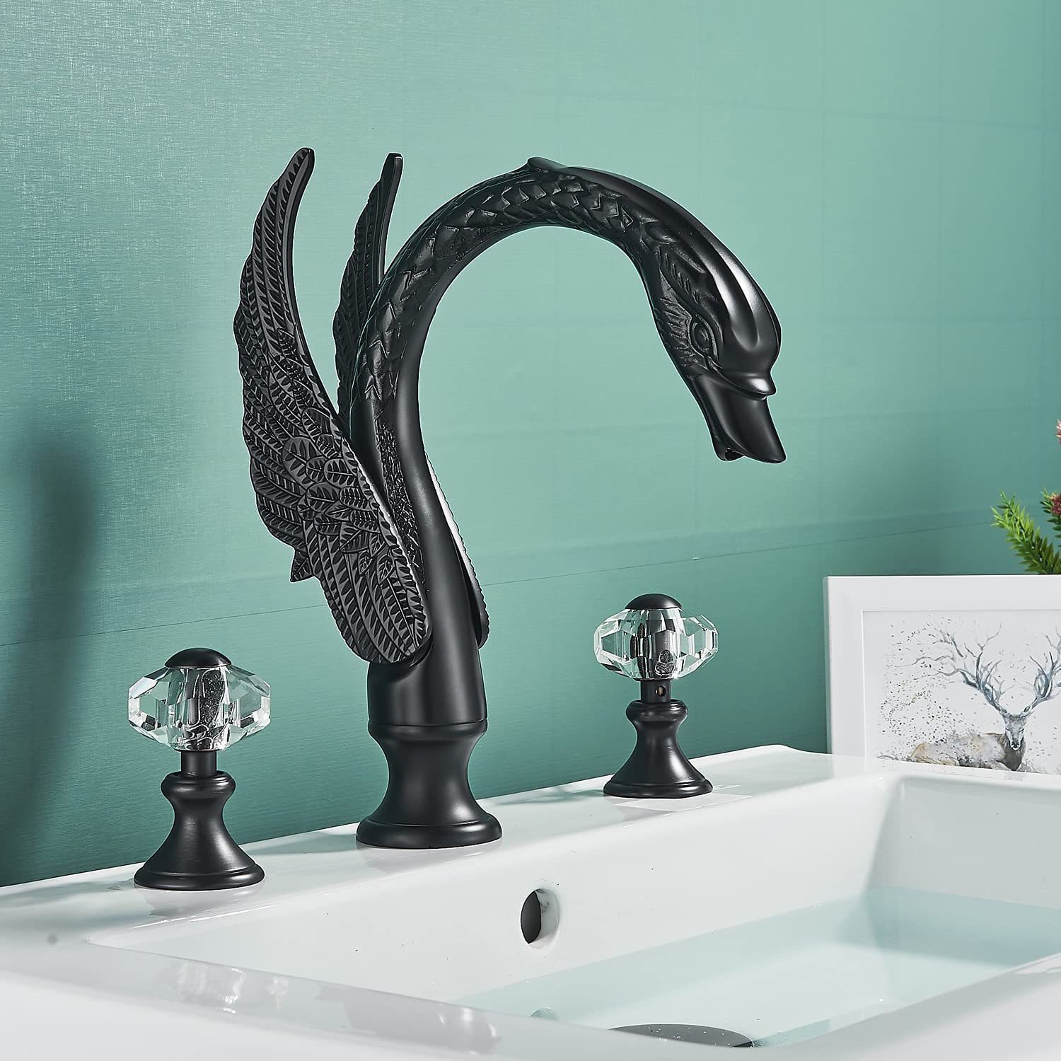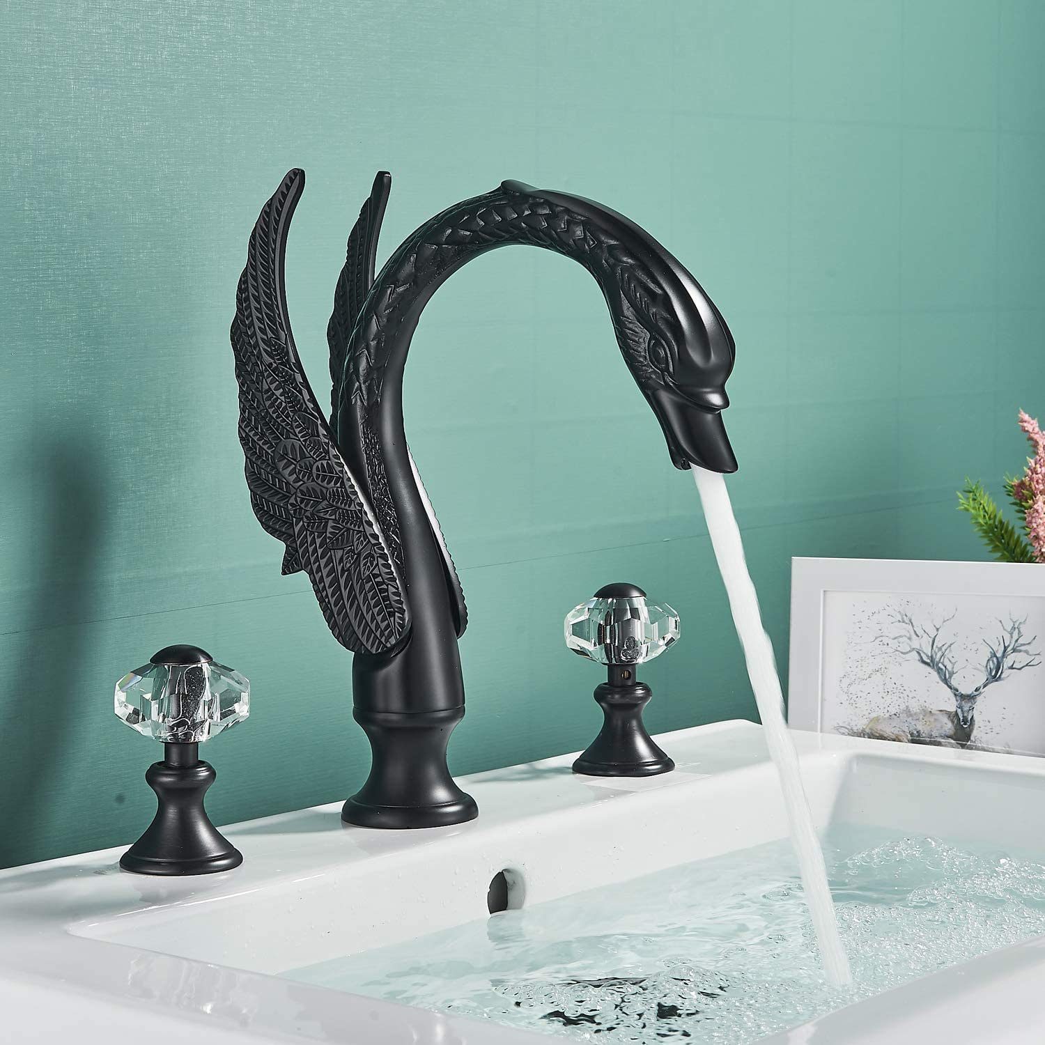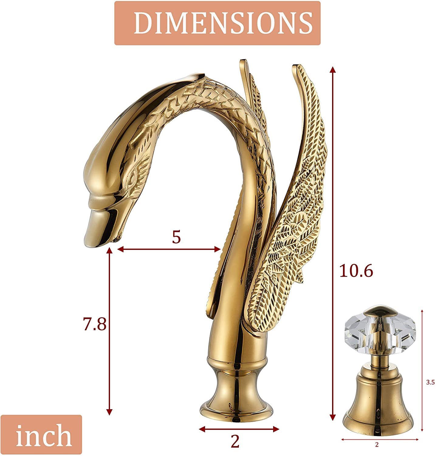 Bathroom Gold Faucet , Swan Tap , Brass Faucet , Crystal Handles Tap