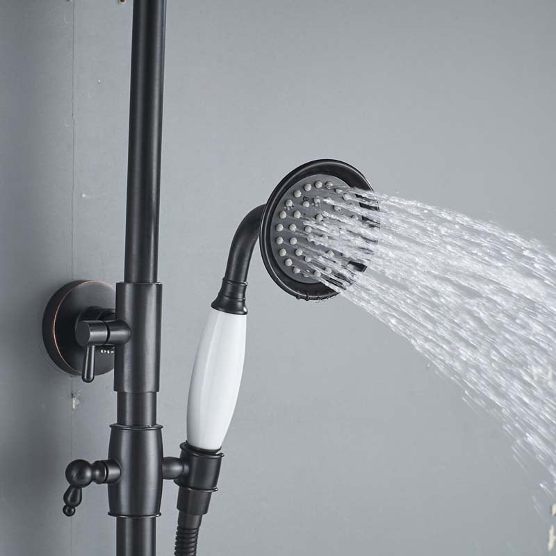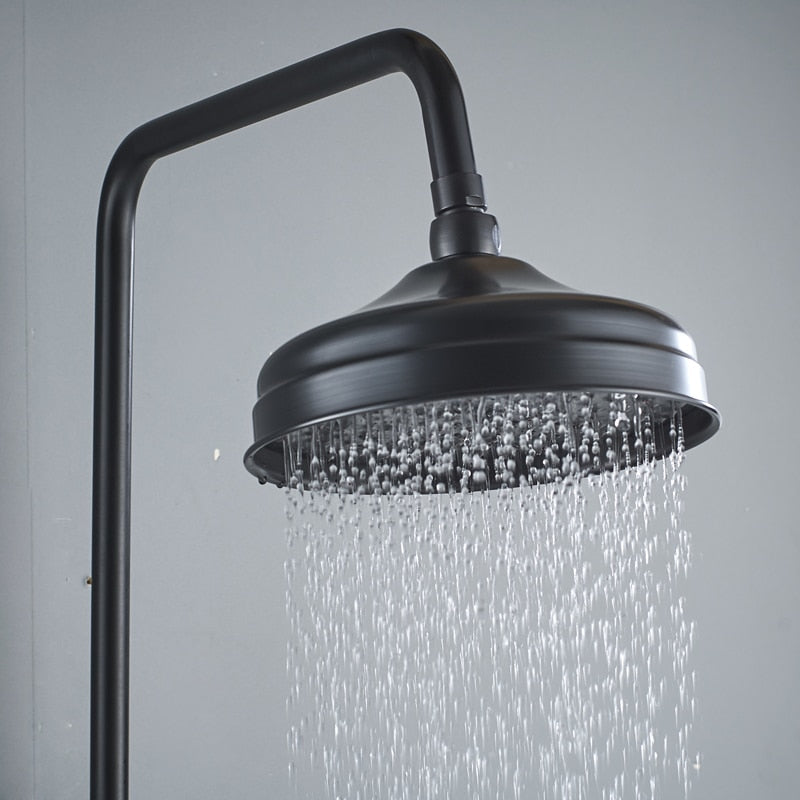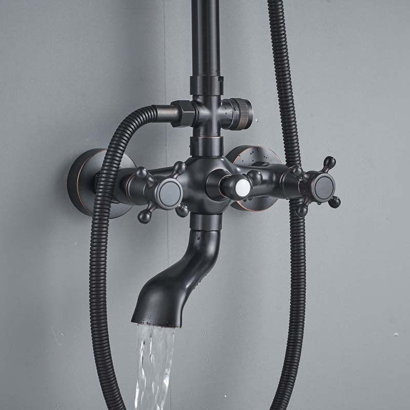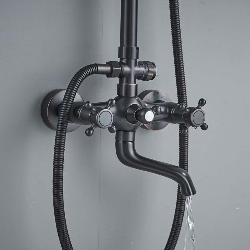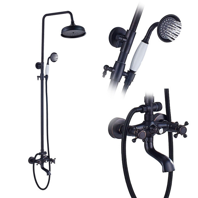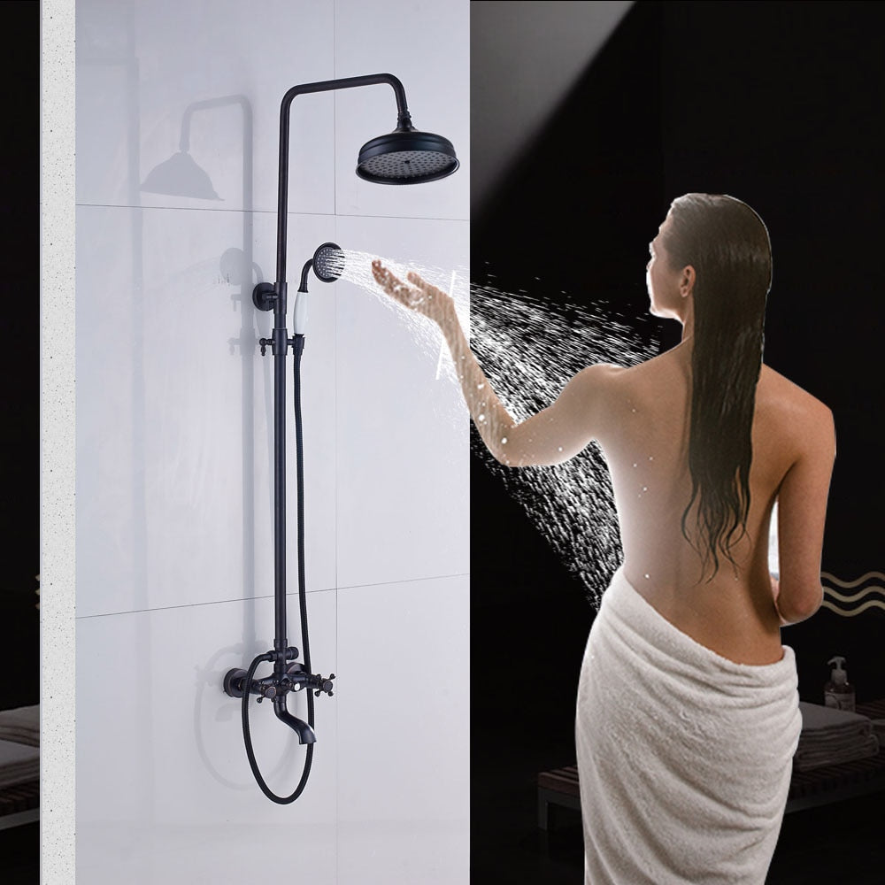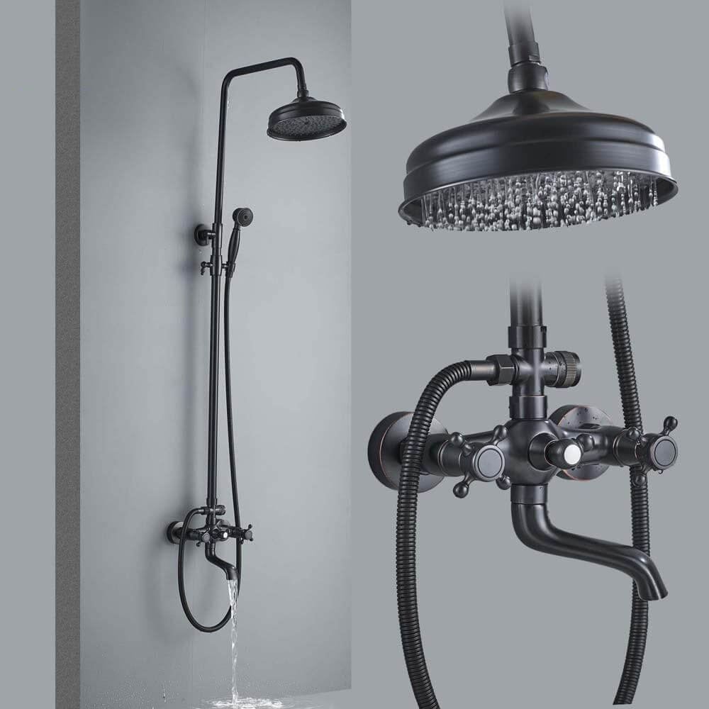Bathroom Rainfall Shower Mixer Faucet Dual Handle Bath Shower Set Black Brass 8″ Showerhead Shower Faucet System with Handshower