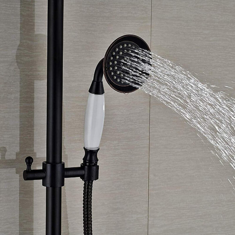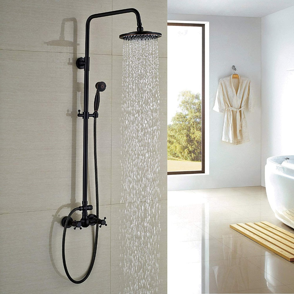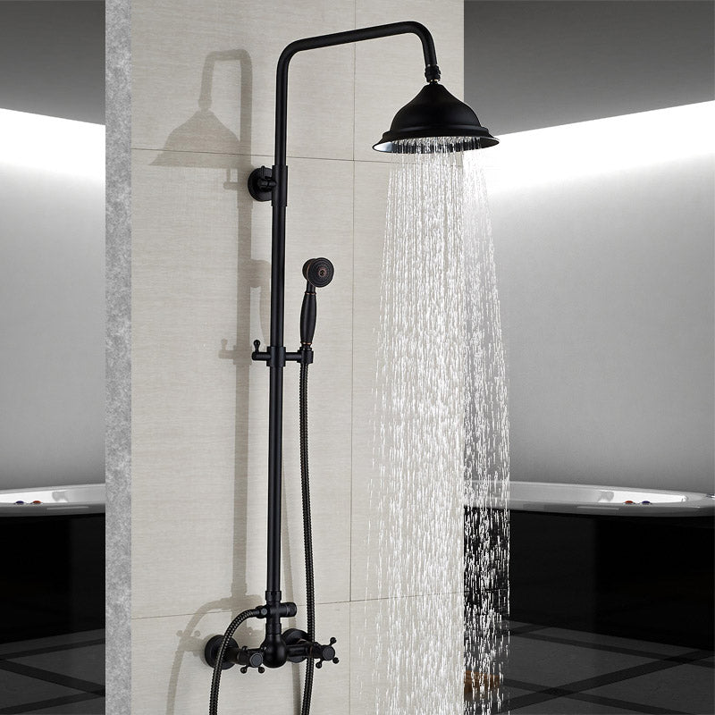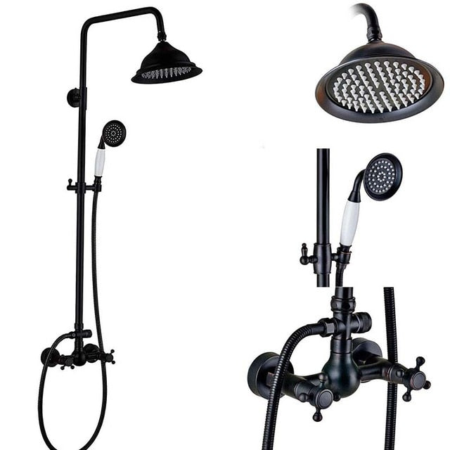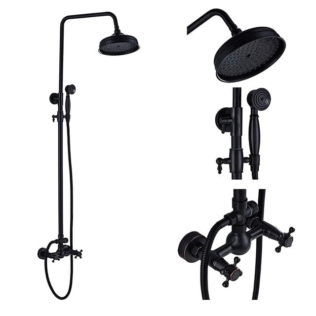 Bathroom Rainfall Shower Mixer Faucet Dual Handle Brass Black Shower Set Faucet Wall Mount Rainfall Shower Mixer Tap Handshower