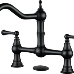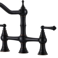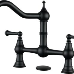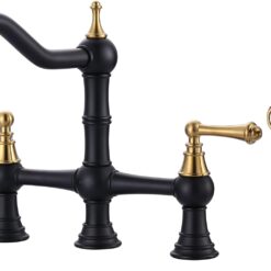 【Solid Brass Construction】The heavy-duty bridge faucet is made of premium solid brass and weighs 7.76 IBS. It resists rust and corrosion, ensuring water safety and a long lifespan. Low-key in a pure black finish, easy to create a classic kitchen decorating style.