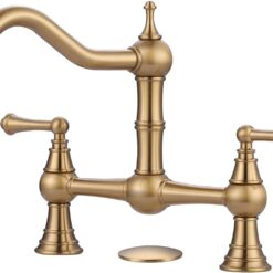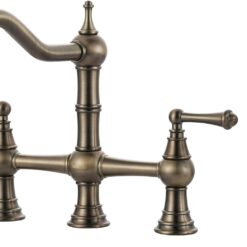 【Bridge Style Design】Antique brass kitchen faucet is a beautiful kitchen addition for creating a classic Victorian-inspired look. A diverter cap is provided for those who do not want to install the sprayer, with the option of plugging the center threaded rod.