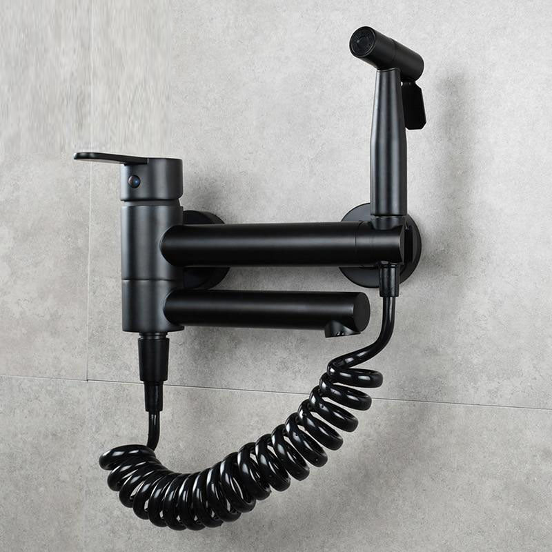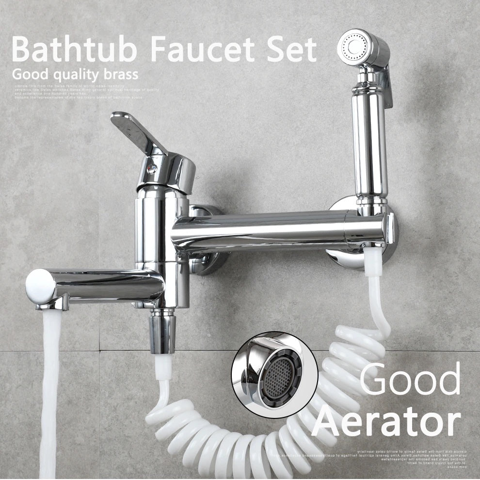 Brass Bathtub Faucet Set Bathroom Wall Mounted Bathtub Faucet with Bidet Sprayer for Showering