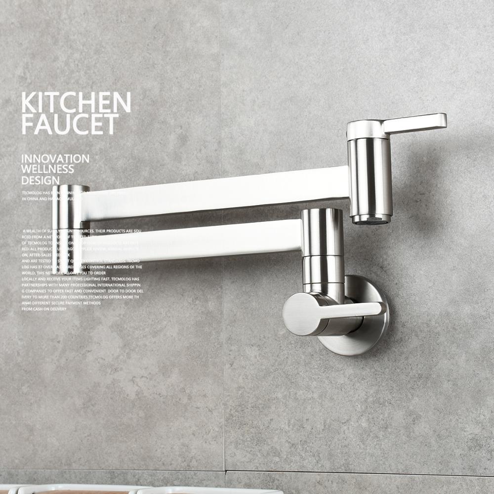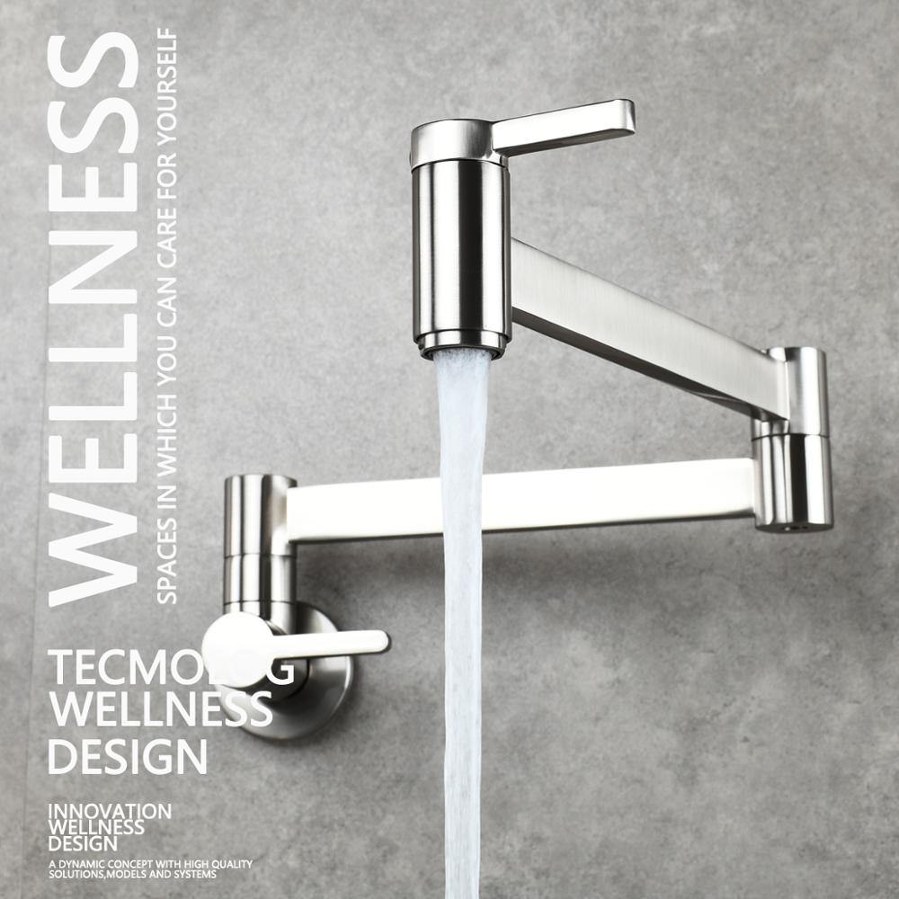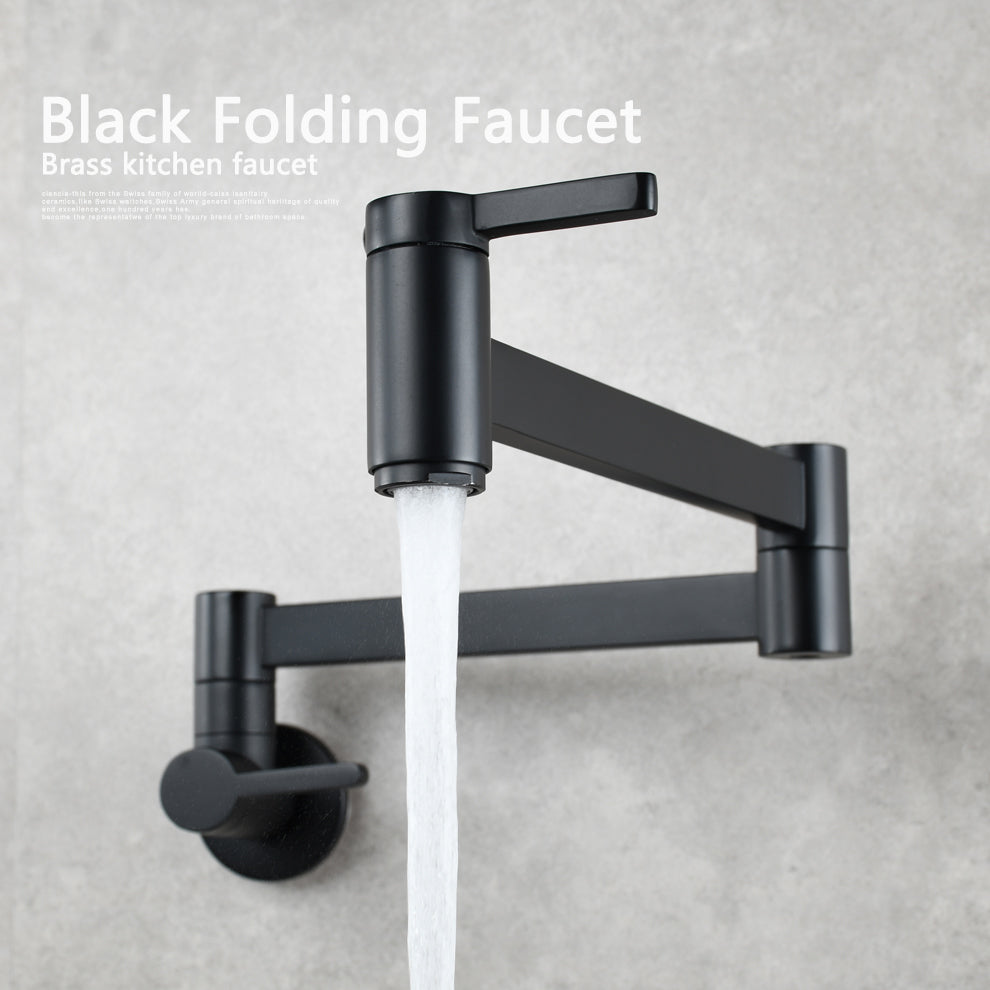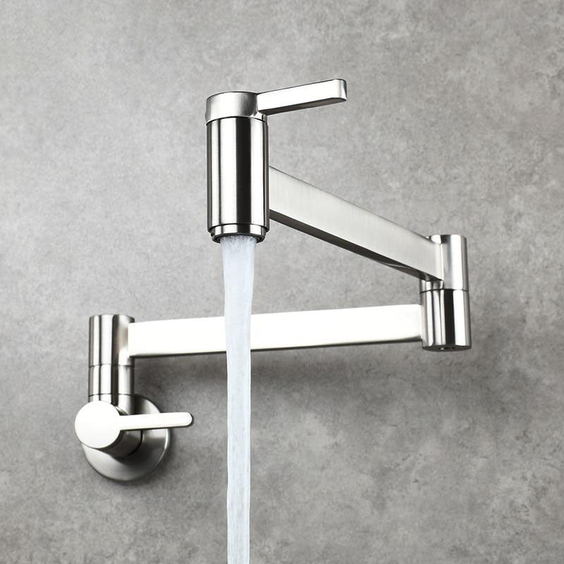 Brass Kitchen Faucet Wall Mount Pot Filler Faucet 360 Rotatable Folding Lengthened with Double Joint Swing Arms Cold Water Tap