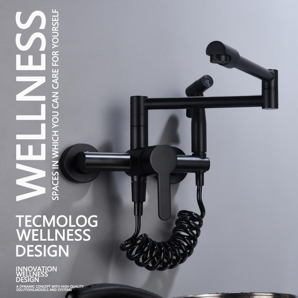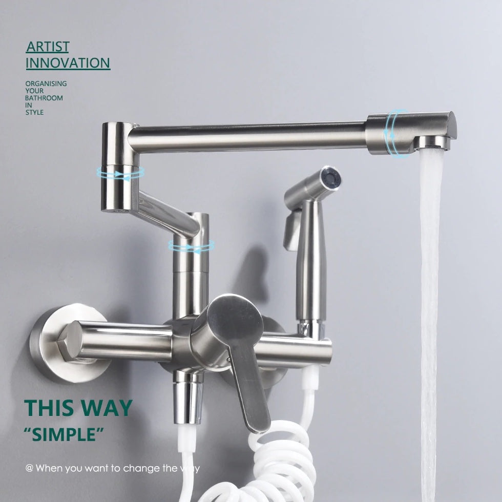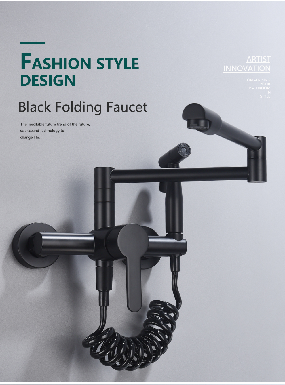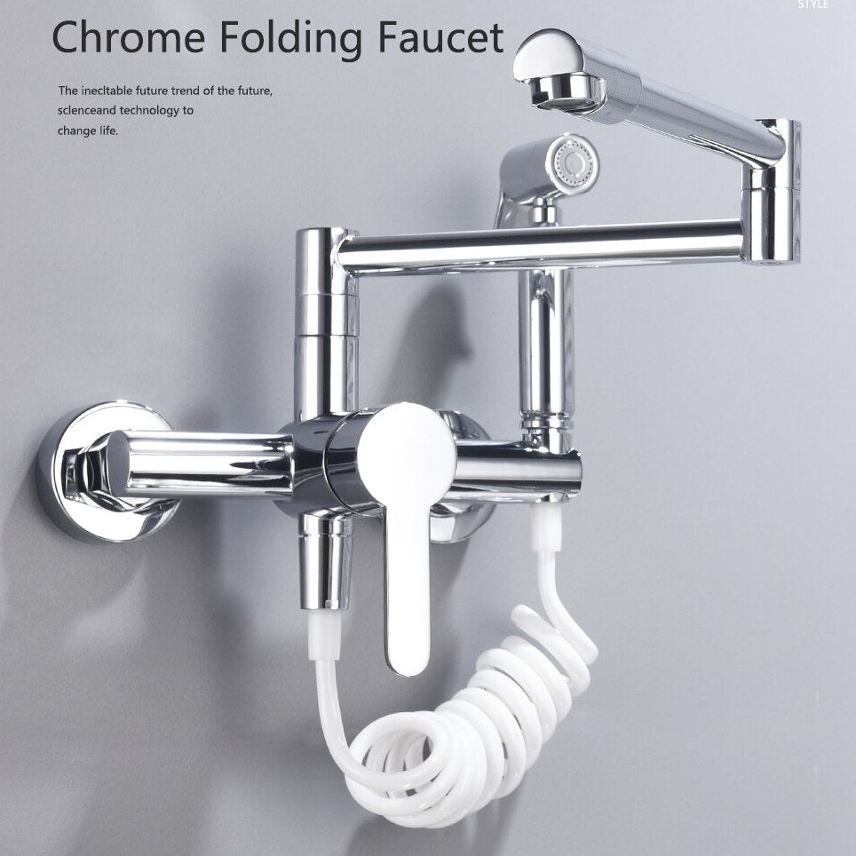 Brass Double Switch Folding Faucet Advanced Rotating Kitchen Faucet Wall Mounted Cold Water Tap