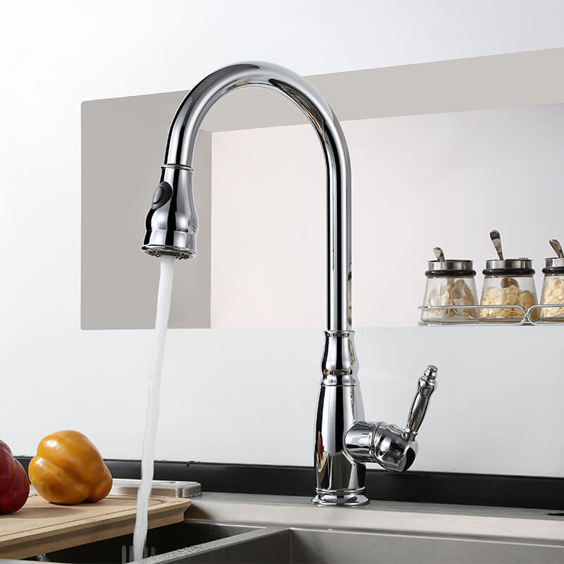 Brass Single Handle Pull Out Kitchen Faucet Multi-Function Sprayer Head 360 Degree Swivel Kitchen Sink Faucet