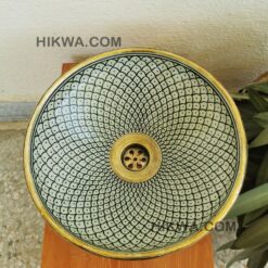 this traditional Moroccan sink SEA AND FISH SCALES design was handcrafted by professional workers, it represents the cultural diversity of Moroccan handcrafts and that is because of its design, material and the natural colors used at the surface of the sink, the height of this amazing piece of art is possibility of personal customization. by obtaining such objects you would be helping a dying craft to flourish again so that contact between the past and the present would never die not mentioning the happiness it would bring to poor workers on fields like this .