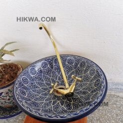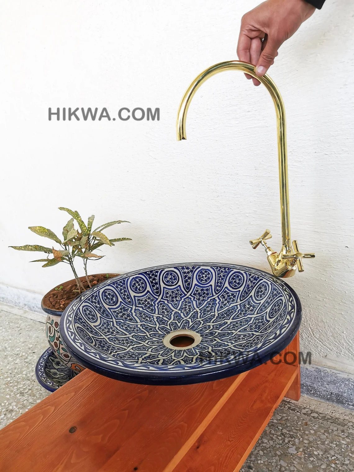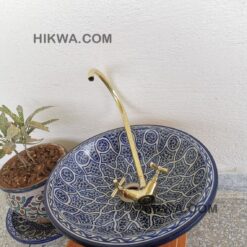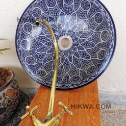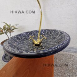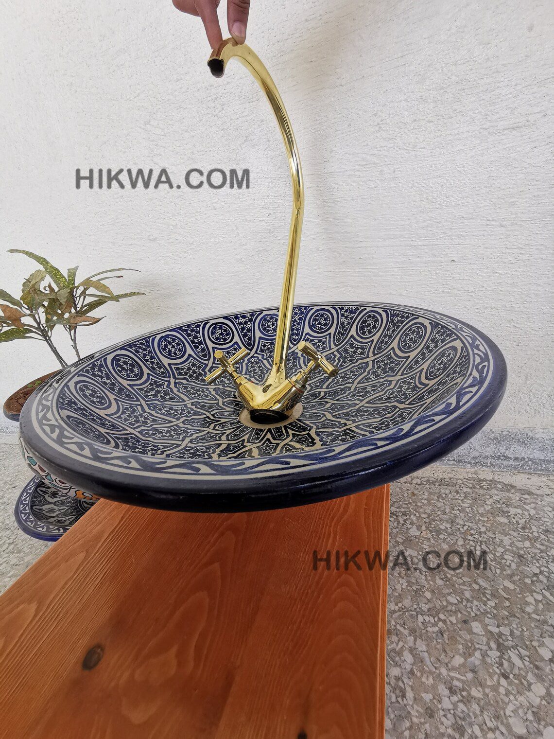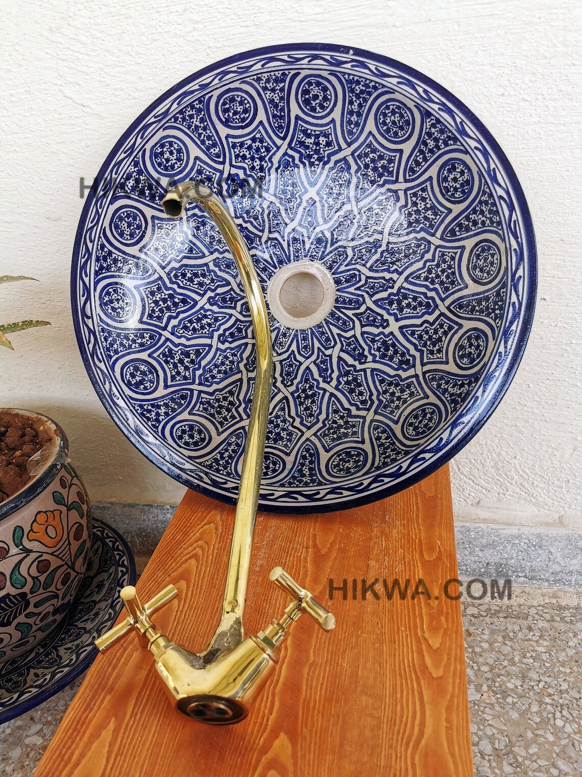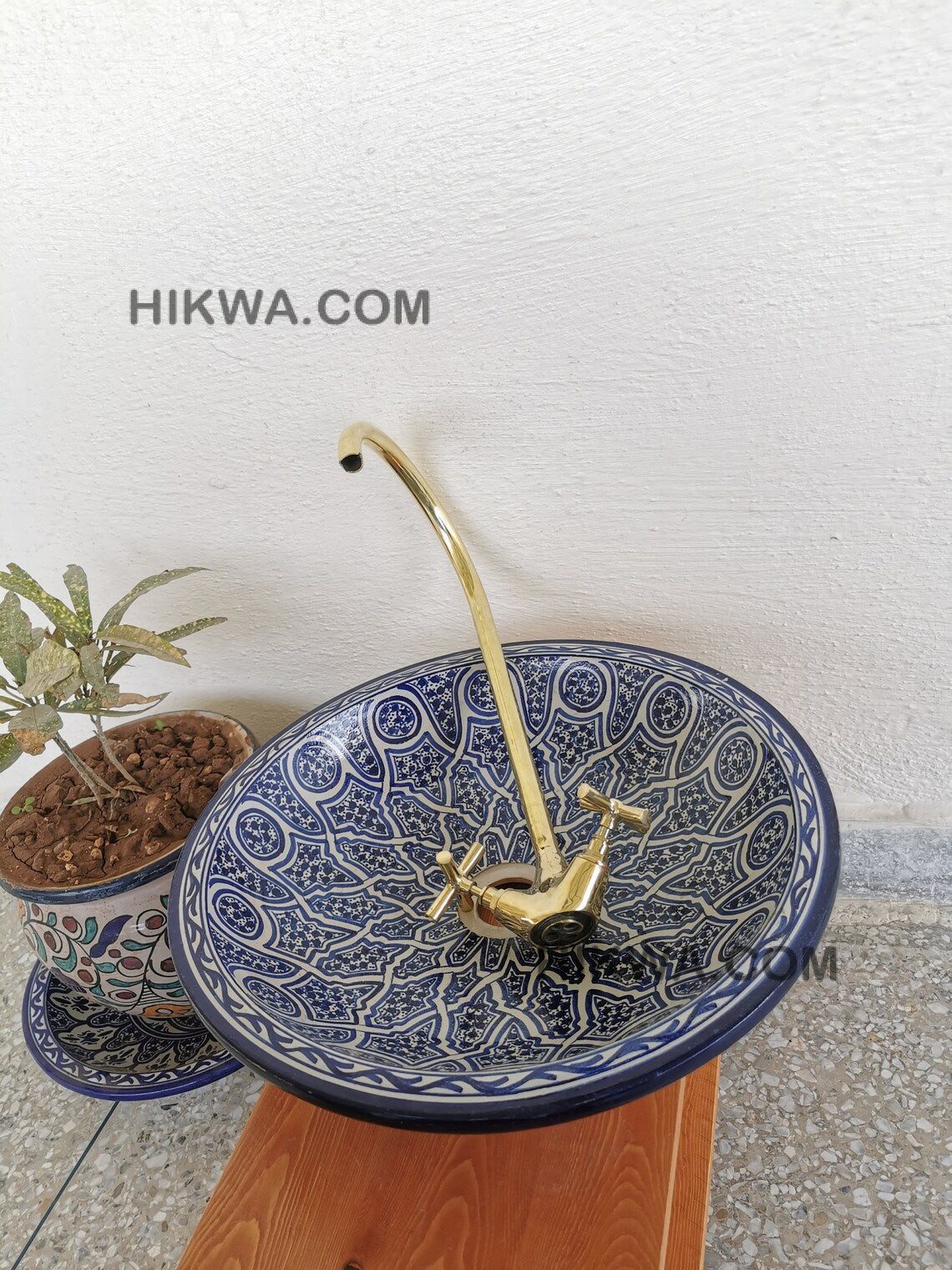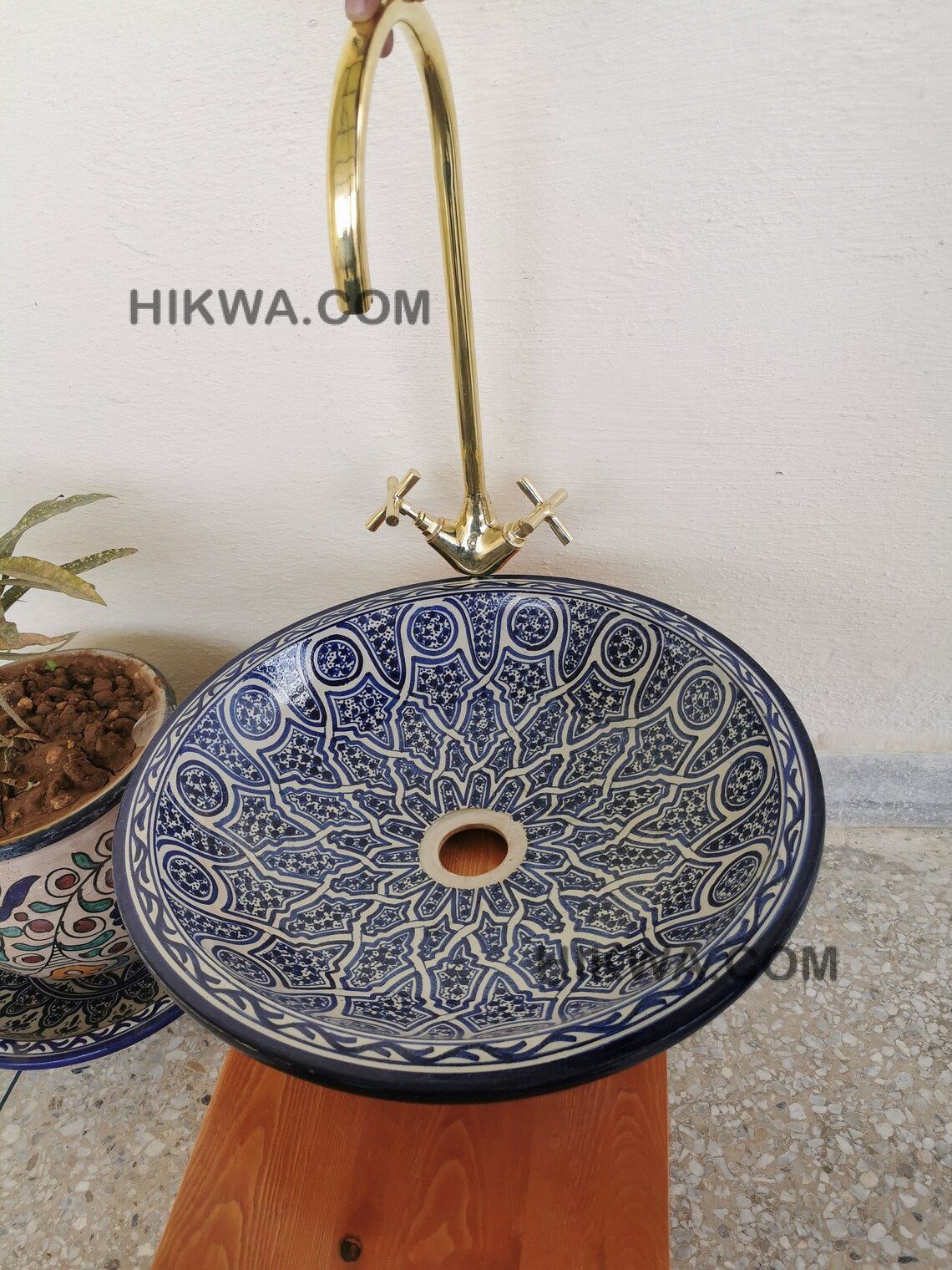 this amazing traditional Moroccan sink was handcrafted by professional workers, it represents the cultural diversity of Moroccan handcrafts and that is because of its design, material and the natural colors used at the surface of the sink, the height of this amazing piece of art is possibility of personal customization. by obtaining such objects you would be helping a dying craft to flourish again so that contact between the past and the present would never die not mentioning the happiness it would bring to poor workers on fields like this .