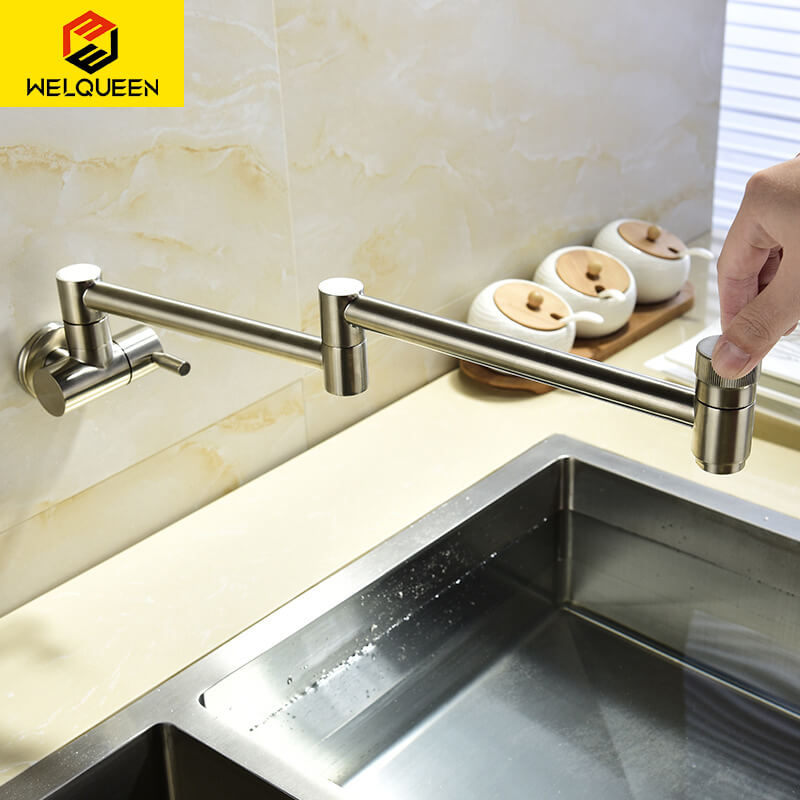 Cold Water Folding Kitchen Faucet | Wall Mounted Swivel Kitchen Taps | Double Handle Brass Kitchen Faucet 4 Colors