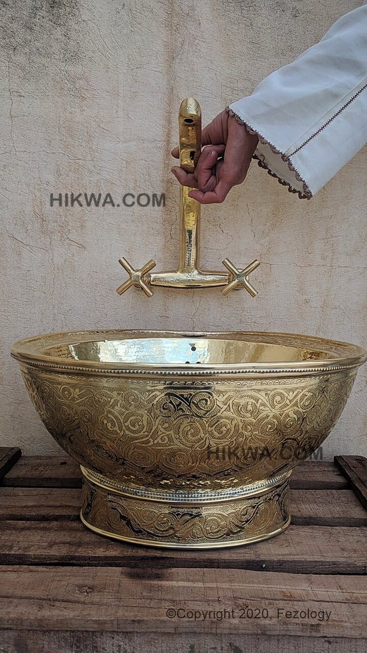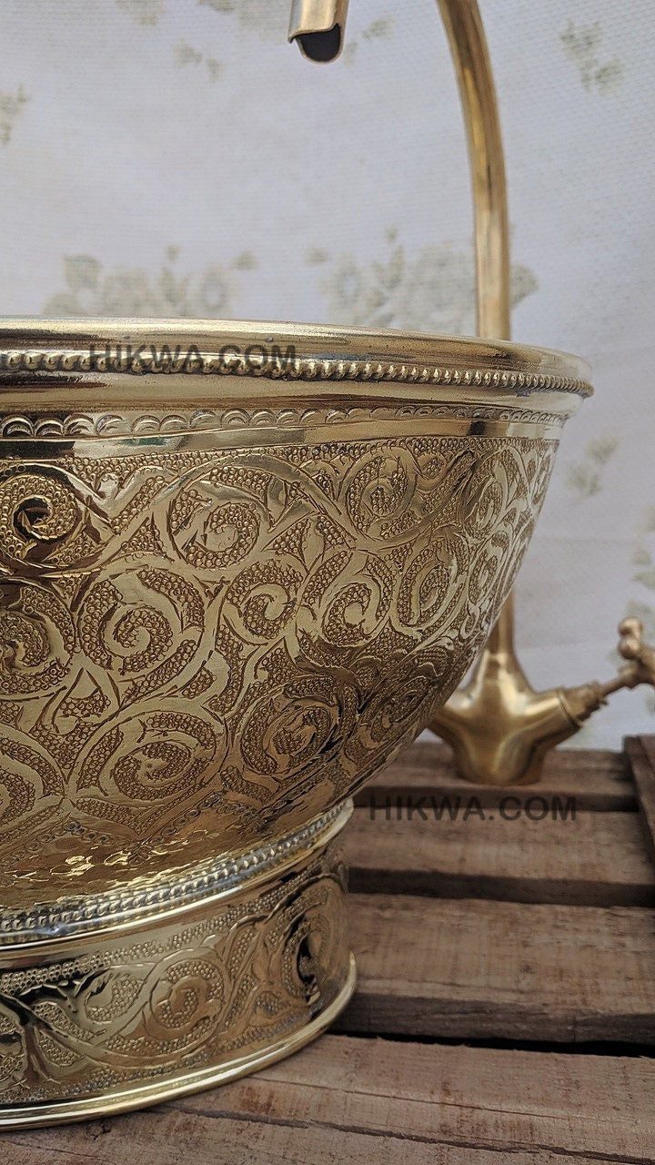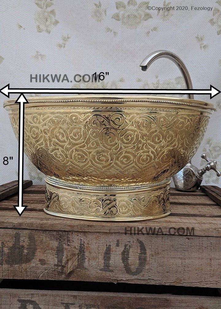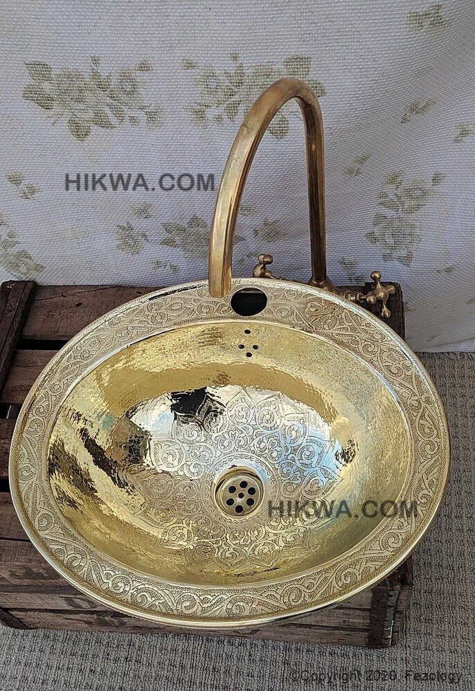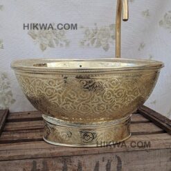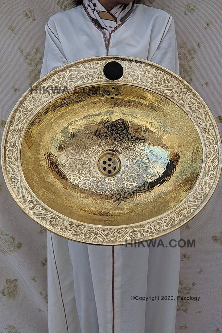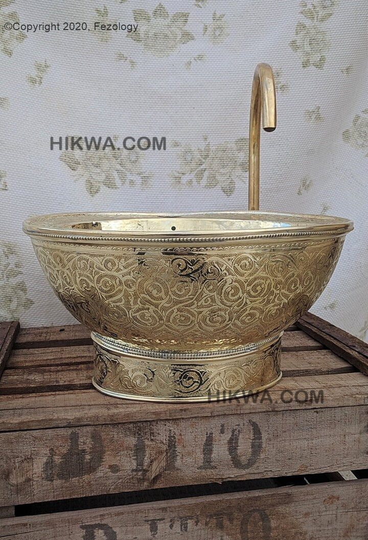 CUSTOMIZABLE Brass Sink – Brass Sink – Hand HammeredEngraved Brass Sink – Oval Gold Finish Engraved Sink – Farmhouse Vessel Sink – Bar Sink