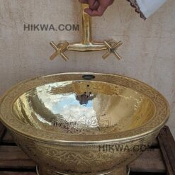 Hikwa’s Premium Brass Sink allows you to impress your guests and partake in delight each time you step inside your bathroom. This sink makes a statement on its own showcasing superior engineering. The sink is made of pure copper brass material and is gold finished hammered finish giving it a dramatic sturdy appearance.