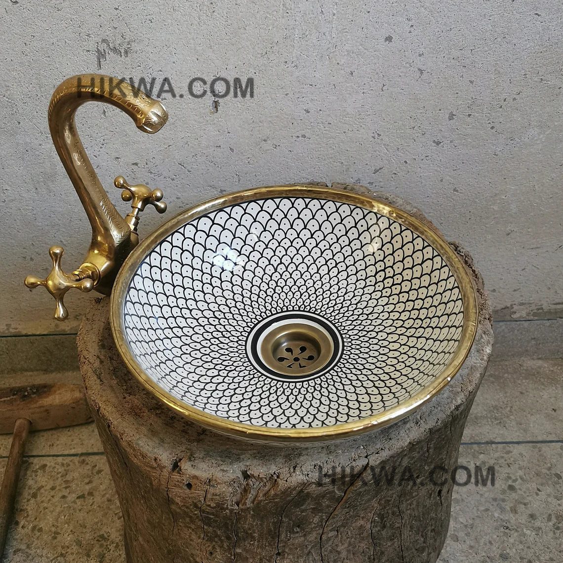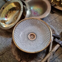 this traditional Moroccan sink SEA AND FISH SCALES design was handcrafted by professional workers, it represents the cultural diversity of Moroccan handcrafts and that is because of its design, material and the natural colors used at the surface of the sink, the height of this amazing piece of art is possibility of personal customization. by obtaining such objects you would be helping a dying craft to flourish again so that contact between the past and the present would never die not mentioning the happiness it would bring to poor workers on fields like this .