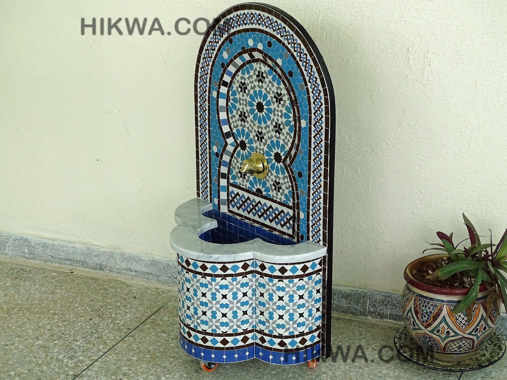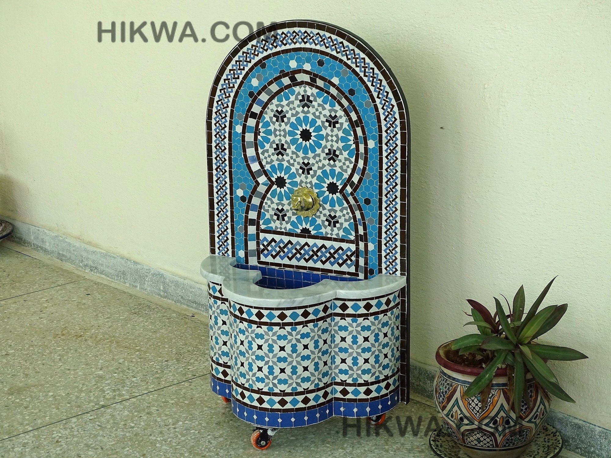 this amazing traditional Fountain was handcrafted by A professional worker, it represents the cultural diversity of Moroccan handcrafts and that is because of its design, material and the colors used at the surface of the fountain, by obtaining such objects you would be helping a dying craft to flourish again so that contact between the past and the present would never die not mentioning the happiness it would bring to poor workers on fields like this .