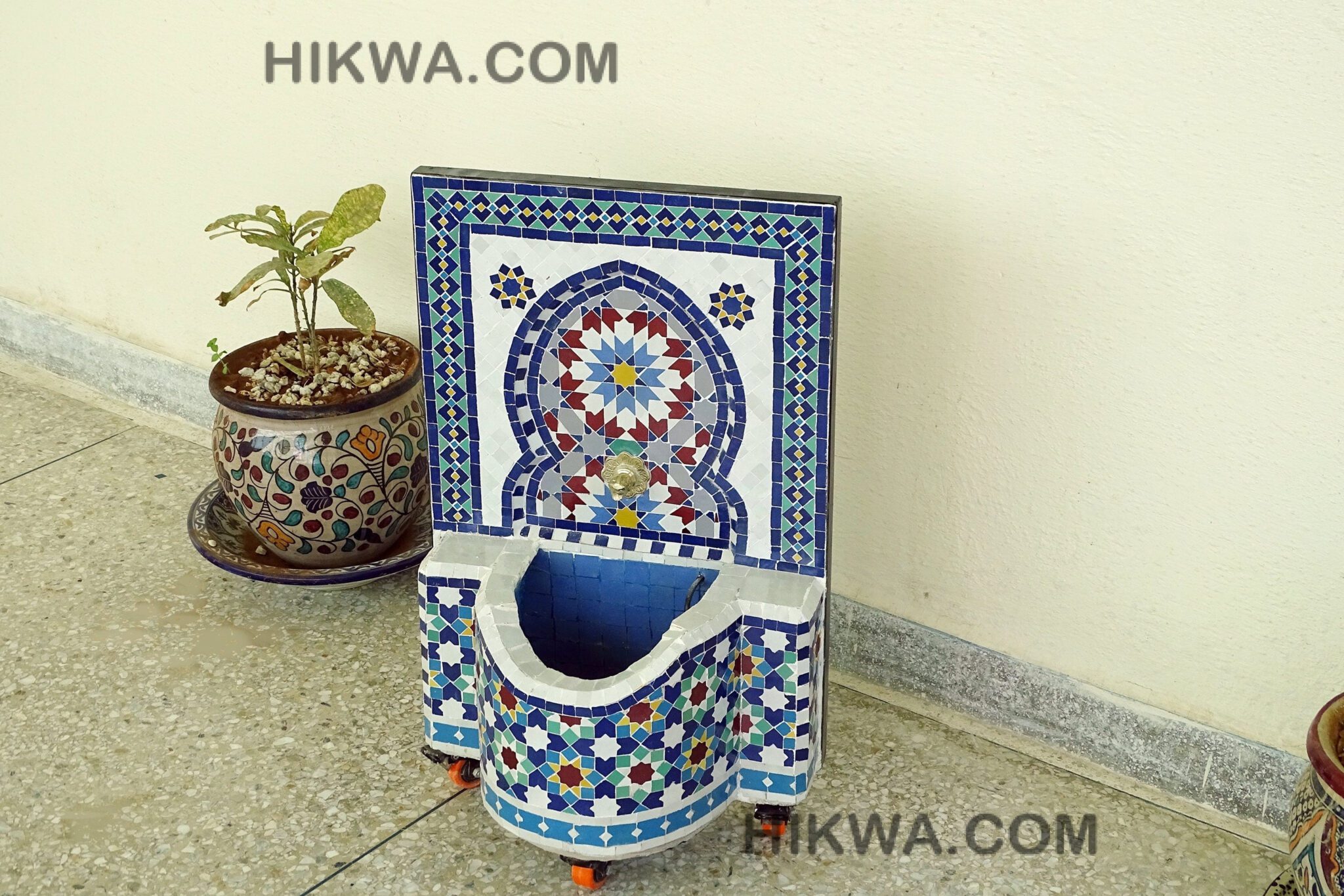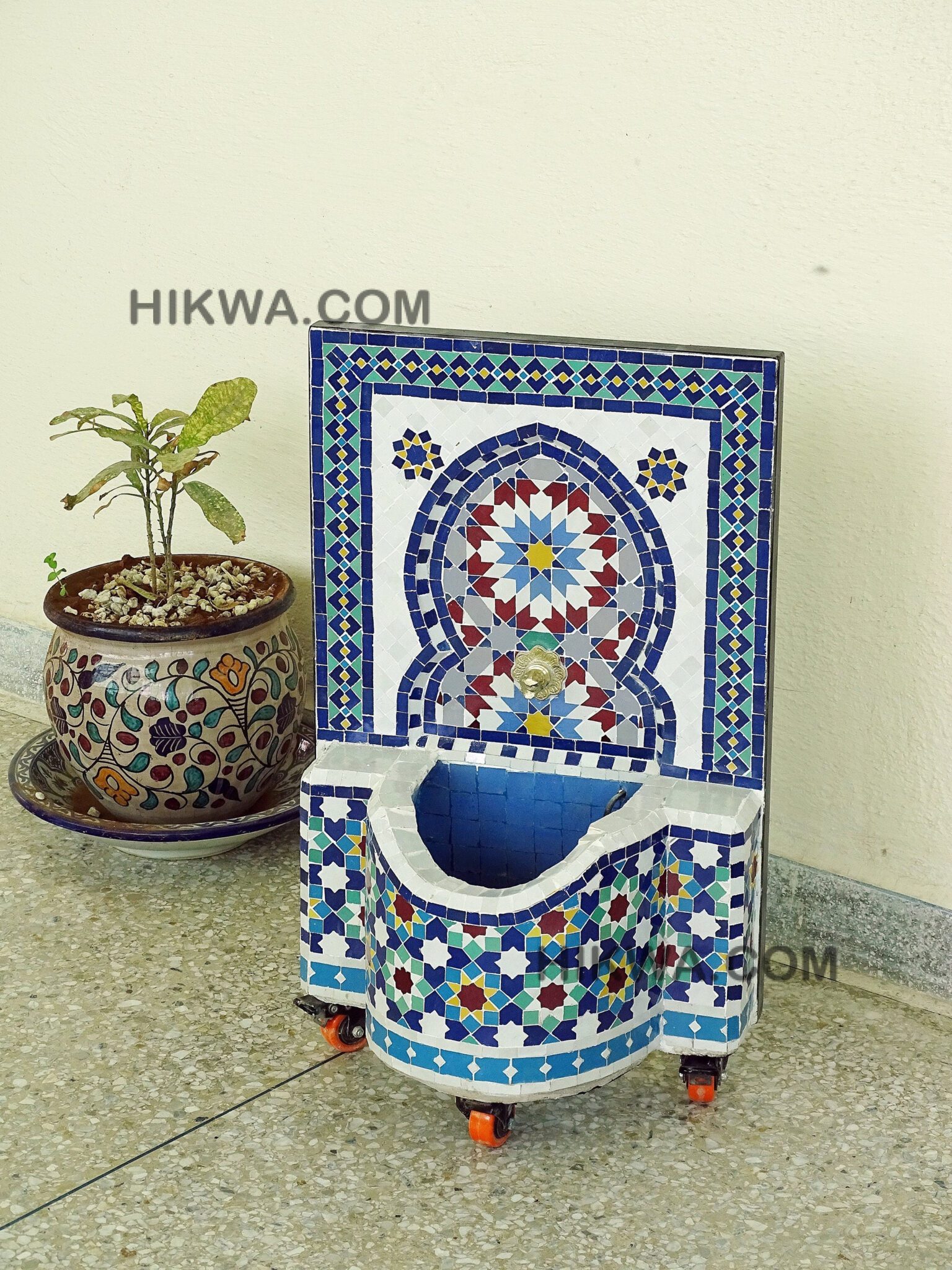 this amazing traditional Fountain was handcrafted by A professional worker, it represents the cultural diversity of Moroccan handcrafts and that is because of its design, material and the colors used at the surface of the fountain, by obtaining such objects you would be helping a dying craft to flourish again so that contact between the past and the present would never die not mentioning the happiness it would bring to poor workers on fields like this .