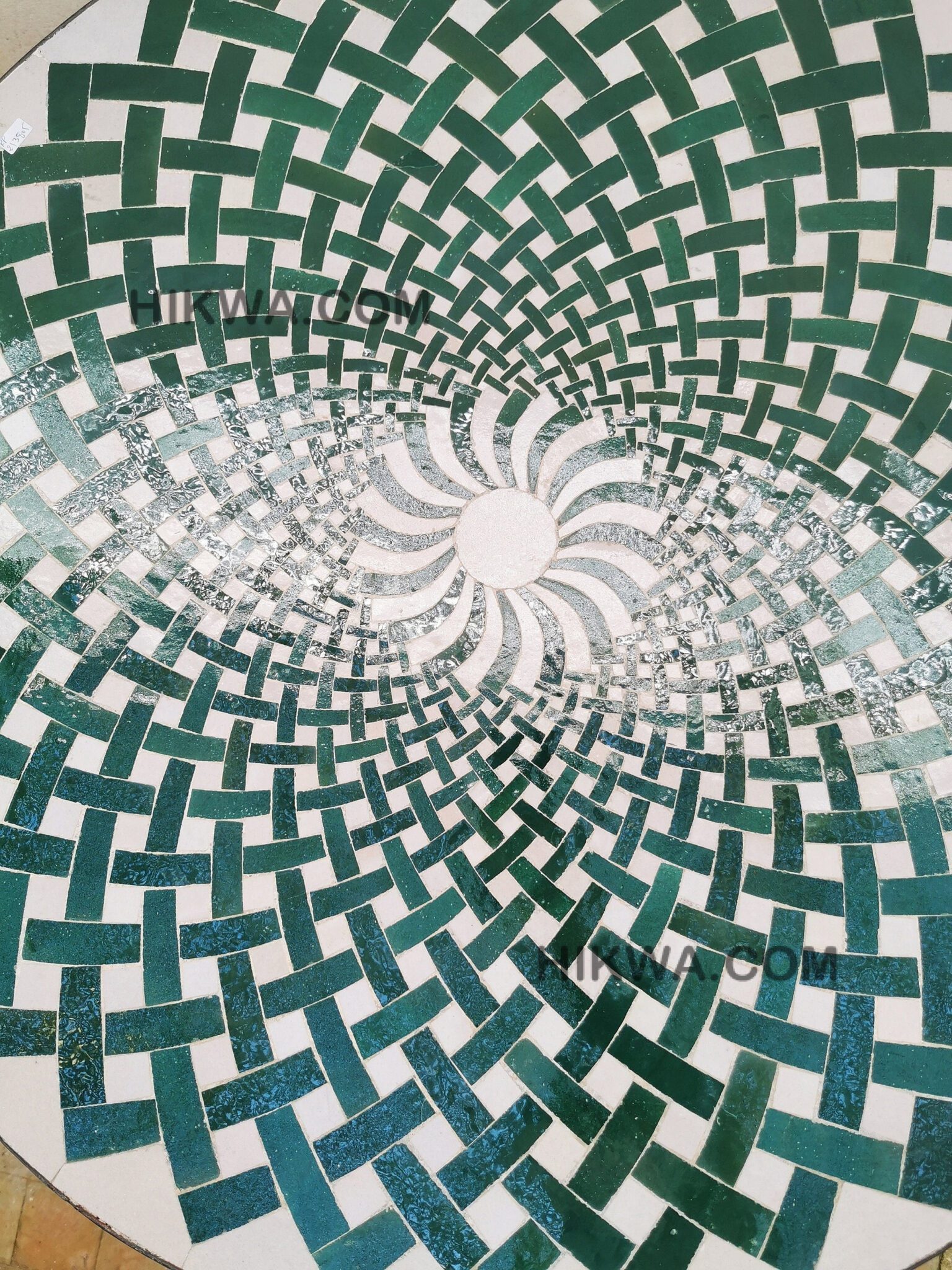 Moving to Zellige, when it bakes for the first time, and the second time with the paint it is given to Nekkach that decides what kind of pattern will be used on it depends on where Zellige will be put. He spreads them flipped in a geometrical pattern based on ancient references such as Karaouiyn, and the king’s palaces…