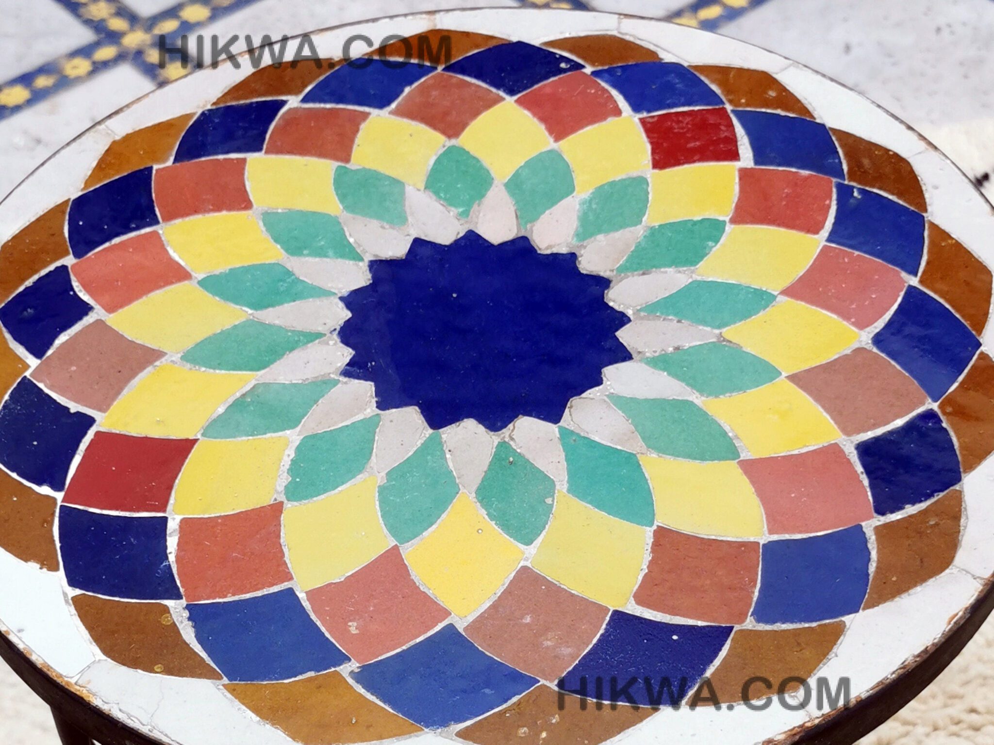 Moving to Zellige, when it bakes for the first time, and the second time with the paint it is given to Nekkach that decides what kind of pattern will be used on it depends on where Zellige will be put. He spreads them flipped in a geometrical pattern based on ancient references such as Karaouiyn, and the king’s palaces…