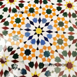 Moving to Zellige, when it bakes for the first time, and the second time with the paint it is given to Nekkach that decides what kind of pattern will be used on it depends on where Zellige will be put. He spreads them flipped in a geometrical pattern based on ancient references such as Karaouiyn, and the king’s palaces…