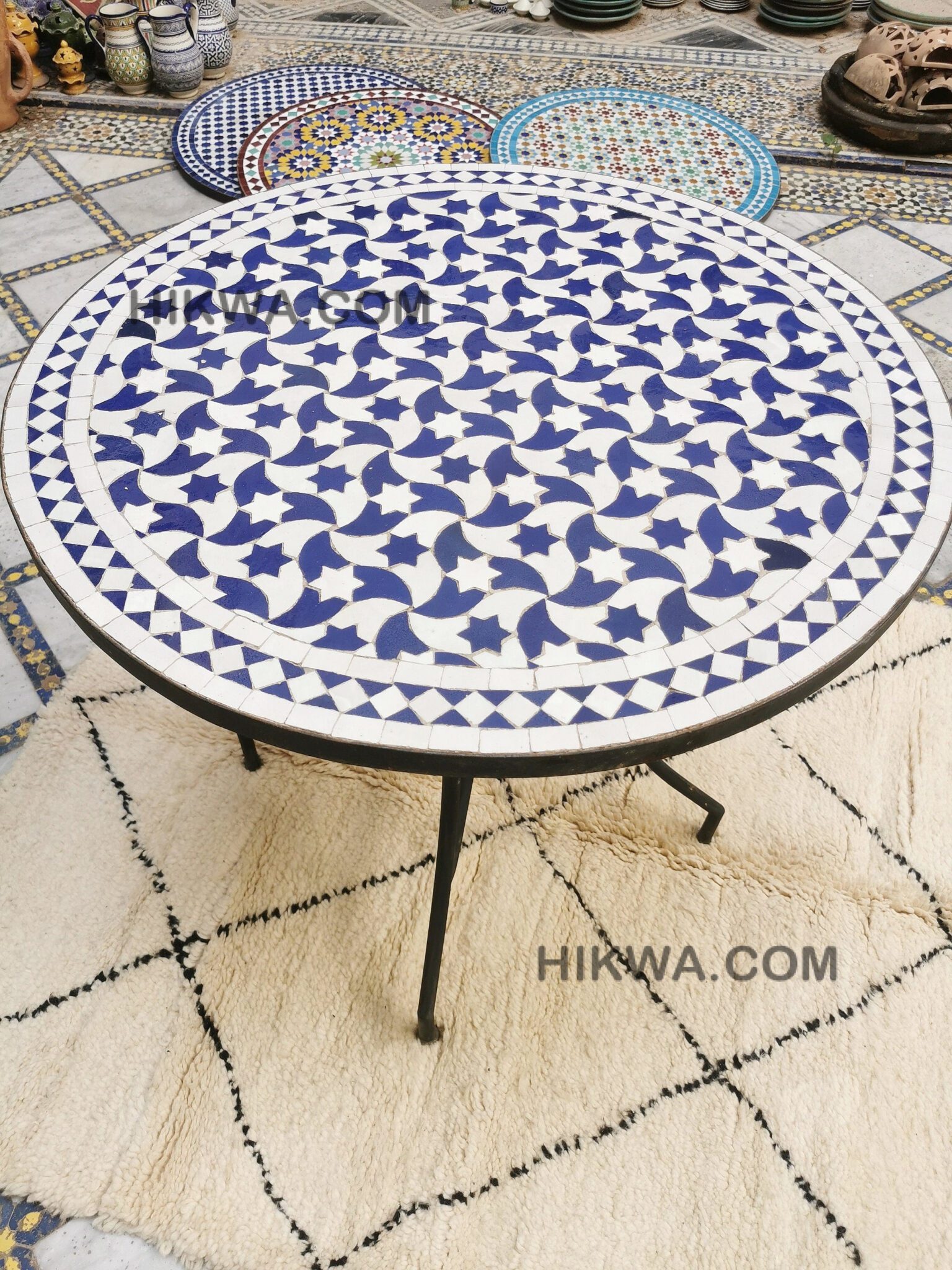 Moving to Zellige, when it bakes for the first time, and the second time with the paint it is given to Nekkach that decides what kind of pattern will be used on it depends on where Zellige will be put. He spreads them flipped in a geometrical pattern based on ancient references such as Karaouiyn, and the king’s palaces…