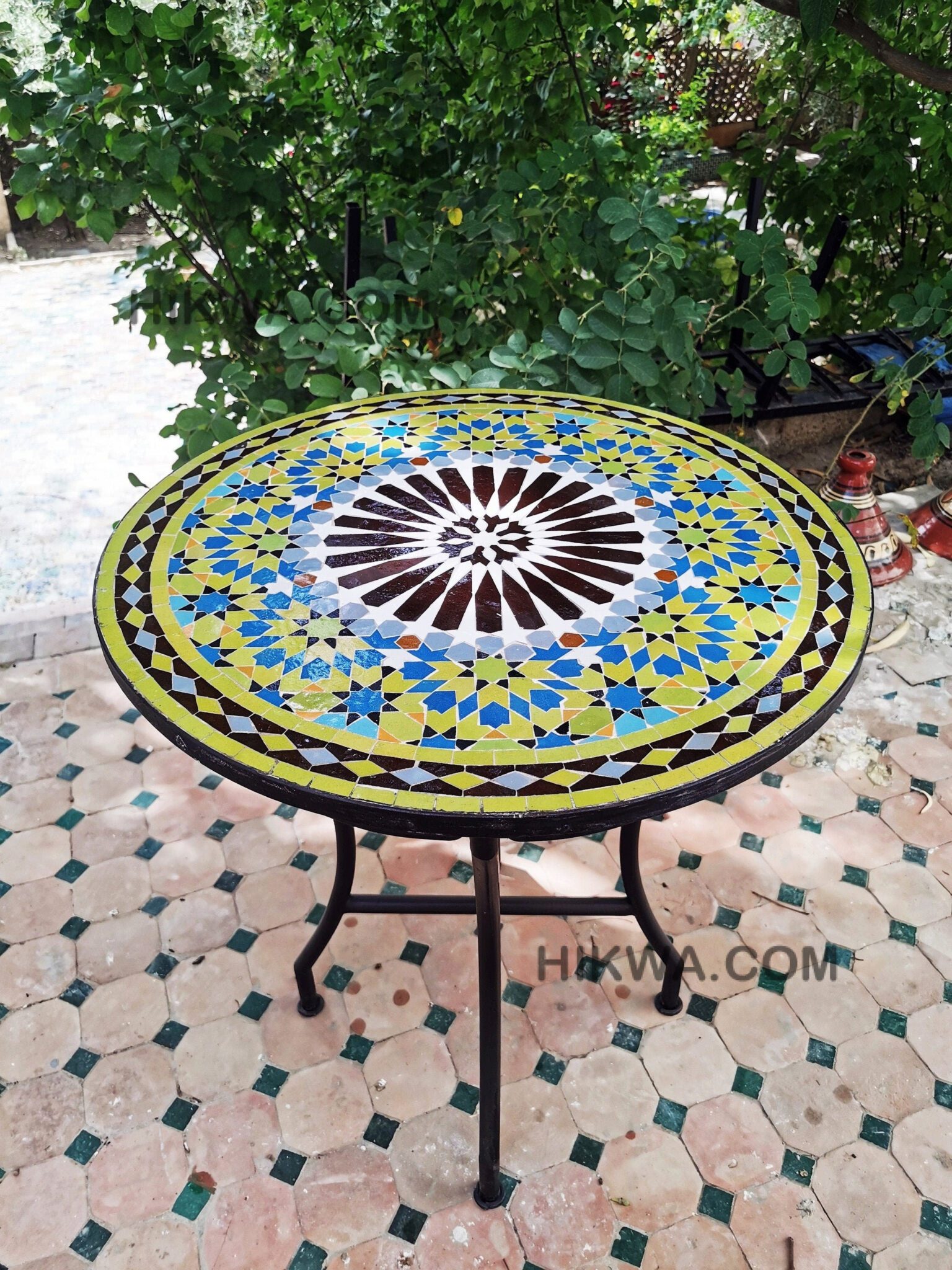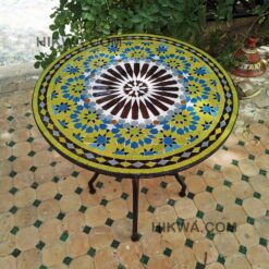 this amazing traditional Moroccan table was handcrafted by A professional worker, it represents the cultural diversity of Moroccan handcrafts and that is because of its design, material and the colors used at the surface of the table. by obtaining such objects you would be helping a dying craft to flourish again so that contact between the past and the present would never die not mentioning the happiness it would bring to poor workers on fields like this .