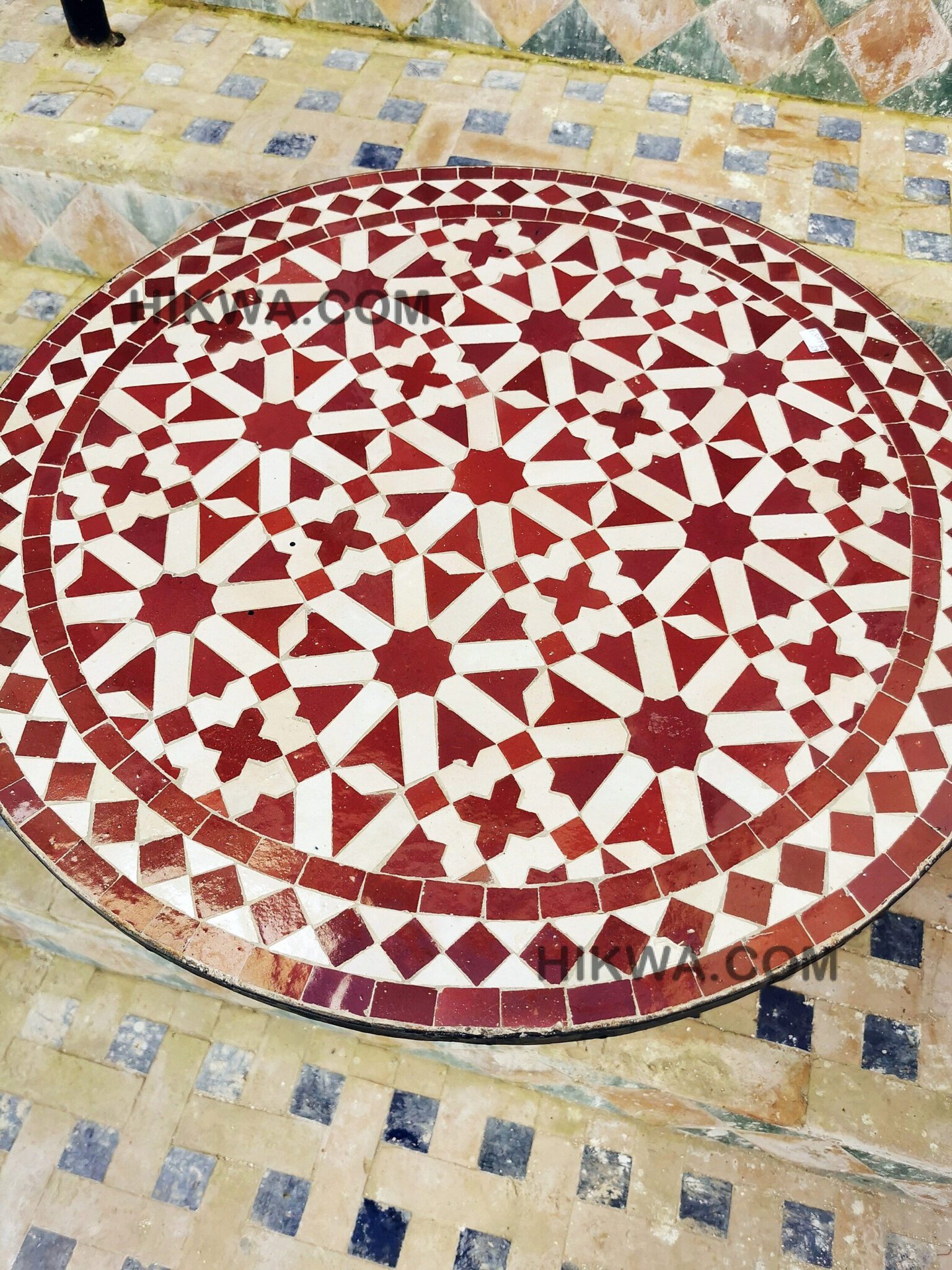 Moving to Zellige, when it bakes for the first time, and the second time with the paint it is given to Nekkach that decides what kind of pattern will be used on it depends on where Zellige will be put. He spreads them flipped in a geometrical pattern based on ancient references such as Karaouiyn, and the king’s palaces…