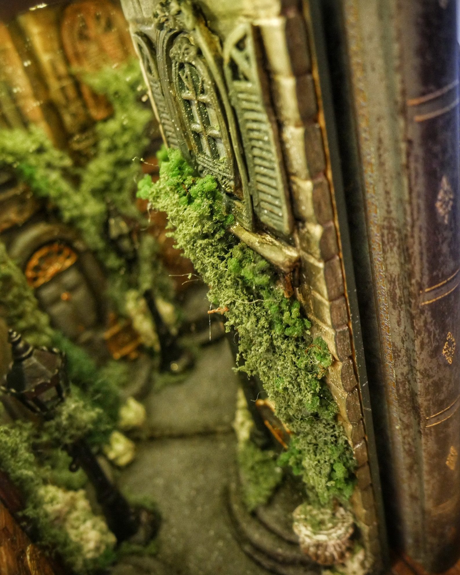 Dark night artist alley book nook with a mirror,old tenement houses booknook