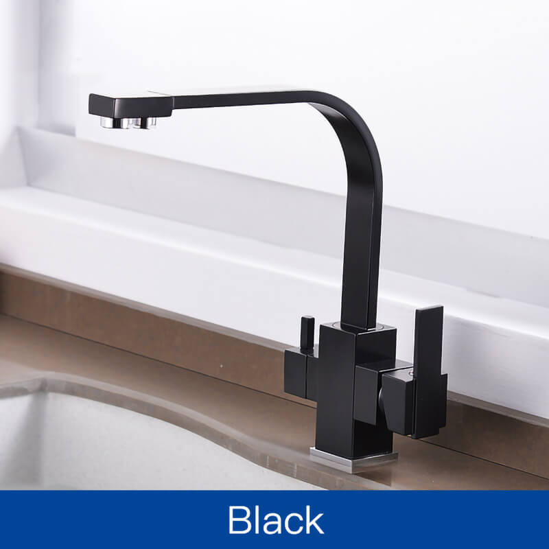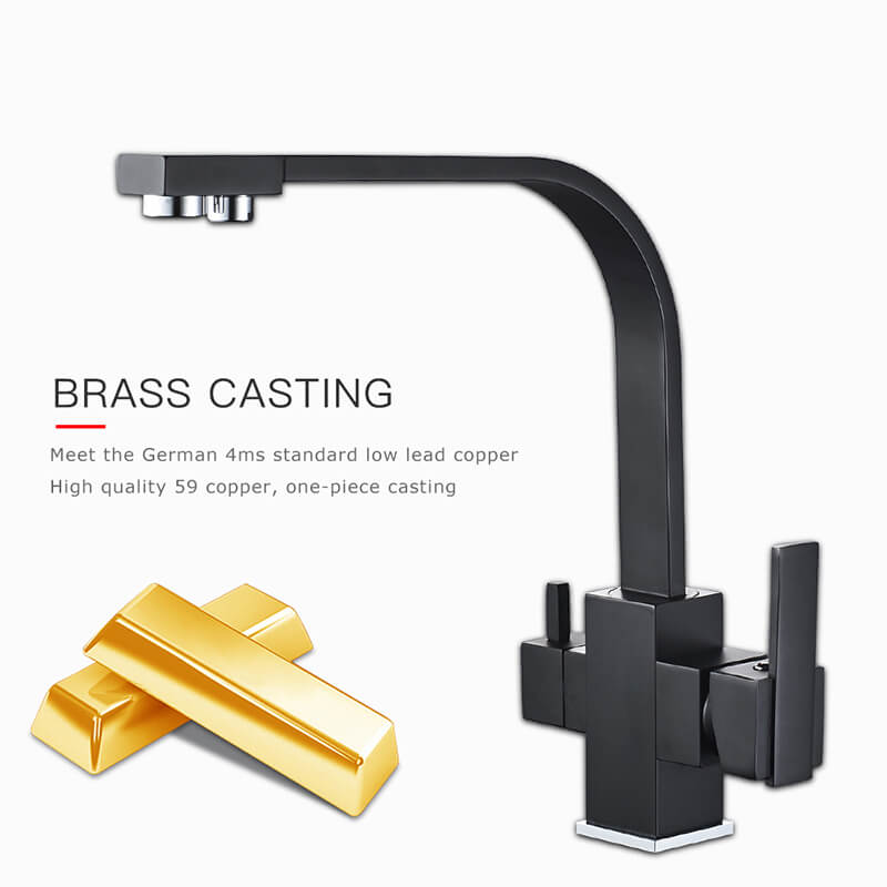 Dual Handle Kitchen Faucet With Dual Spray 360 Degree Rotated Brass Kitchen Faucet Drinking Water Purifier Filter System