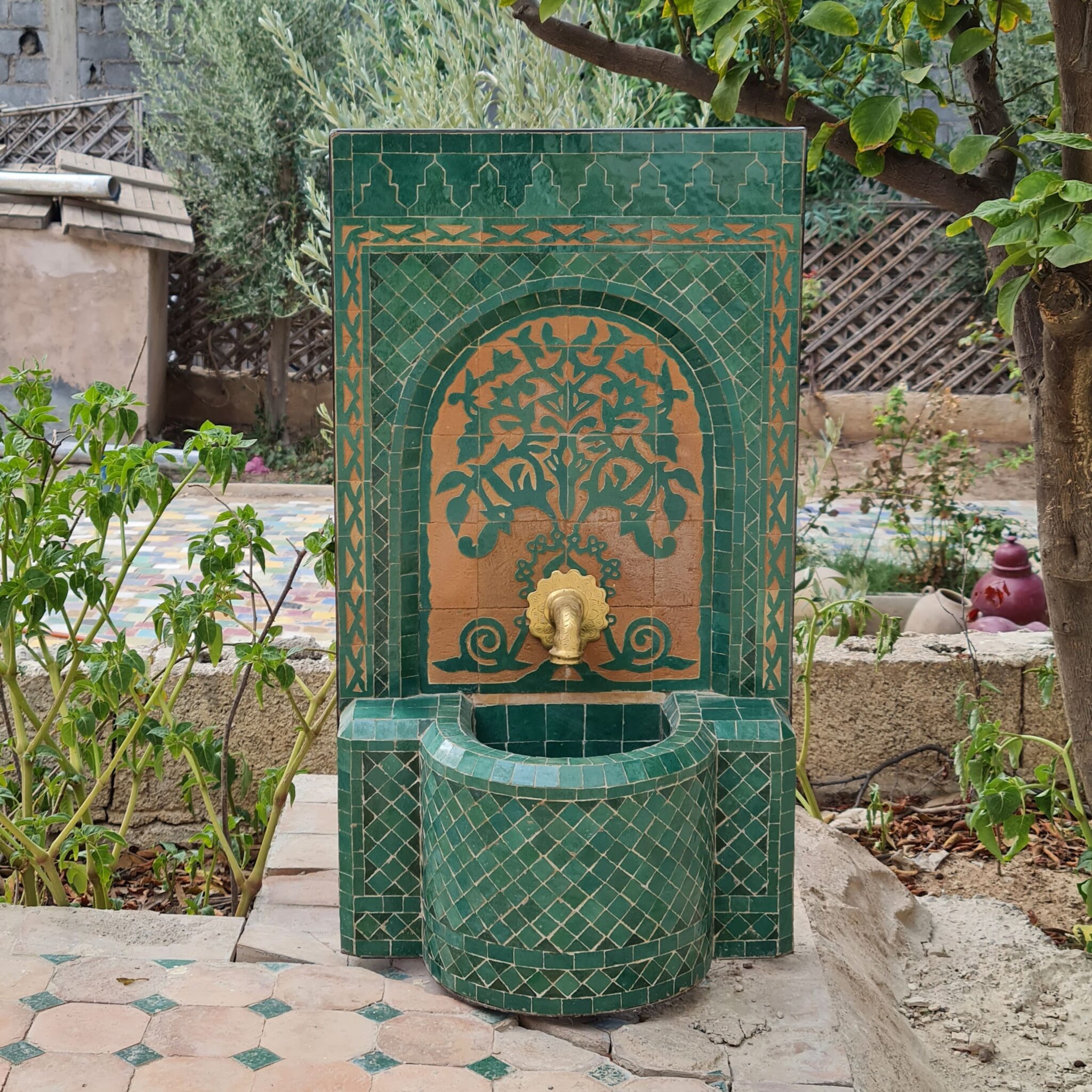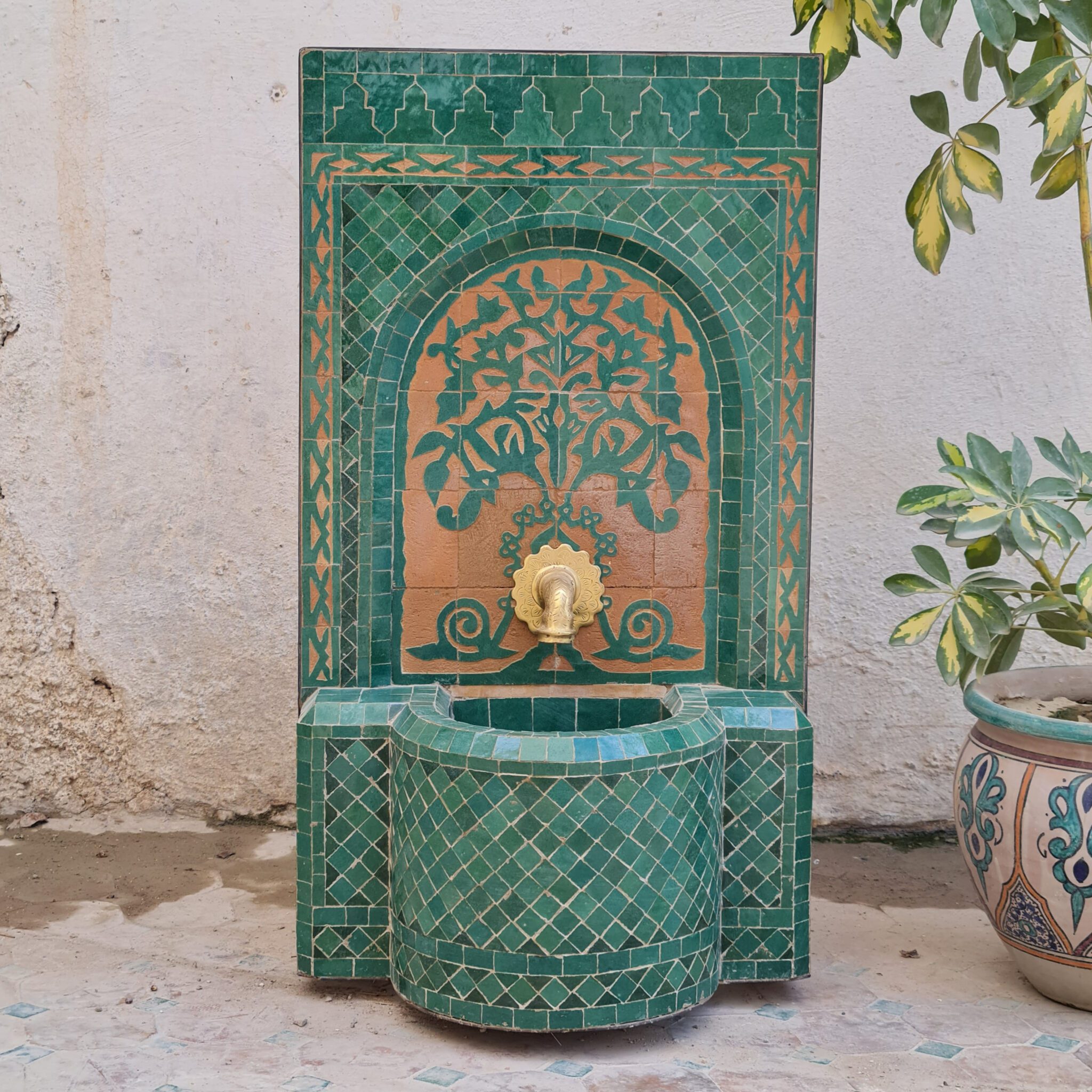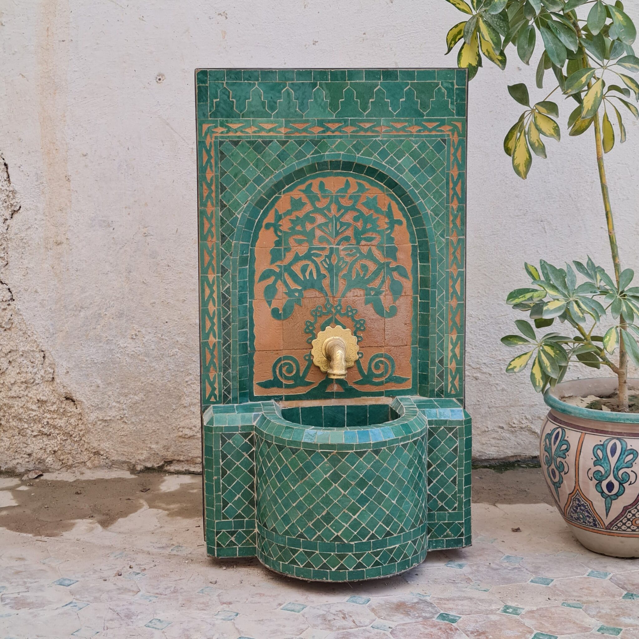 this amazing traditional Fountain was handcrafted by A professional worker, it represents the cultural diversity of Moroccan handcrafts and that is because of its design, material and the colors used at the surface of the table, the height of this amazing piece of art is 55 cm with a width of 40 cm and a possibility of personal customization. by obtaining such objects you would be helping a dying craft to flourish again so that contact between the past and the present would never die not mentioning the happiness it would bring to poor workers on fields like this .