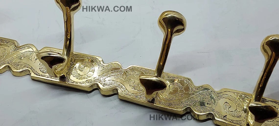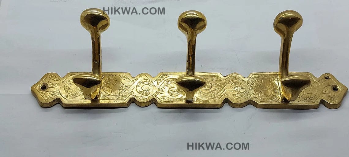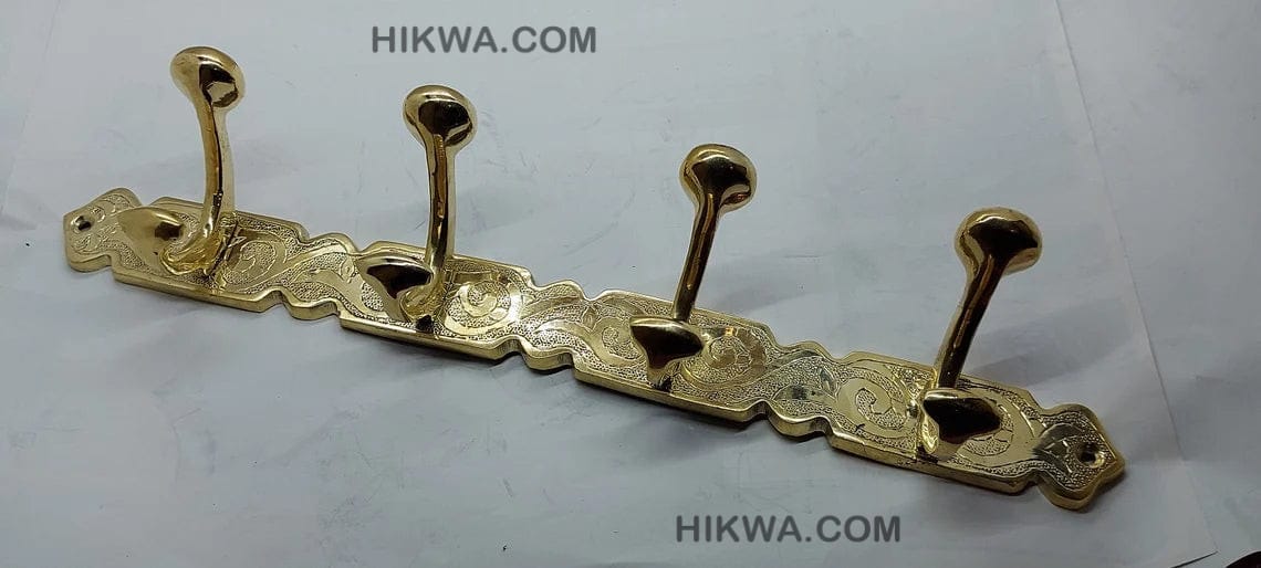 Engraved Brass Solid Coat Hanger With Three Or Four Hooks – Clothes Hooks Wall Mount – 100% Moroccan
