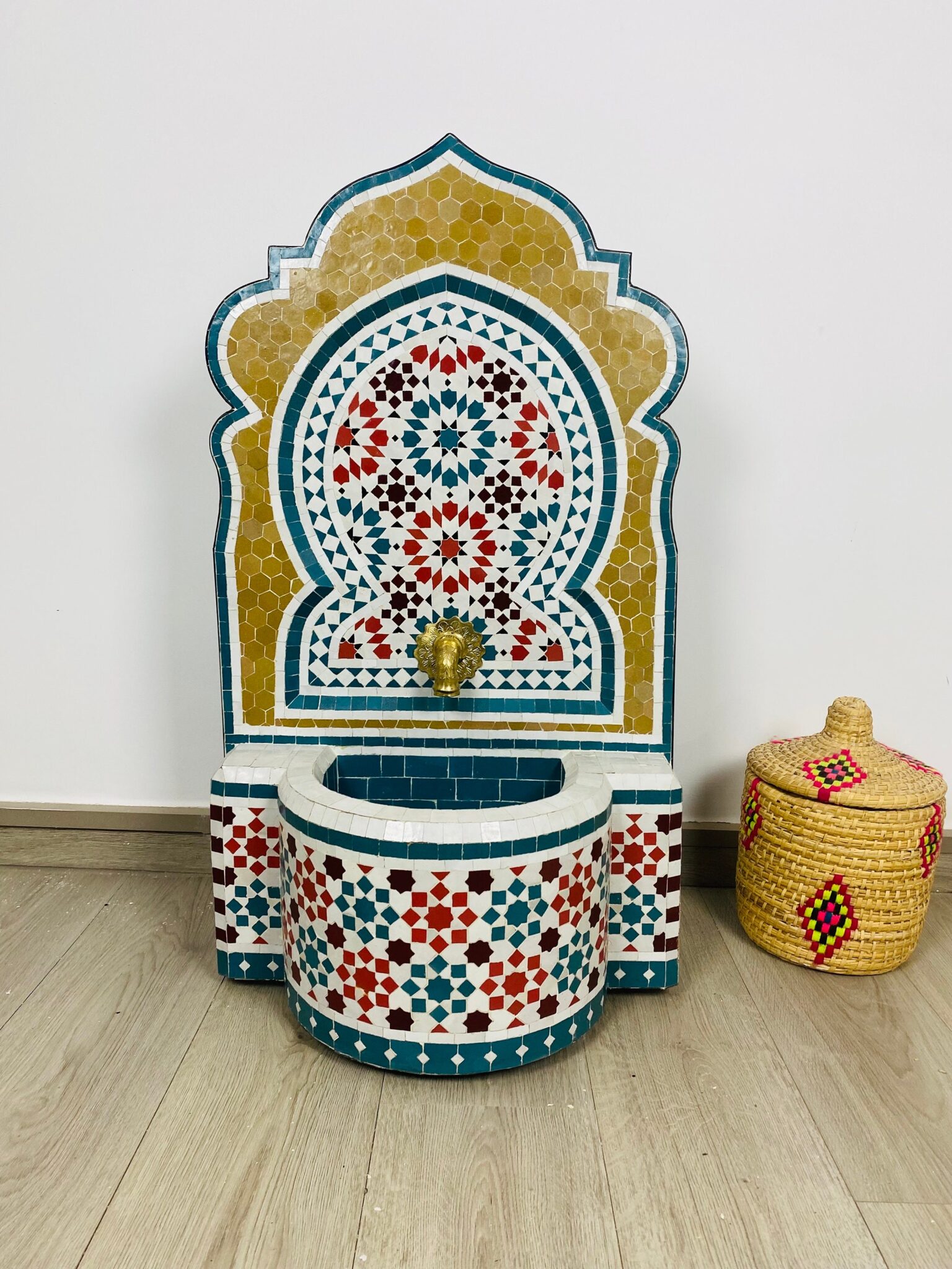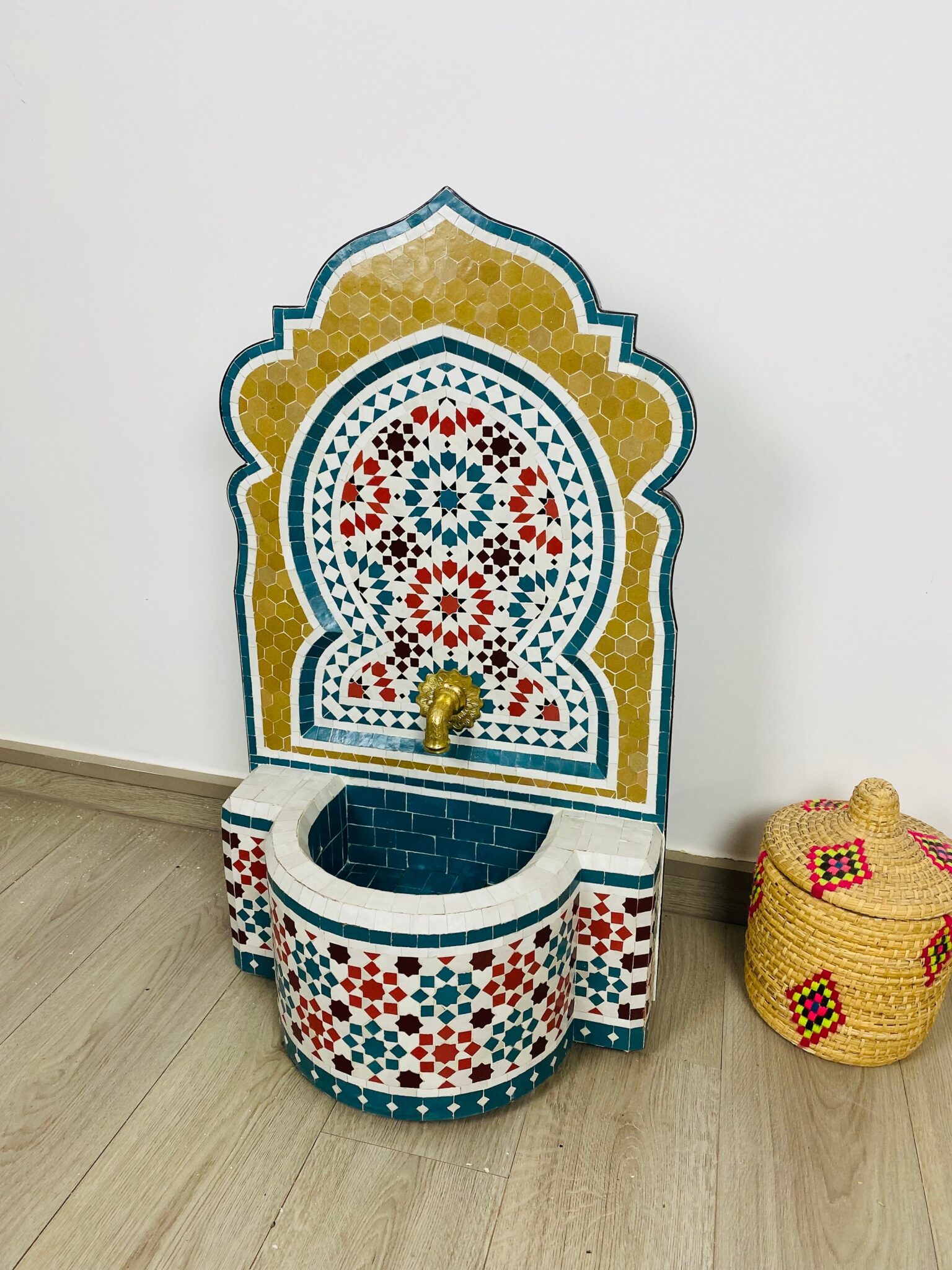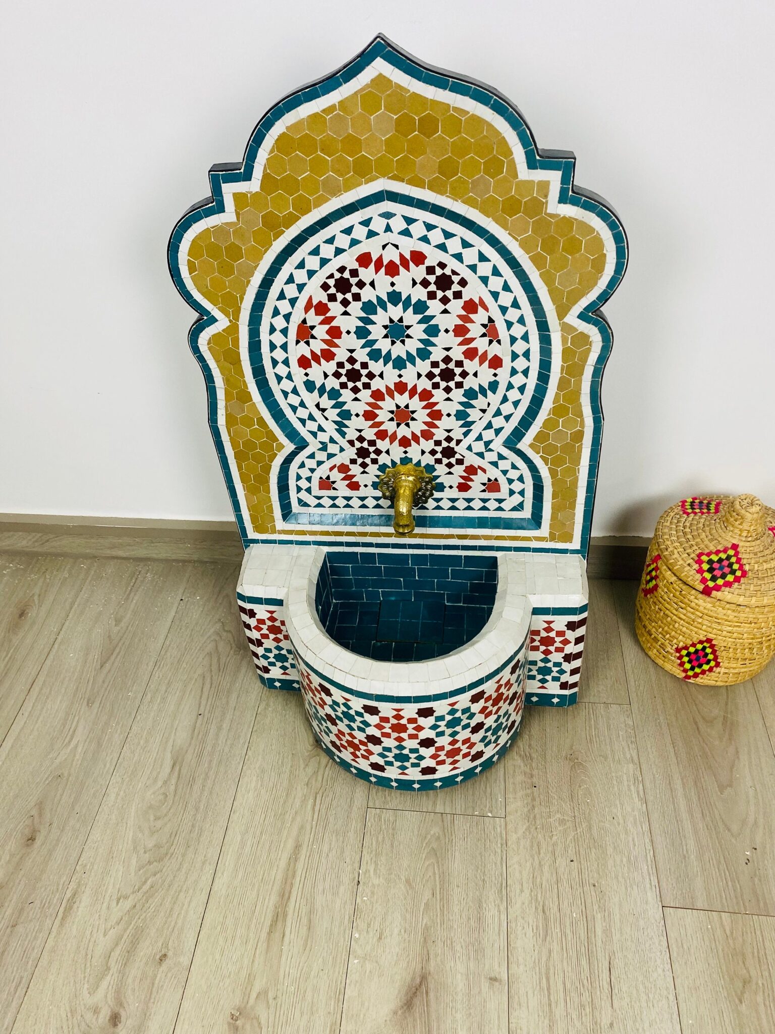 Fountain colorful mosaic tiles for Outdoor and Indoor -Mid Century Flair Fountain water inside – Garden Mosaic Fountain solid