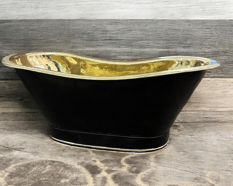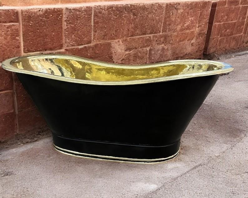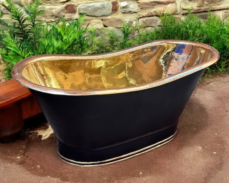 Freestanding Bathtub With Black Exterior, Brass Straight Base Bathtub, Outdoor Soaking Tub, Stand Alone Bathtubs, brass bathtub