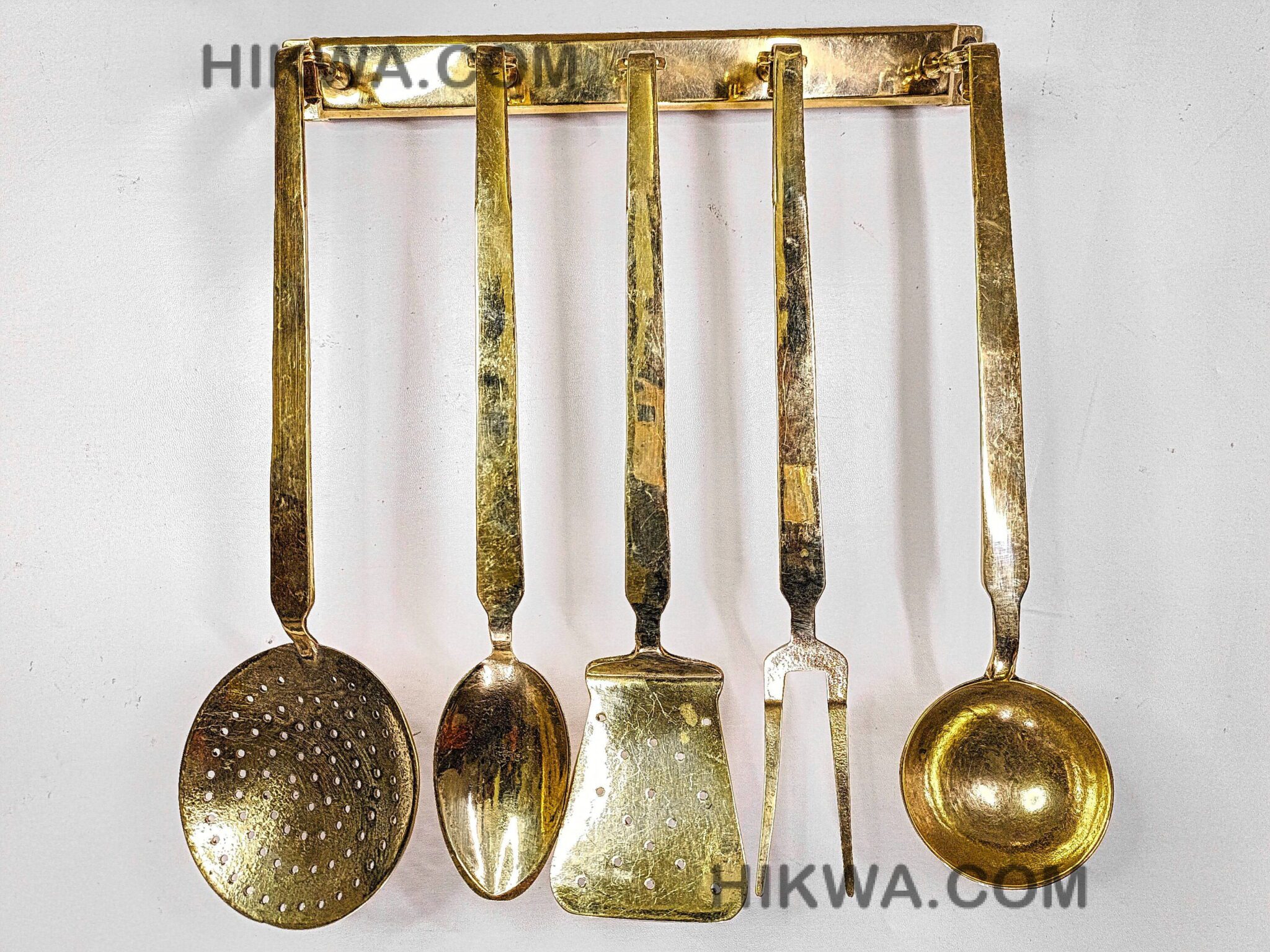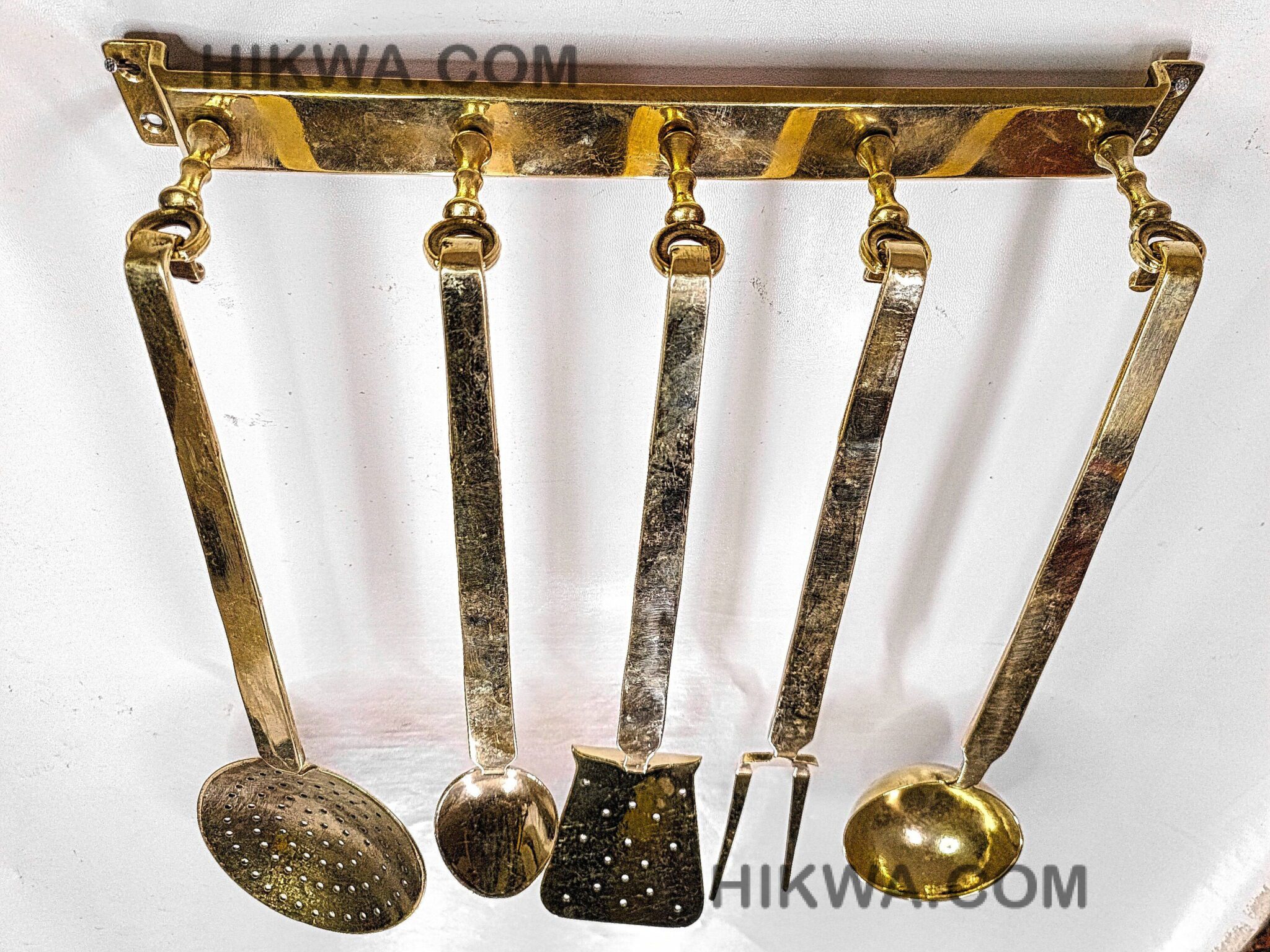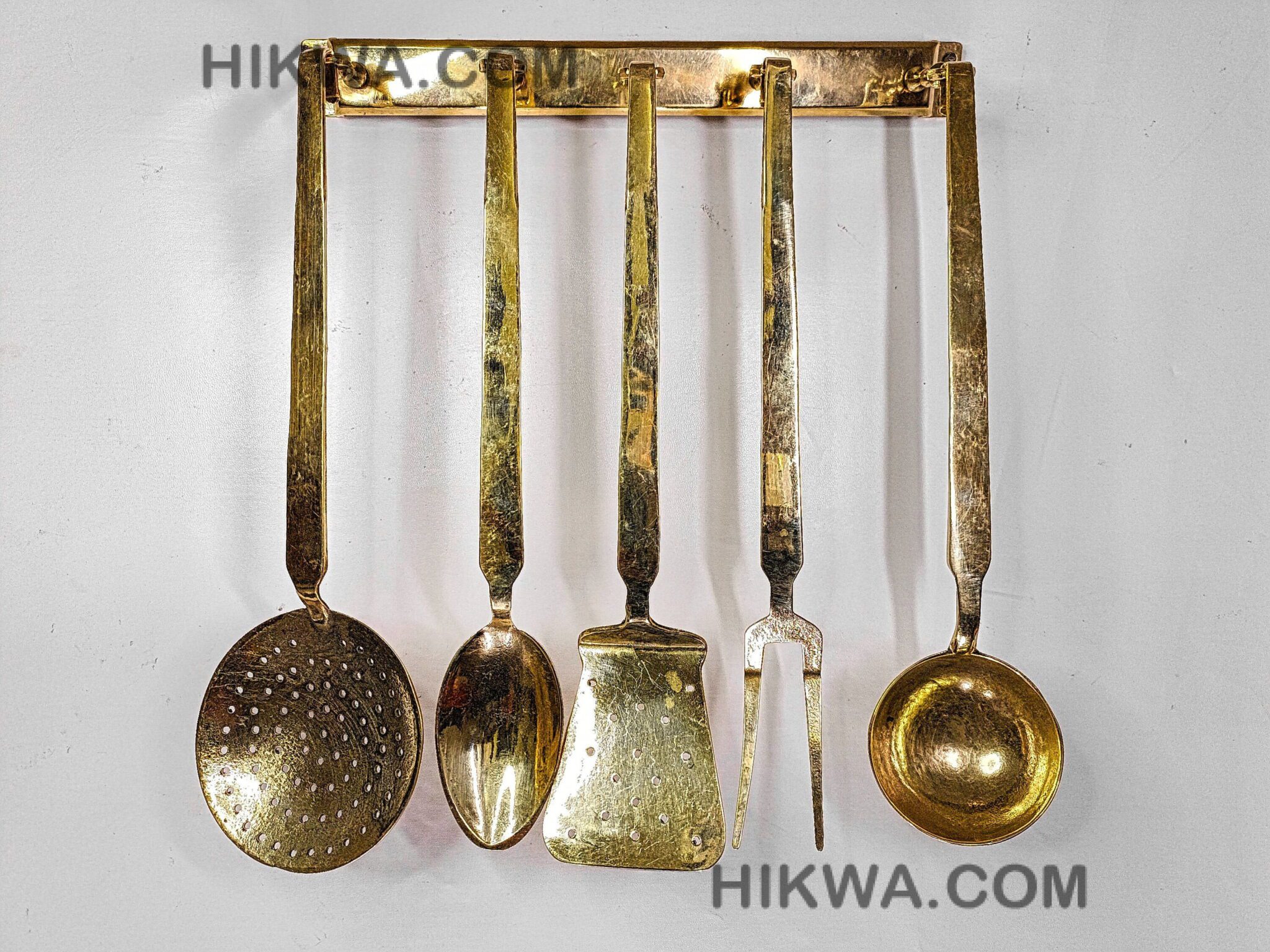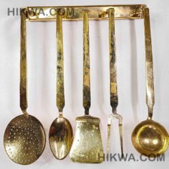 The ladles come in five different shapes, allowing you to choose the perfect sizes for your cooking needs. this set has you covered. Designed to display ladles elegantly, the matching brass rack makes them easy to reach while adding a touch of sophistication to your kitchen decor.