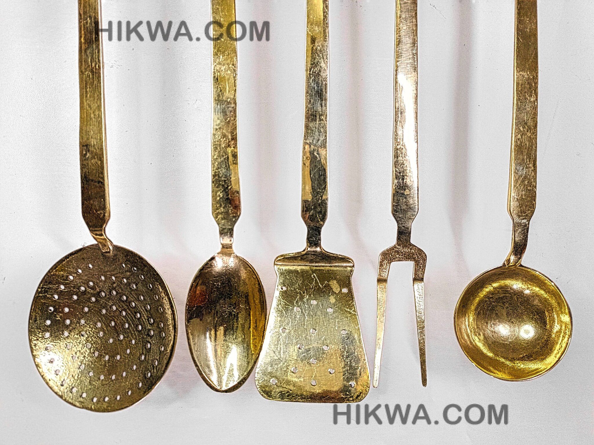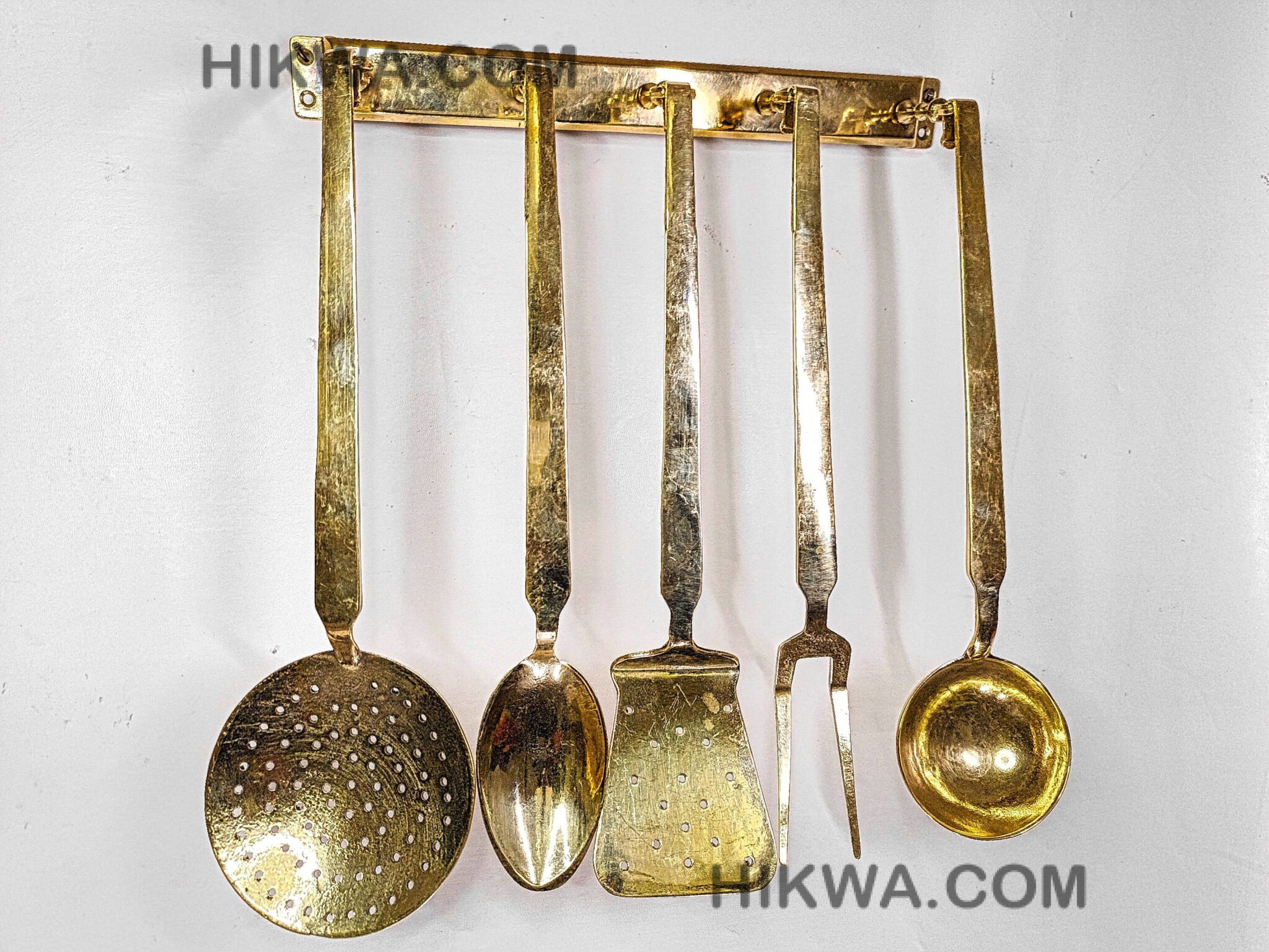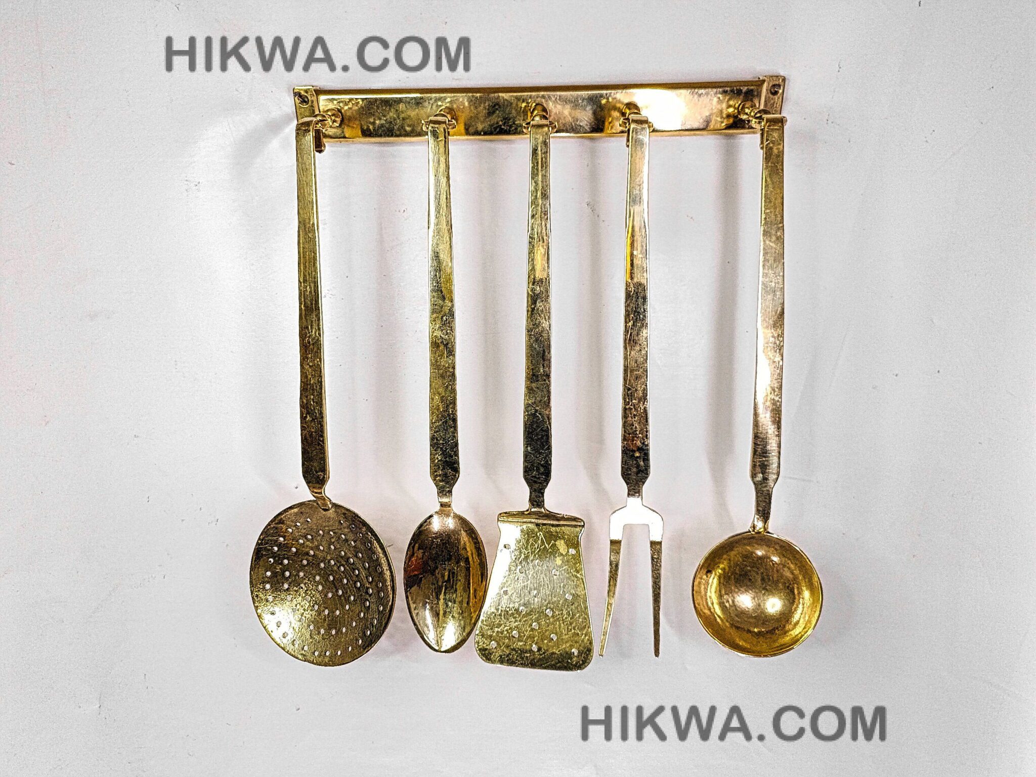 The ladles come in five different shapes, allowing you to choose the perfect sizes for your cooking needs. this set has you covered. Designed to display ladles elegantly, the matching brass rack makes them easy to reach while adding a touch of sophistication to your kitchen decor.